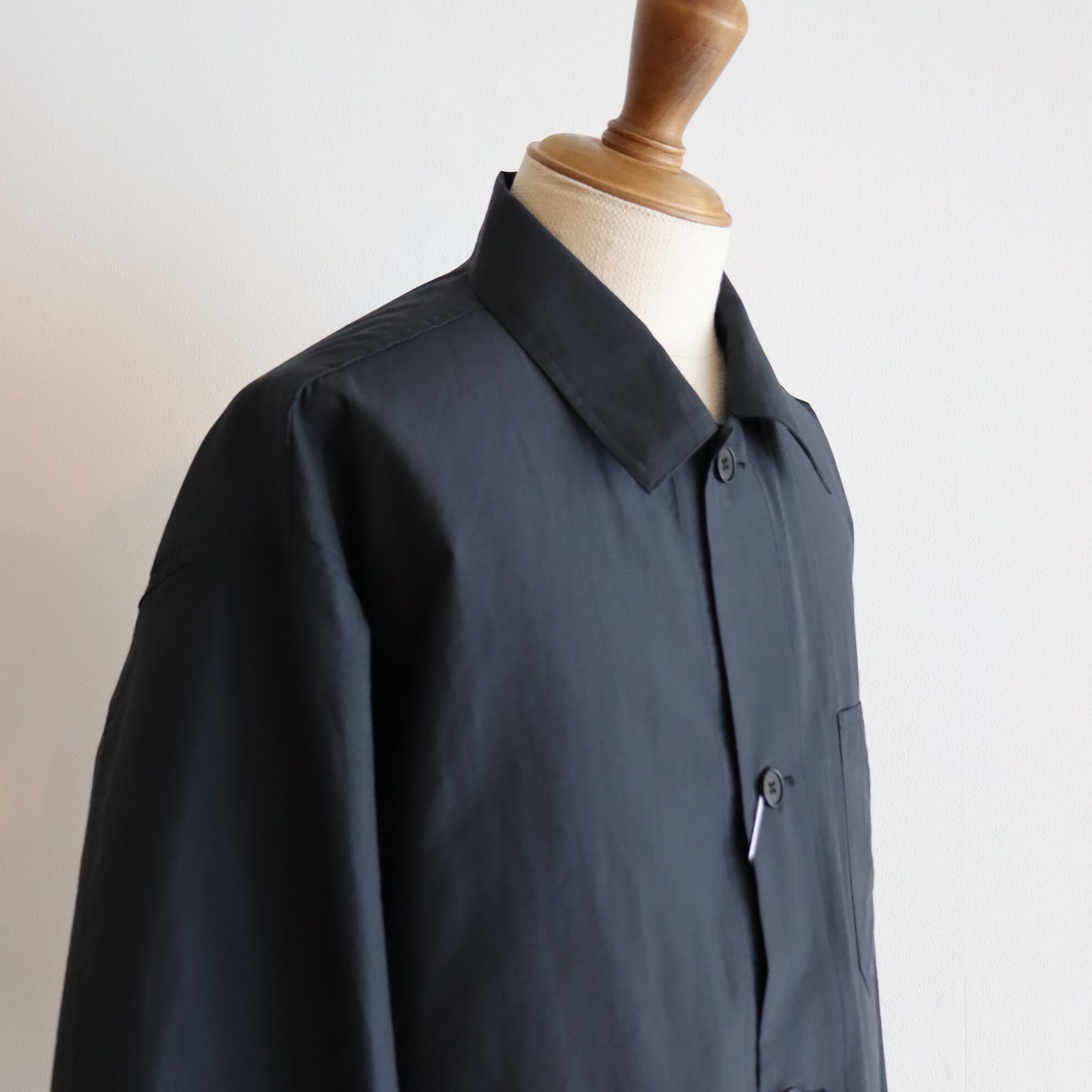 細番手の糸を使用して経糸にナイロン緯糸にコットンを使用した透け感とハリ感のあるローンを使用し、清涼感があるカバーオールに。