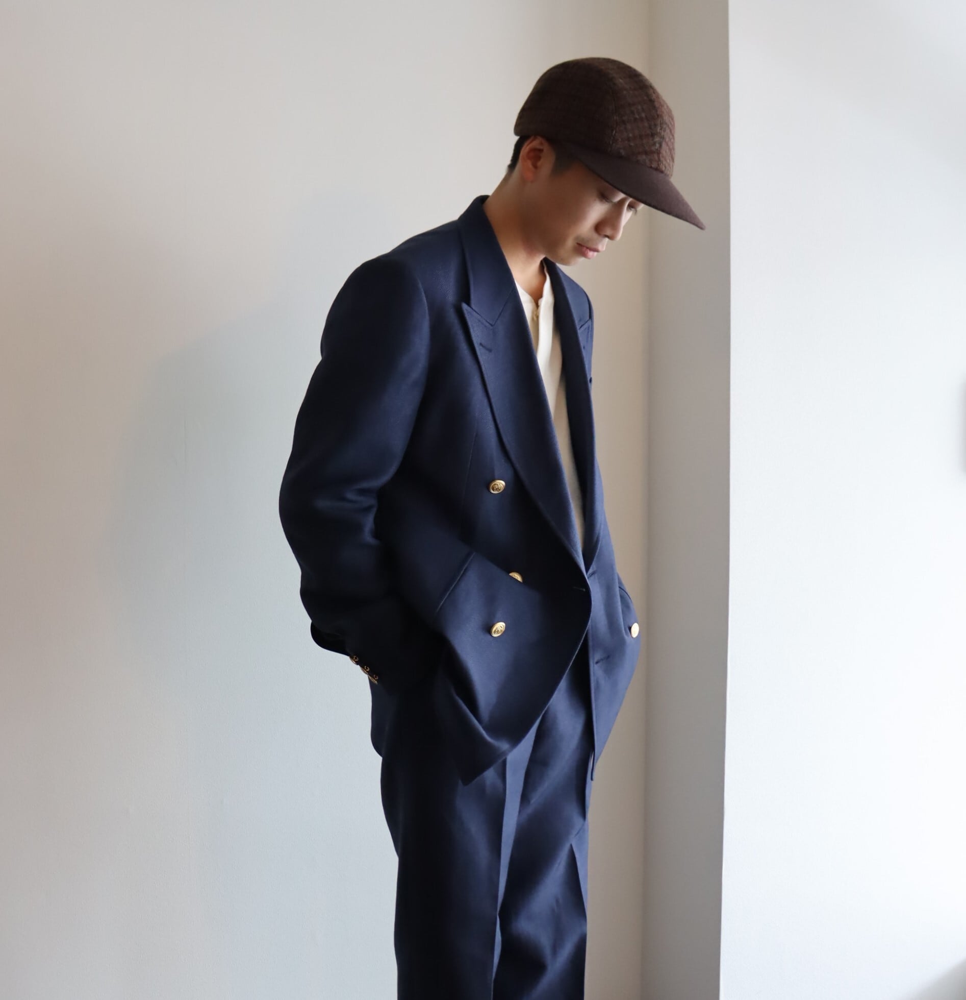 そのキューバビーチにファインウールをブレンドし、より軽く仕上げた〈マジックキューバビーチ〉を使用した、ブレザーになります。