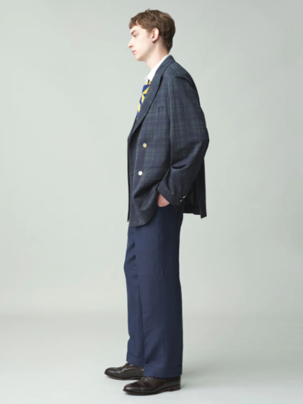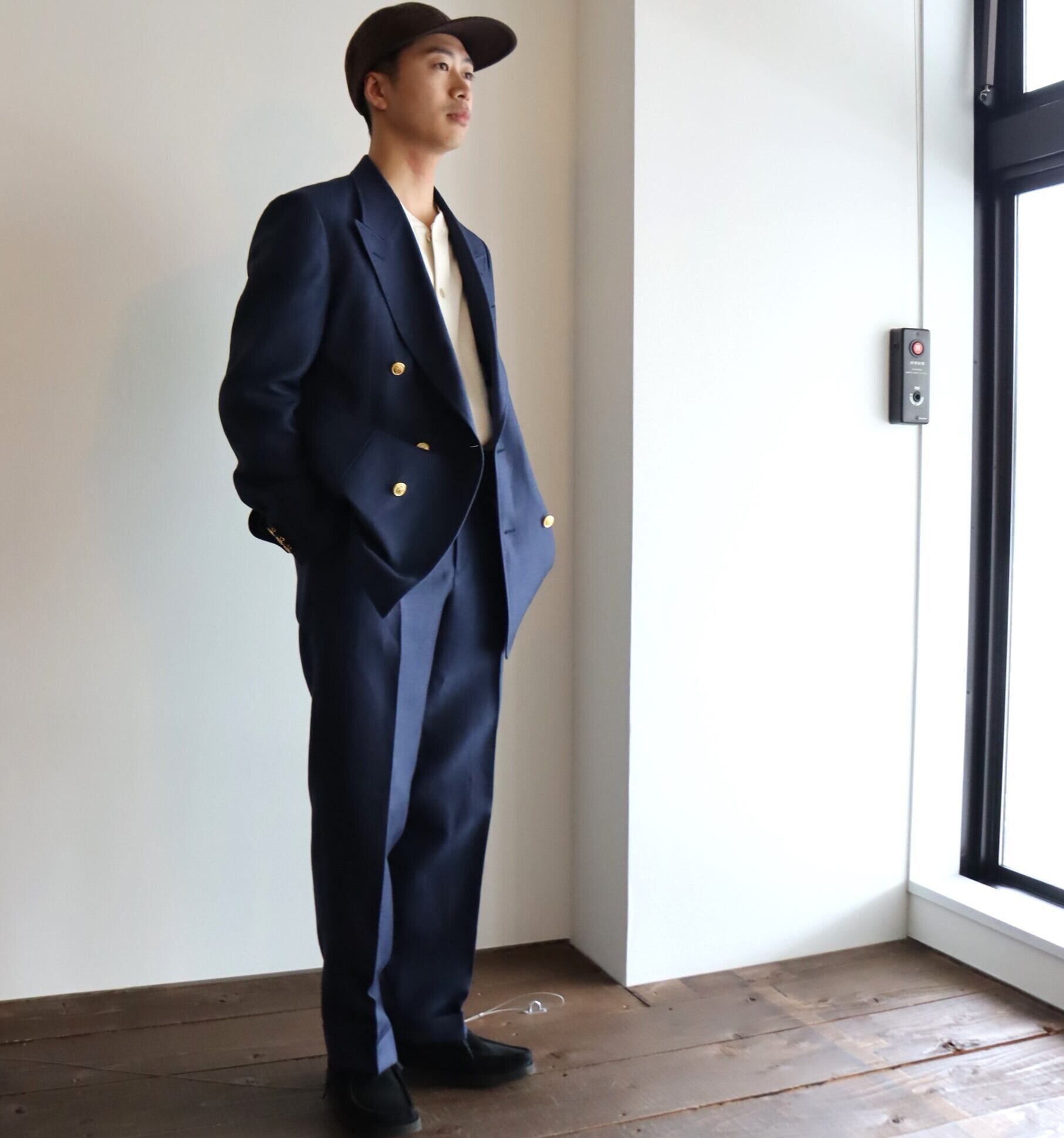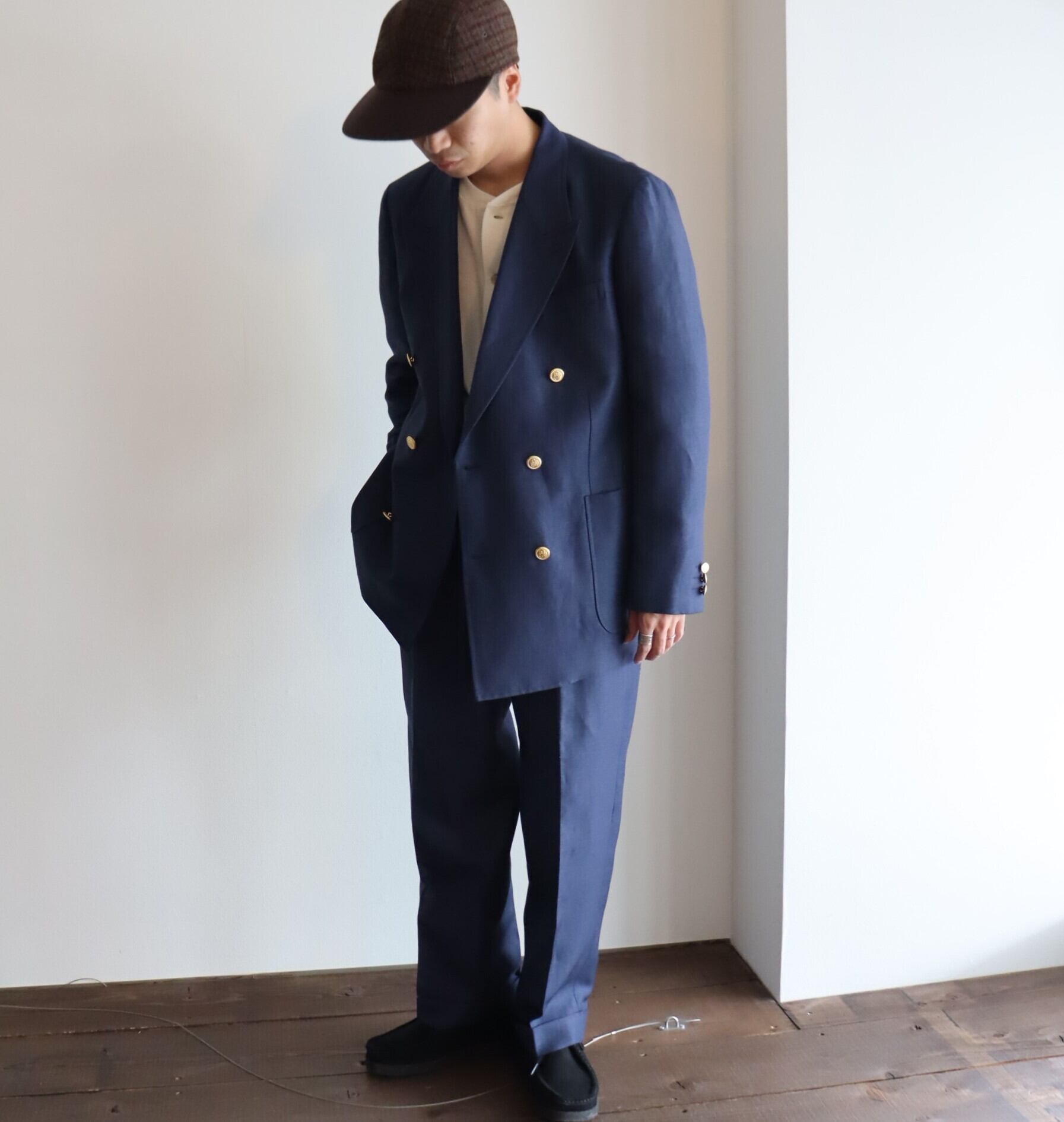 また、スラックスについては〈スーパークリース社:1976年創業)のクリース加工を採用したプロダクトになります。このスーパークリース社が施した折り目は100回以上洗濯を繰り返してもとれないと評判で、画期的な特許技術になります。センタークリースが綺麗に入ったスラックスに、新調したブレザーをあわせて頂くと、絶妙に気の利いた春夏のセットアップスタイルを楽しんで頂けます。