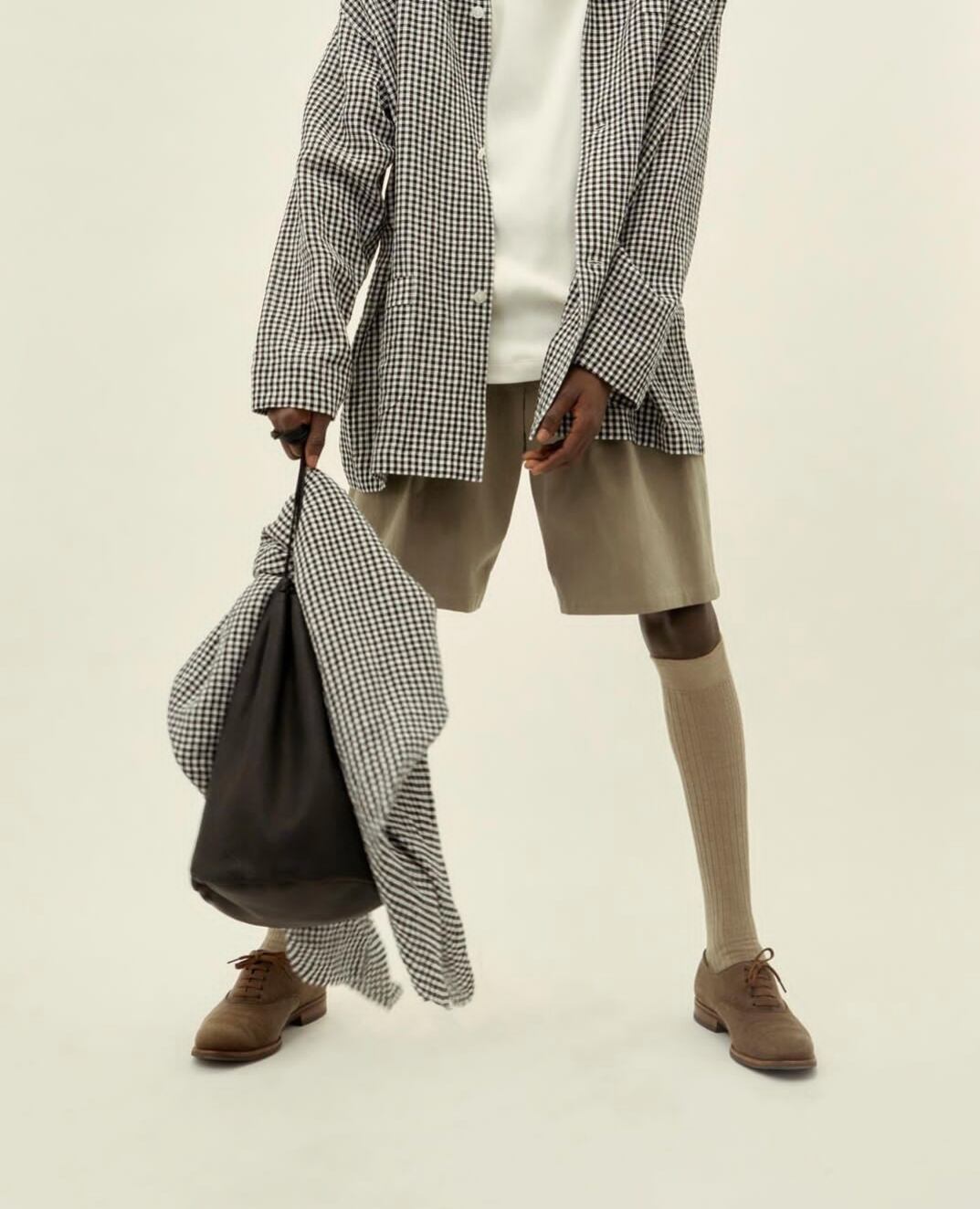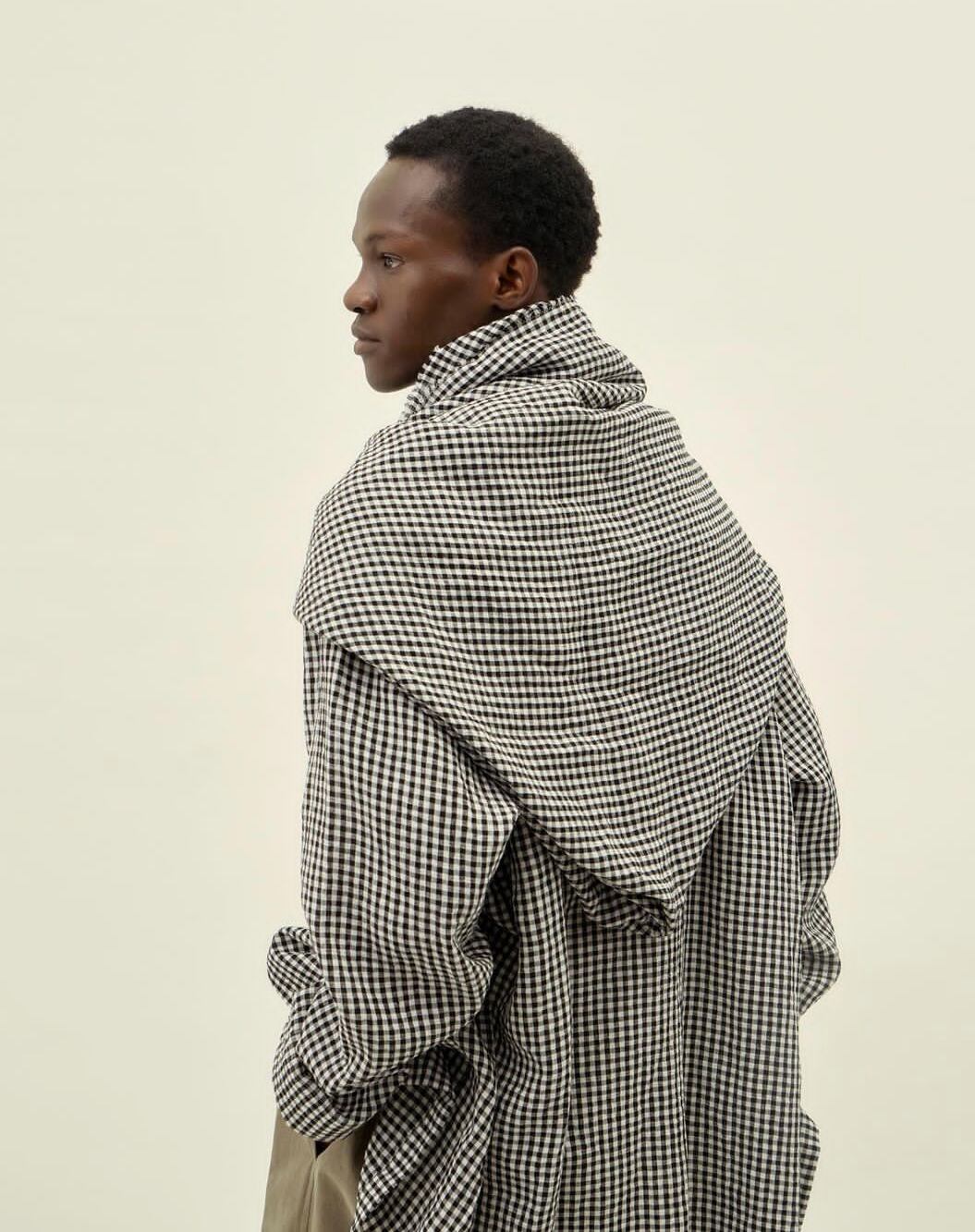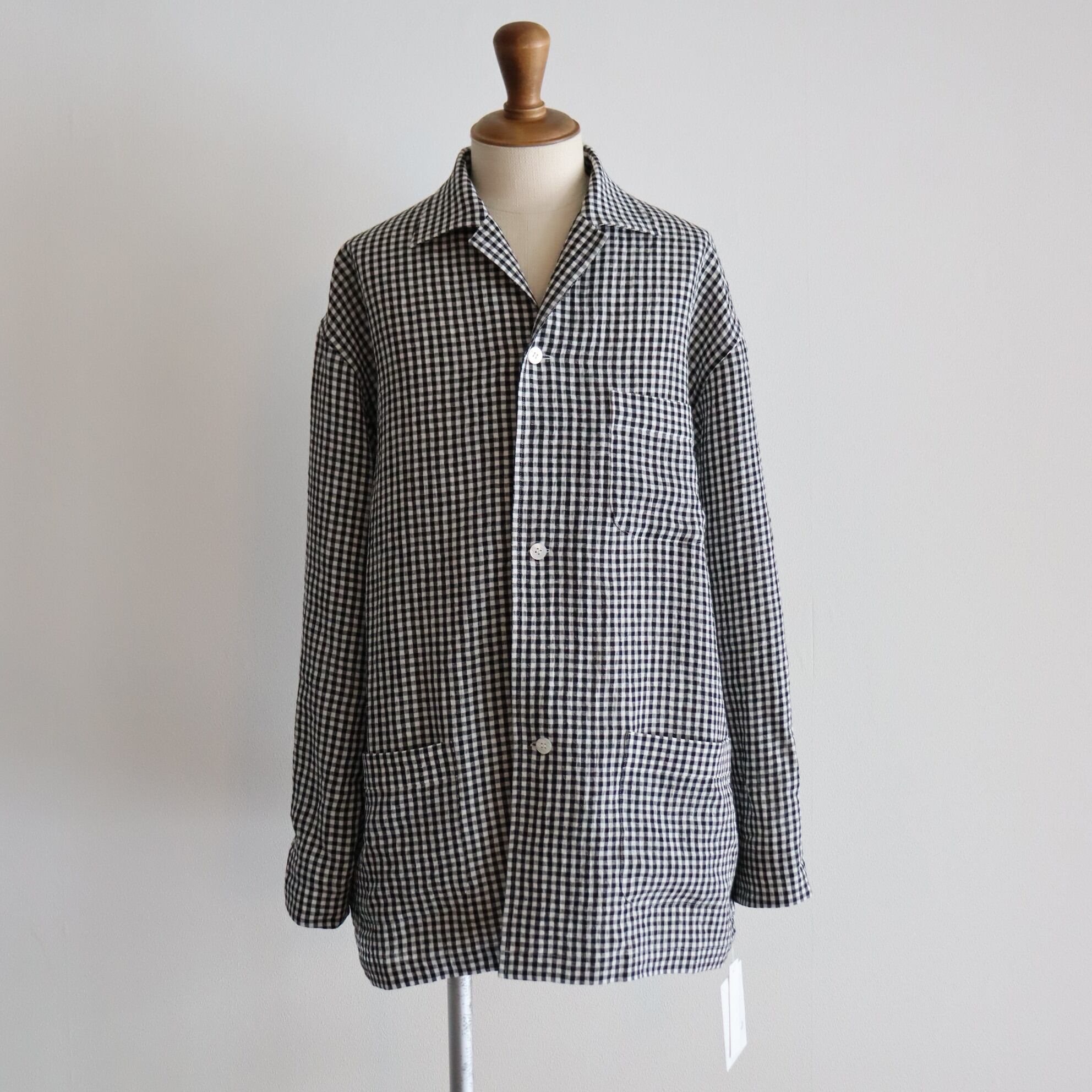 Cale " Water Twist Linen Shirt JKT ( WHT×BLK Gingham Check)"