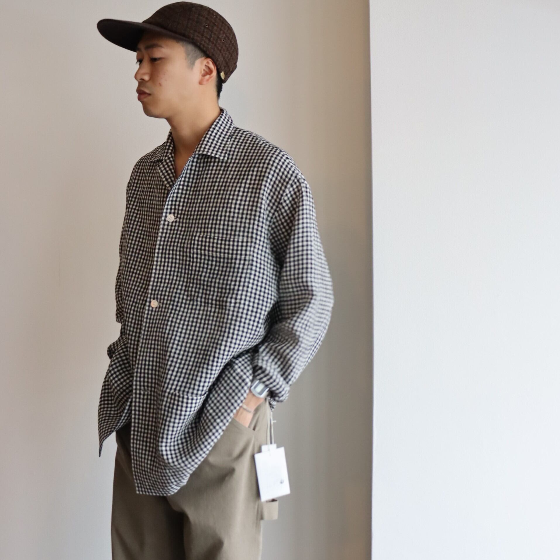 シルエットは程よくゆったりとしたシルエットでまたリネンの本来持つ清涼感と強撚することで生まれるドライなタッチが、これからの時期から夏にかけて軽く羽織るのにも最適な1着となっております。