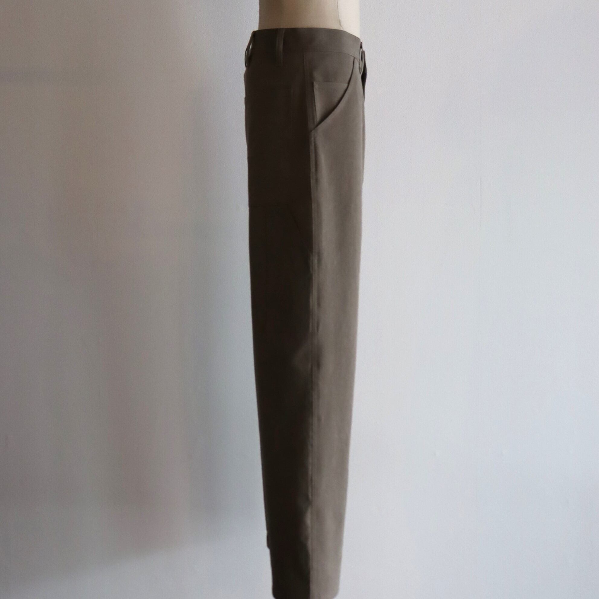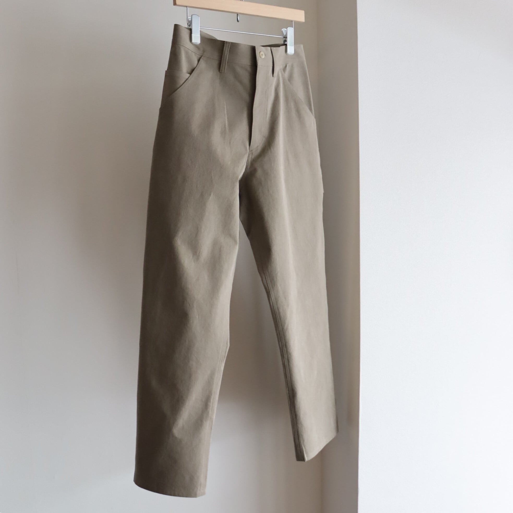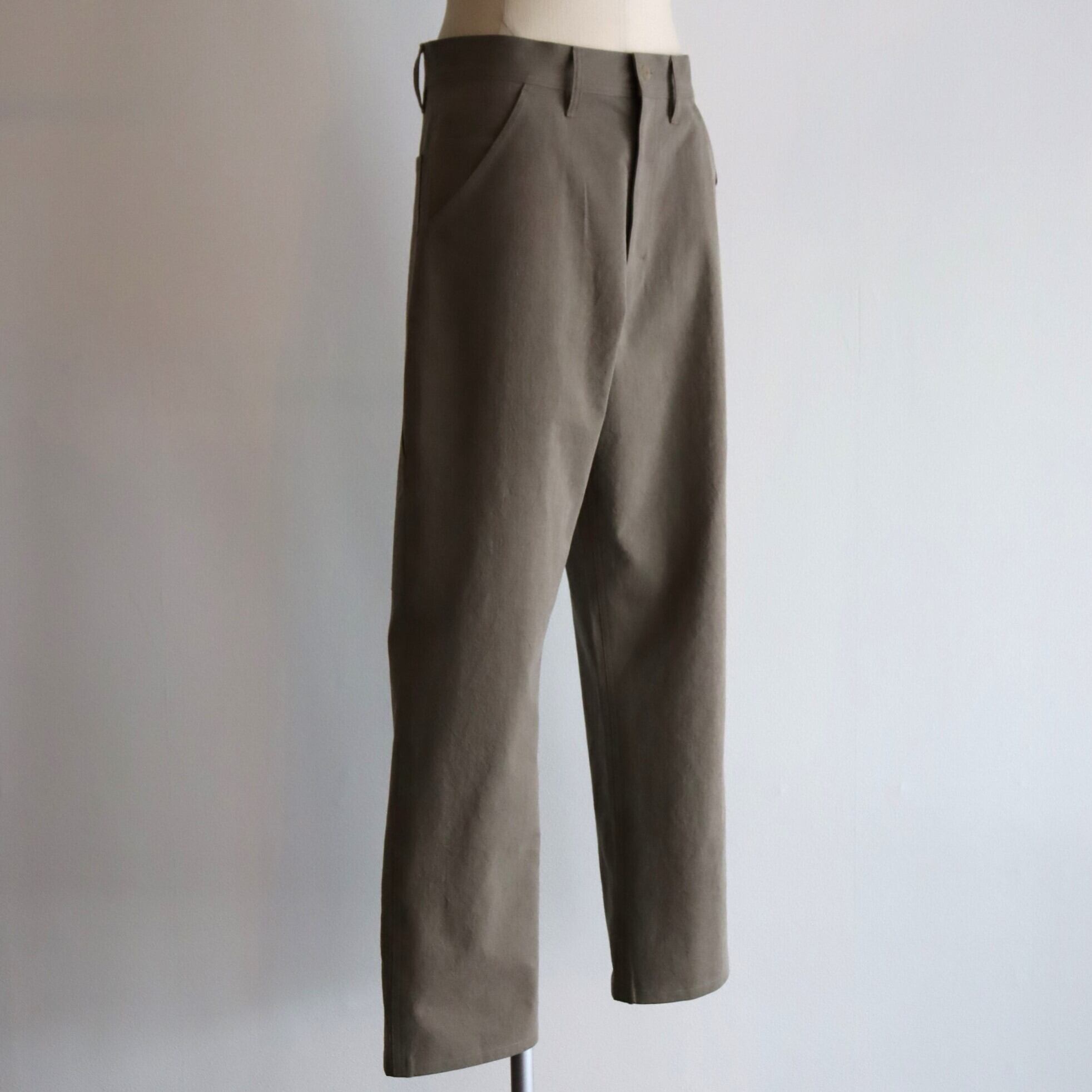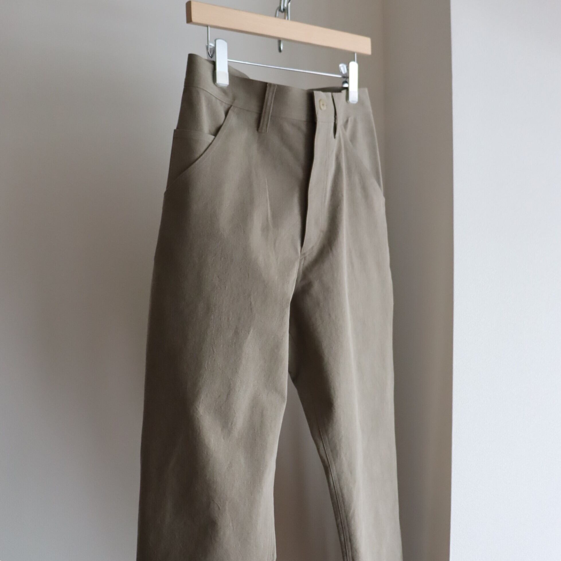 本来ならばワークウエアーの持つ荒々しさが全面に出てしまうペインターだが、こういった素材感や、身体と洋服との間の空間の取り方など絶妙なシルエットで見せるという点において、やはりCaleらしいどこか美しさや品を纏わせたワークパンツに仕上げており、他では見られない独特な1本に仕上っている。