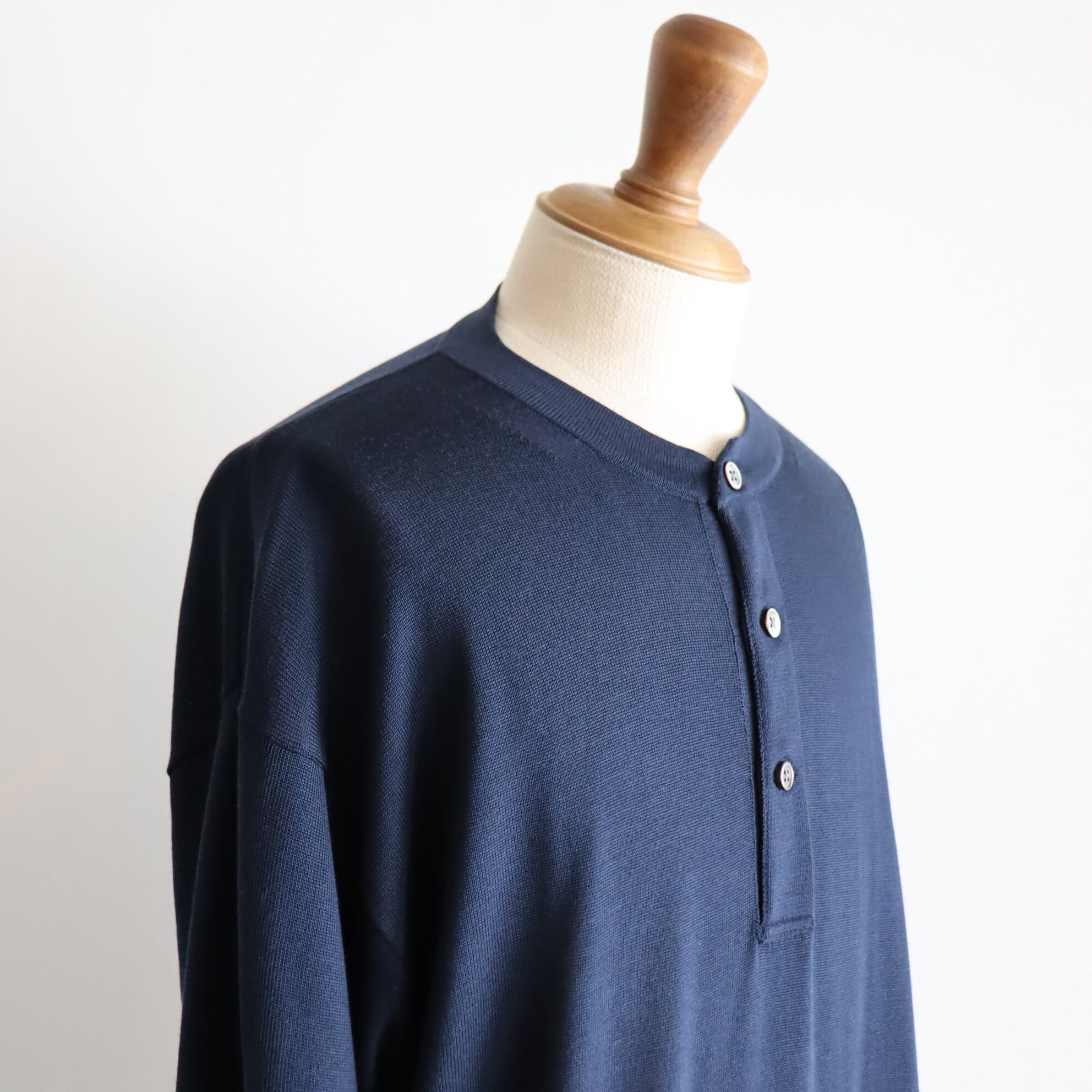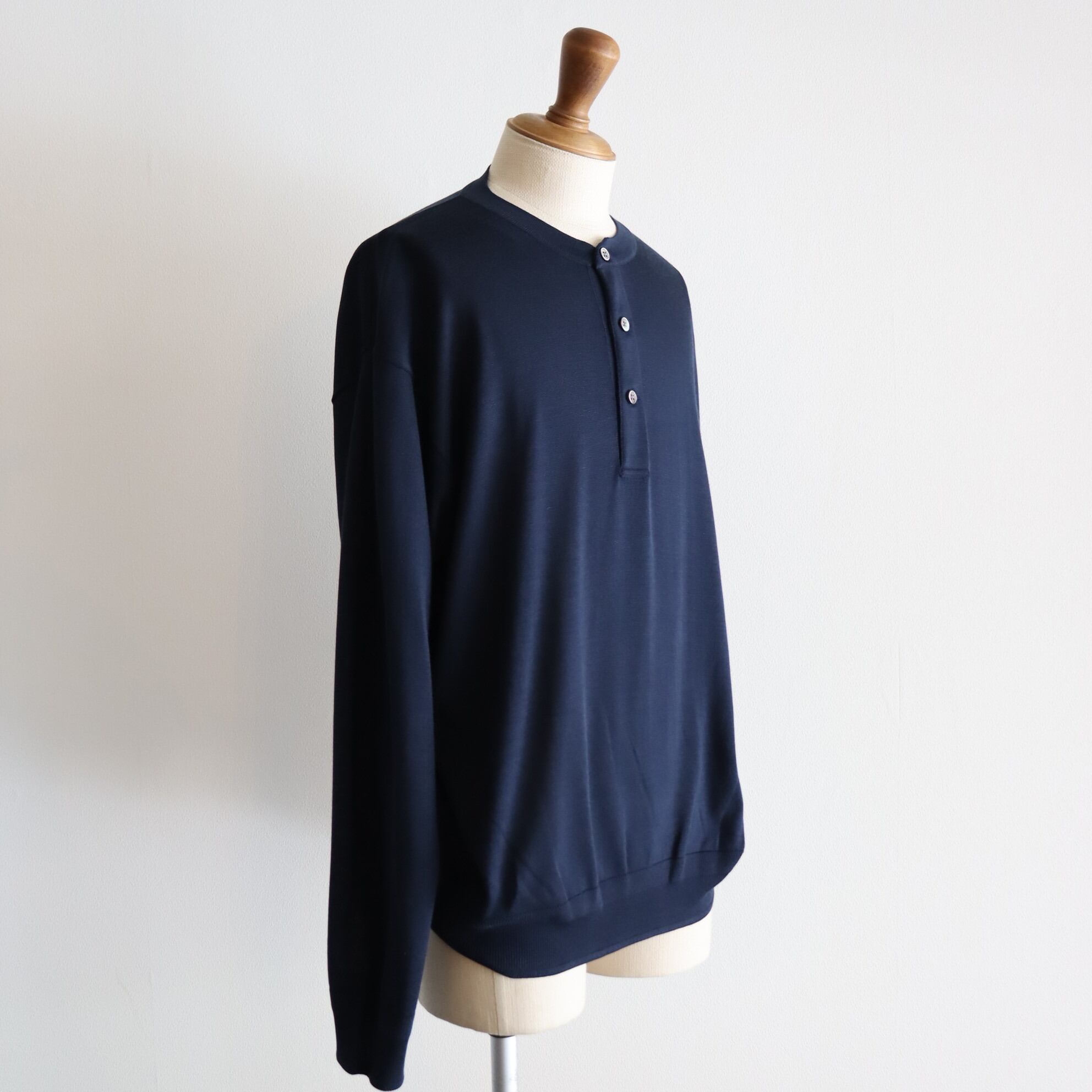 MEIAS " SILK HENLEY NECK PULL OVER (NAVY) "