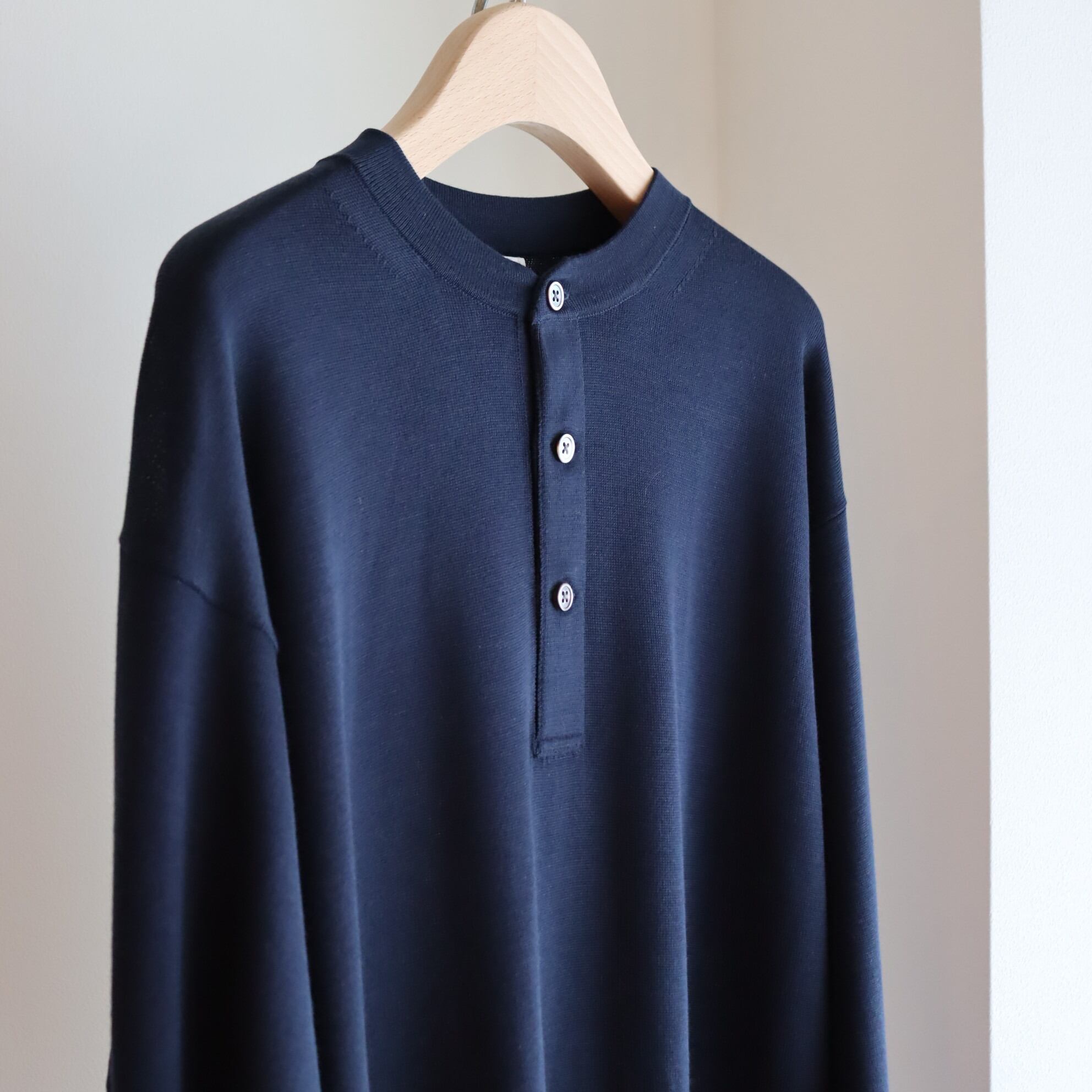 カットソーの定番型のヘンリーネックプルオーバーです。