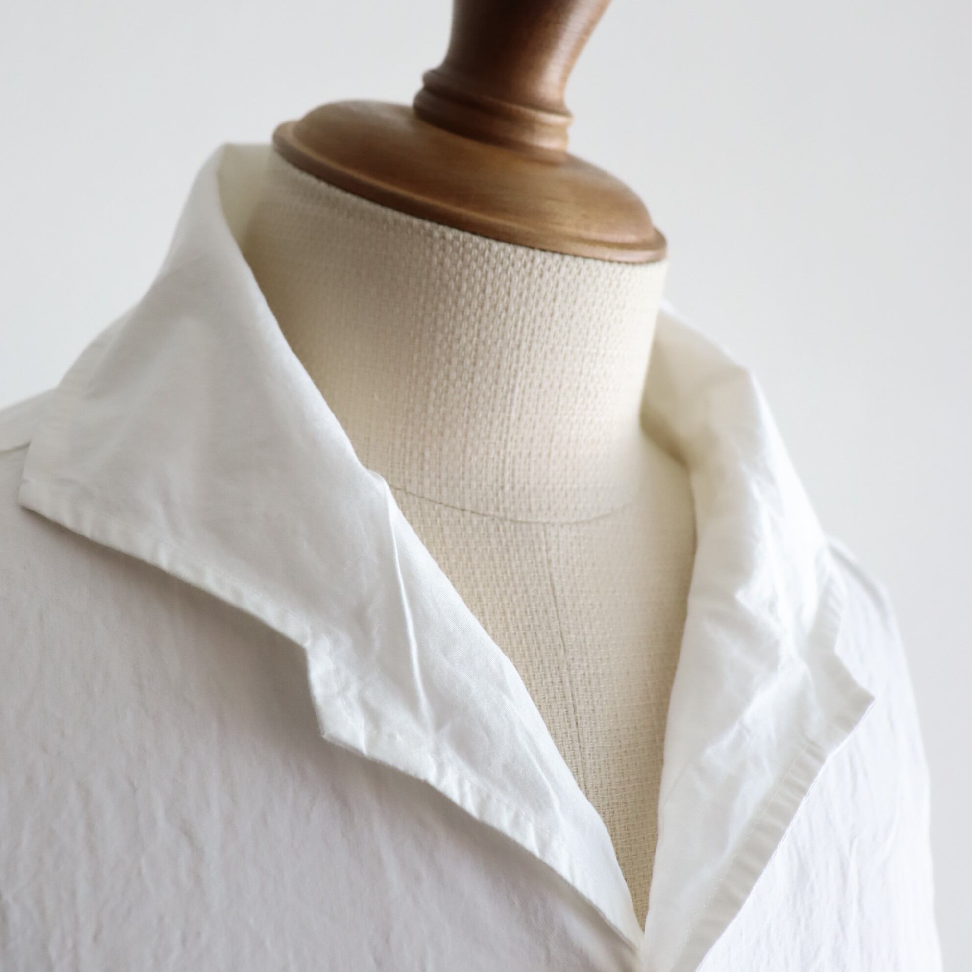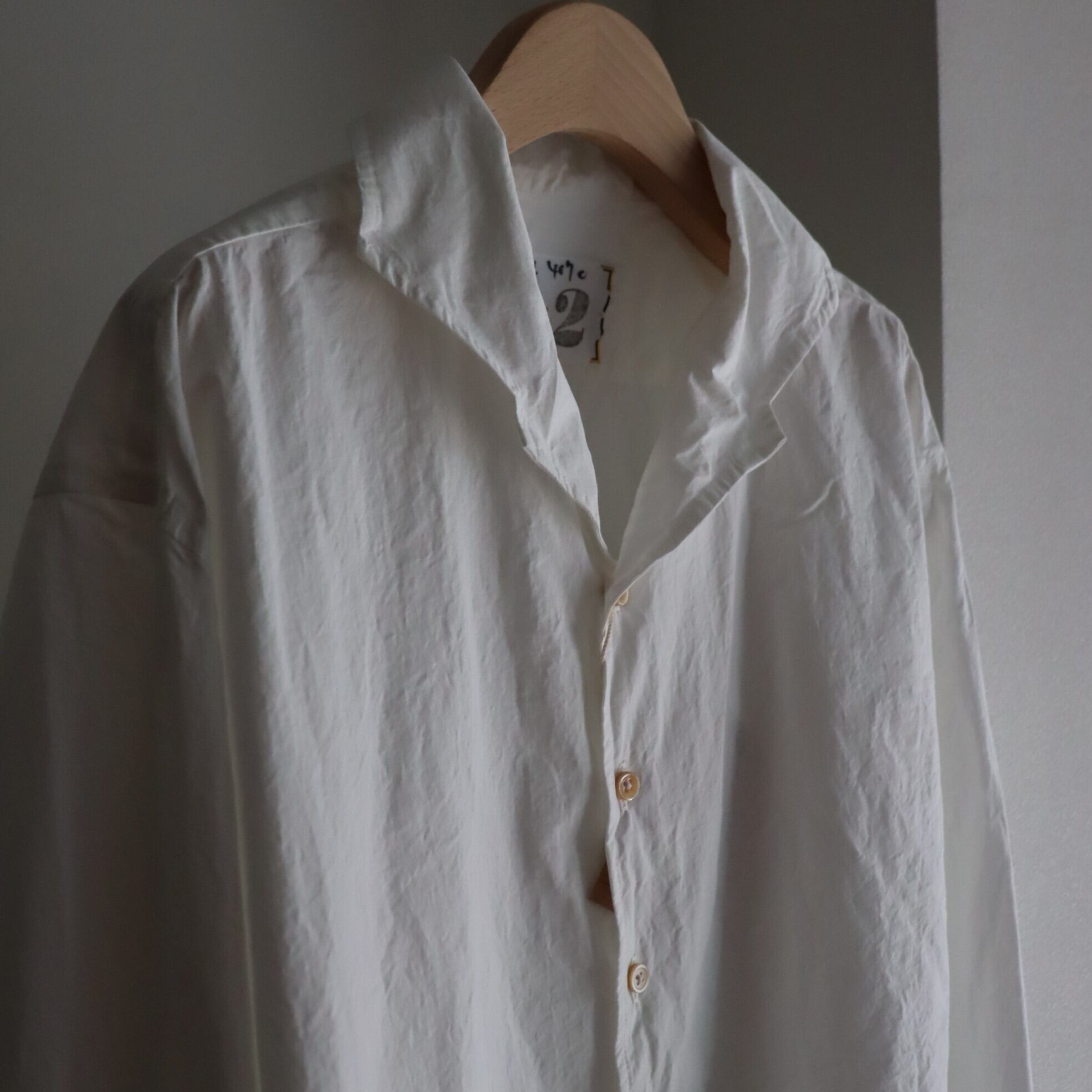 ドレス感を減らしいやらしさを無くし、カジュアル感を入れながらも色気は残す様に拘って制作したシャツ。