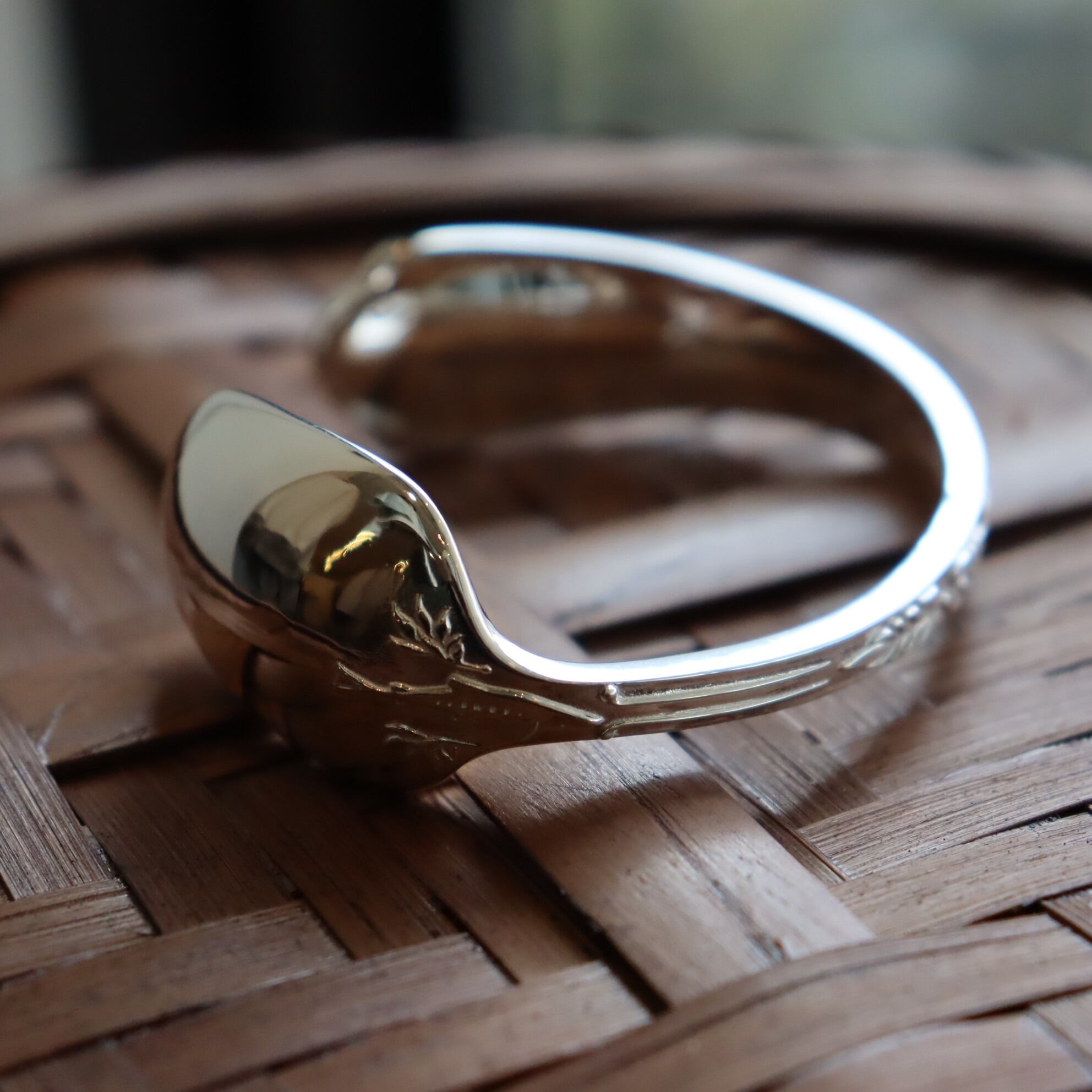 デザイナーの鱒釣りが興じて作ってしまったというシルバー925製のスプーンバングル。