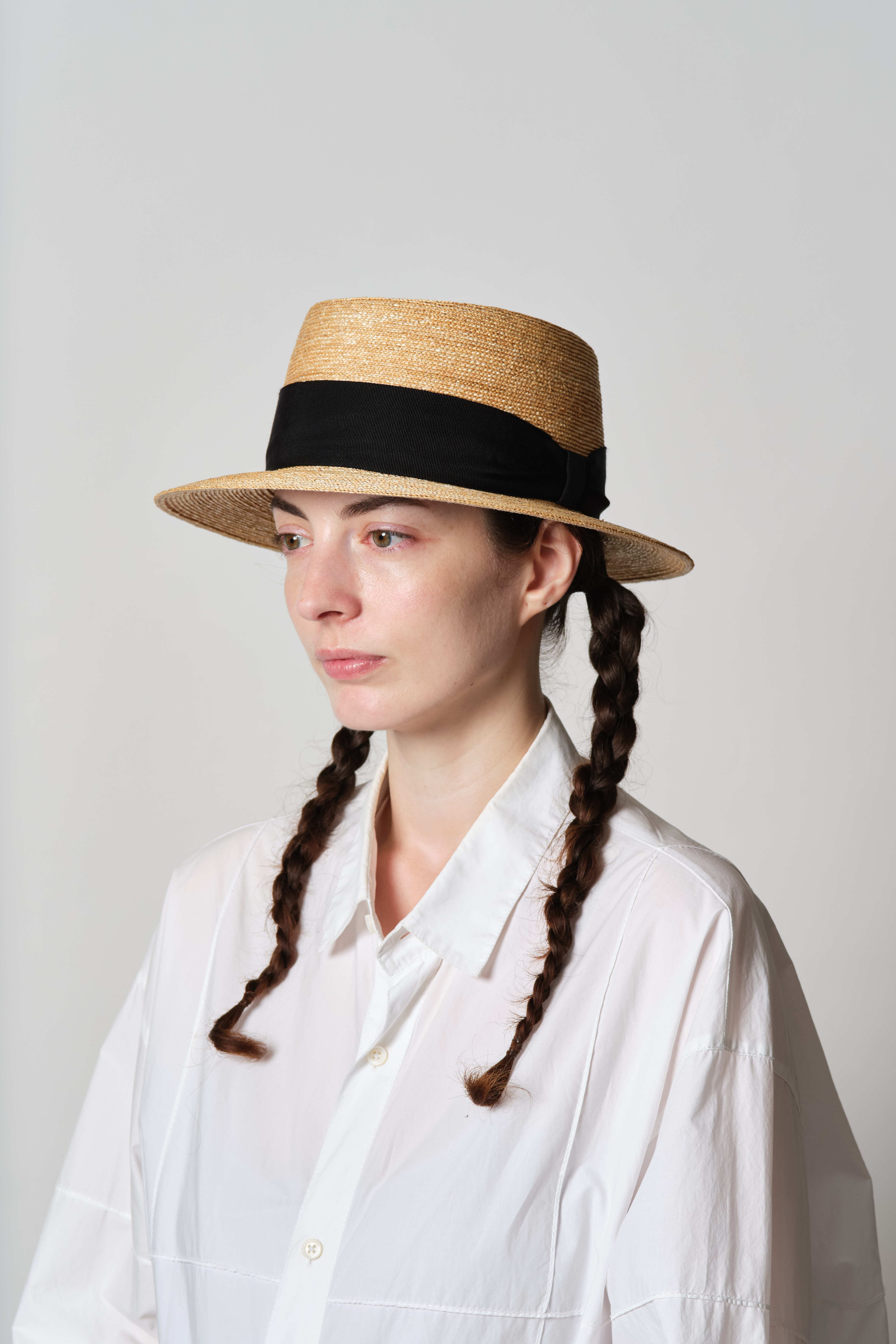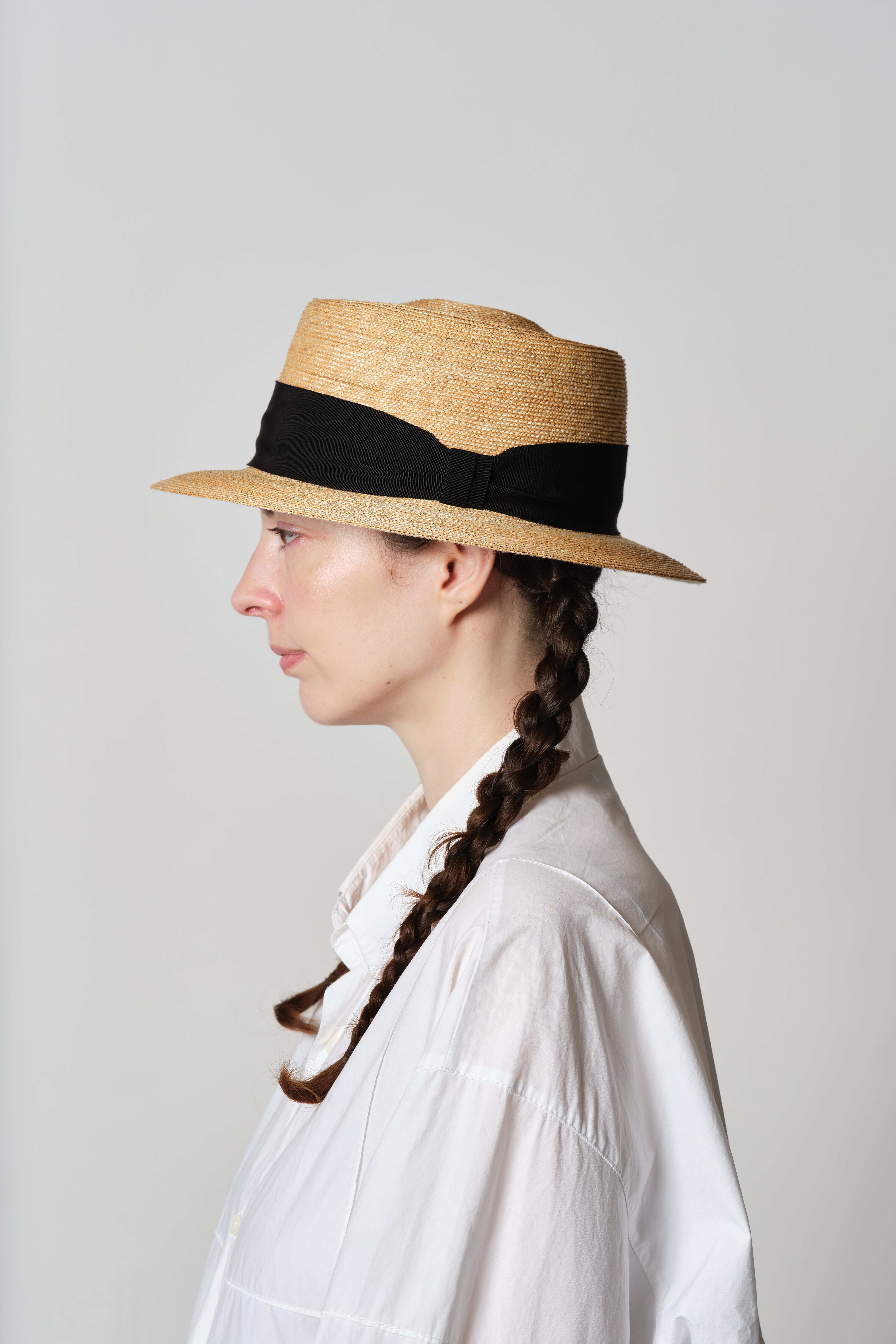 程よい深さのクラウンに、短めのブリムがおさまりのいいストローハット。