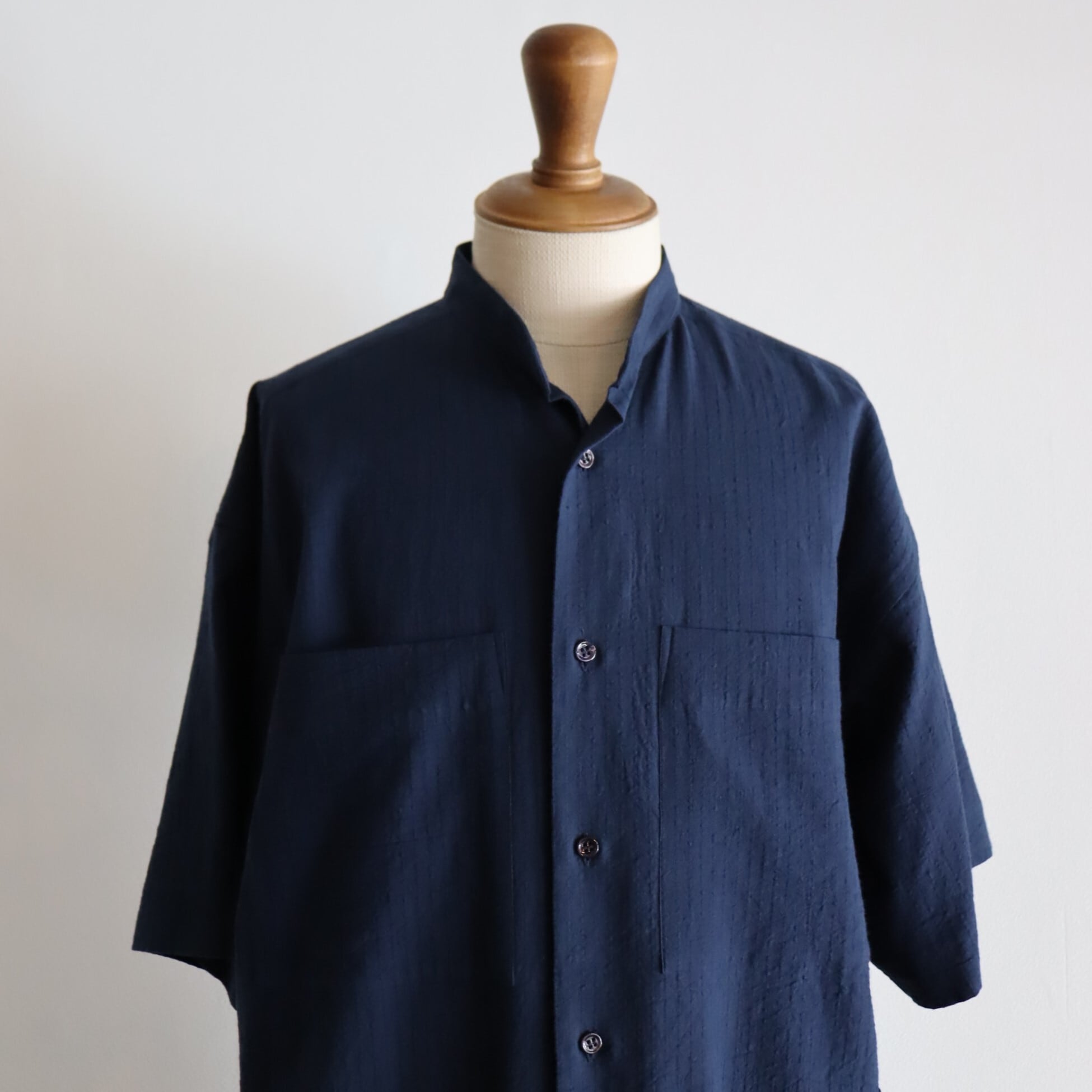 半袖スタンドカラー、パッチポケット4つです。