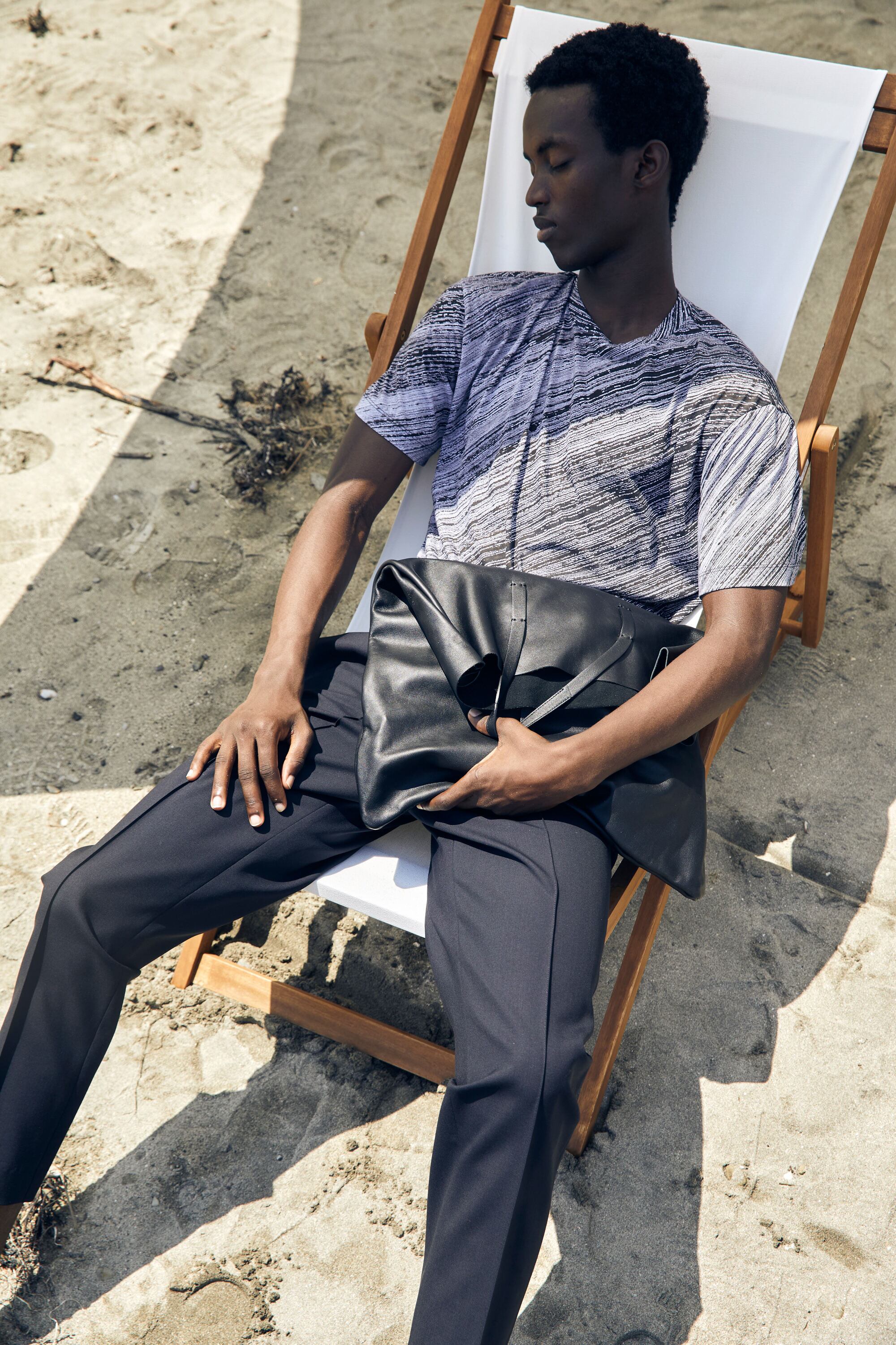 POSTELEGANT " Hand Print Light Cotton Tee ( Black×White )"