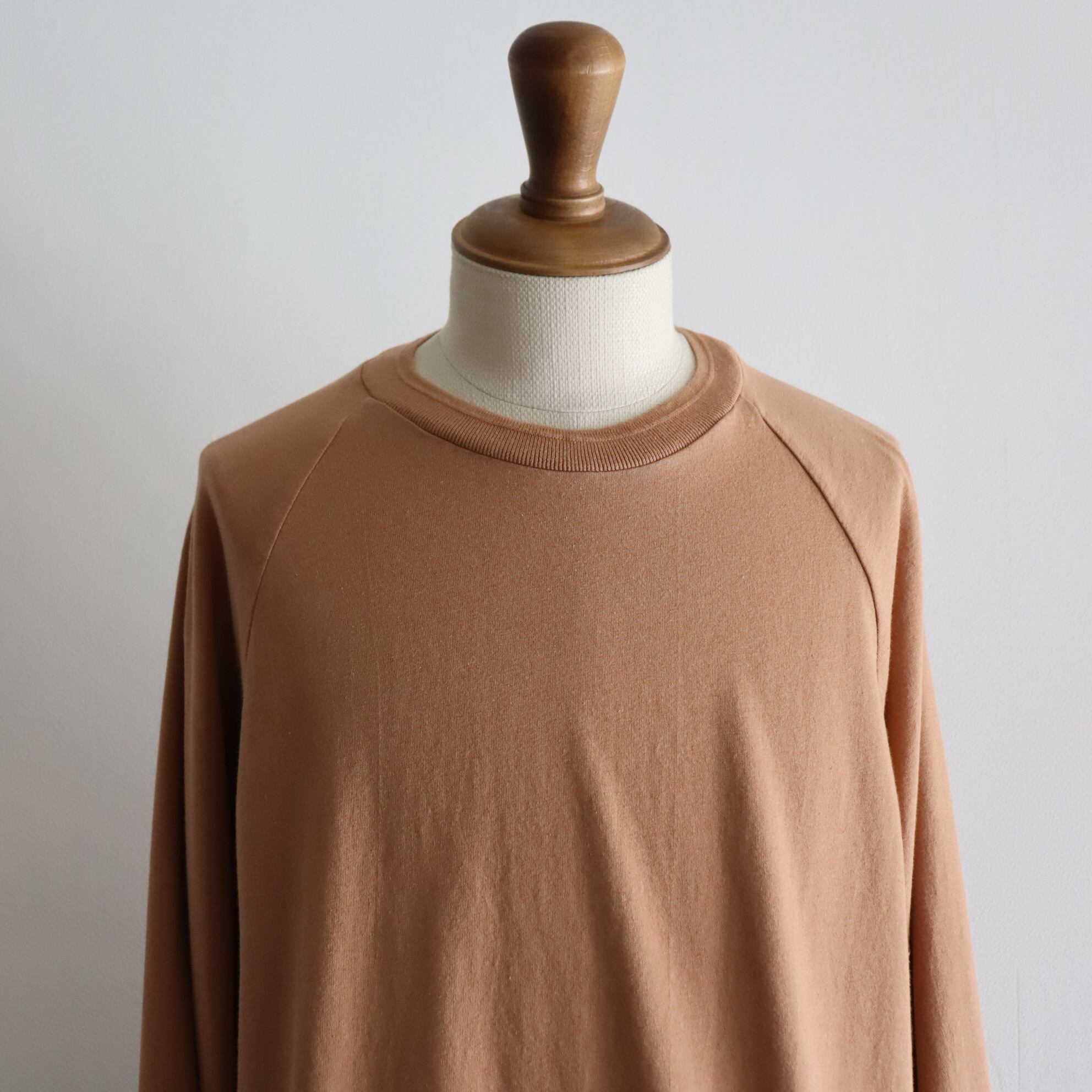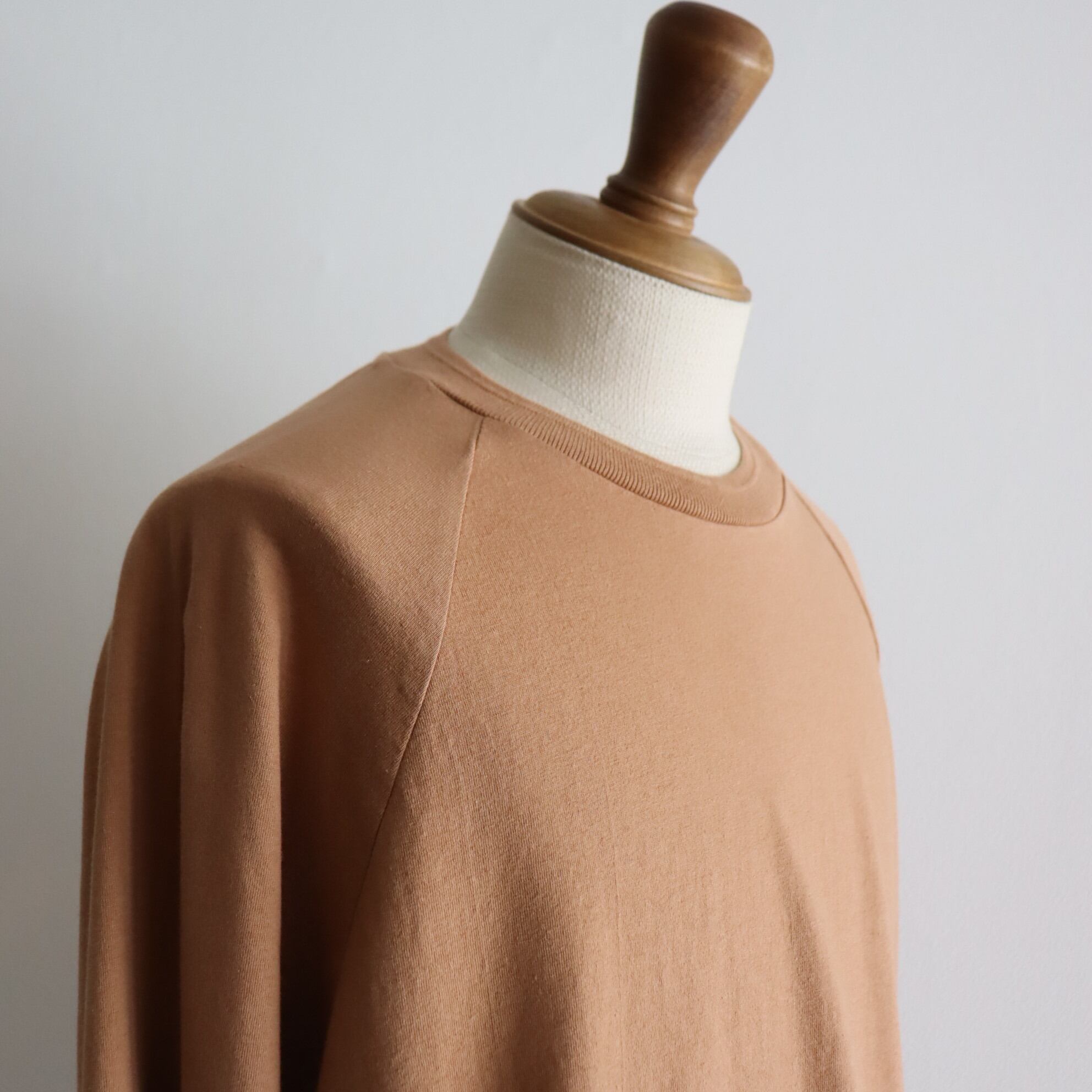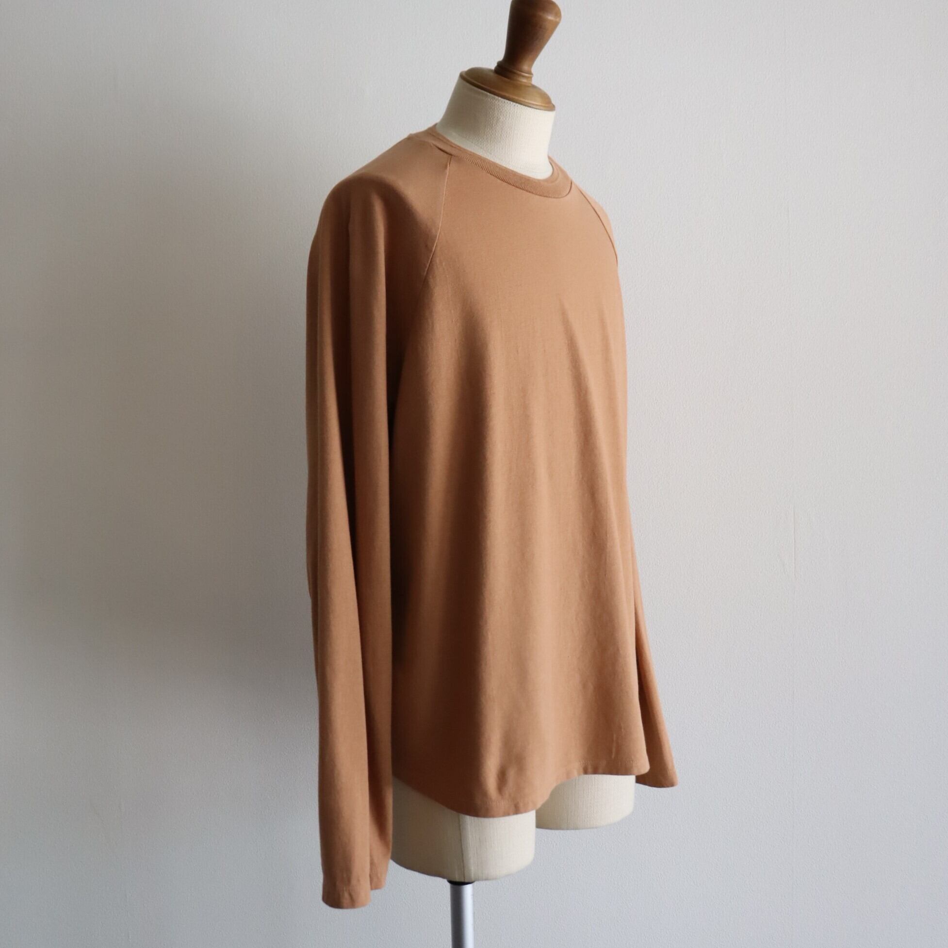 ラミーの持つ光沢感と表情のあるリネンを混紡することで独特の表情と光沢感のあるオリジナル生地を使用してシーズンカラーに製品染をしています。袖口までゆったりとしたサイジングにし、裾をラウンドさせたシンプルなBASEBALLTシャツ。襟ぐりのフライスにラインを入れアクセントに。ガバッと異素材のパンツに組み合わせて袖をためてきていただきたいです。
