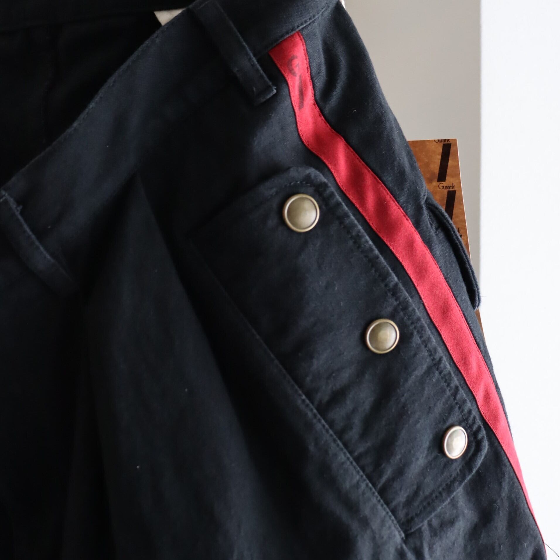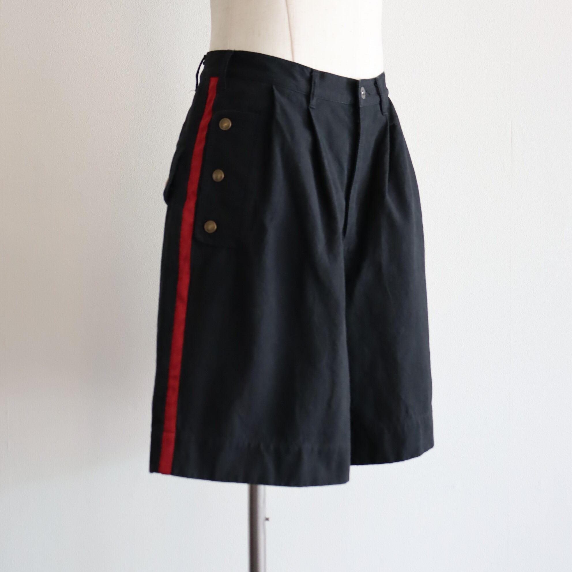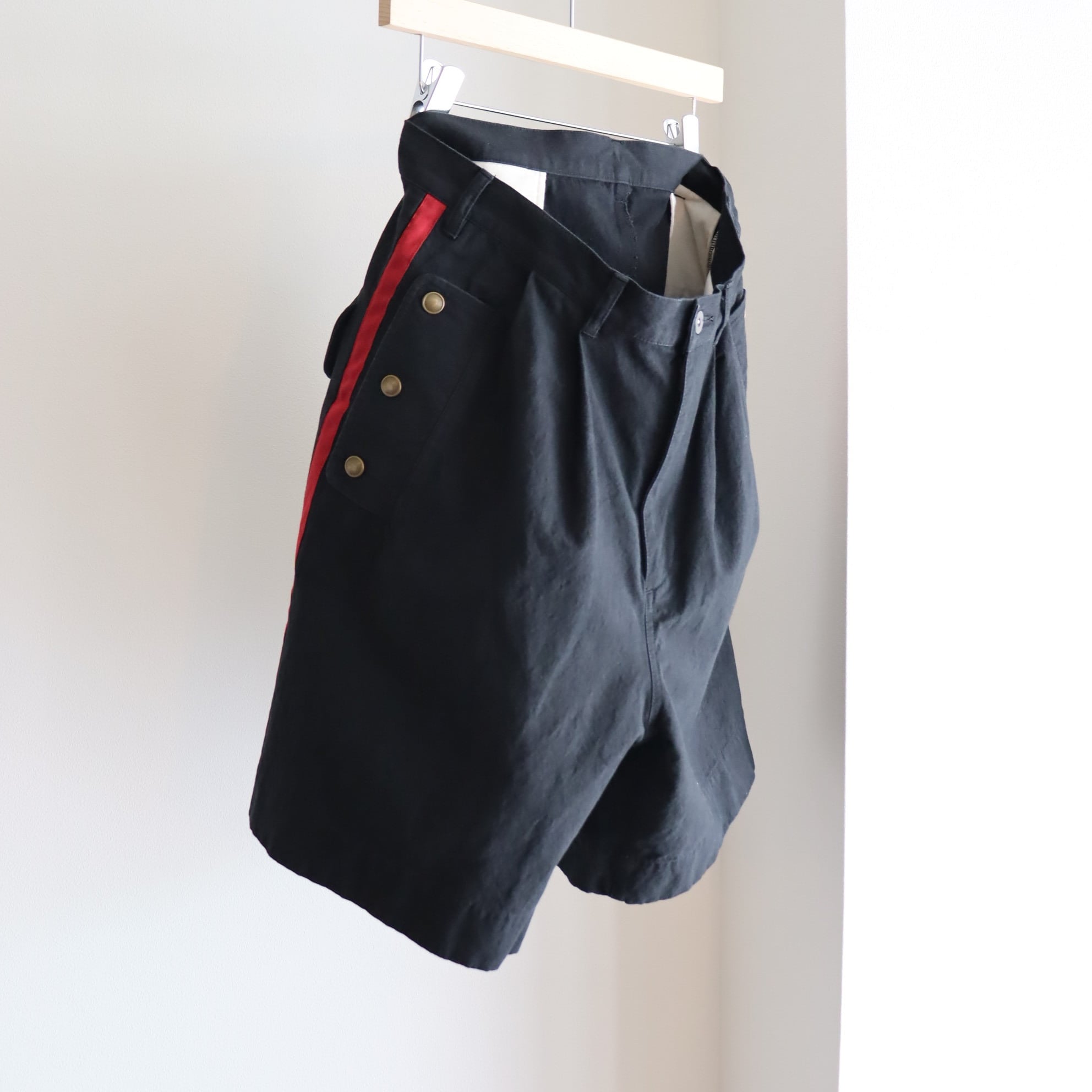 ミリタリーパンツの脇にテープを叩きつけたドレスショーツ。