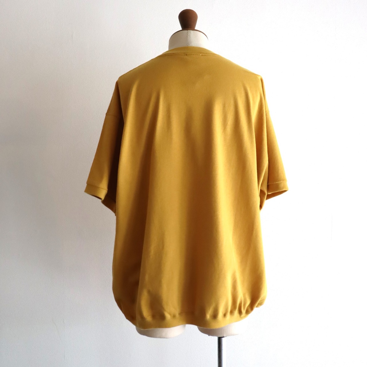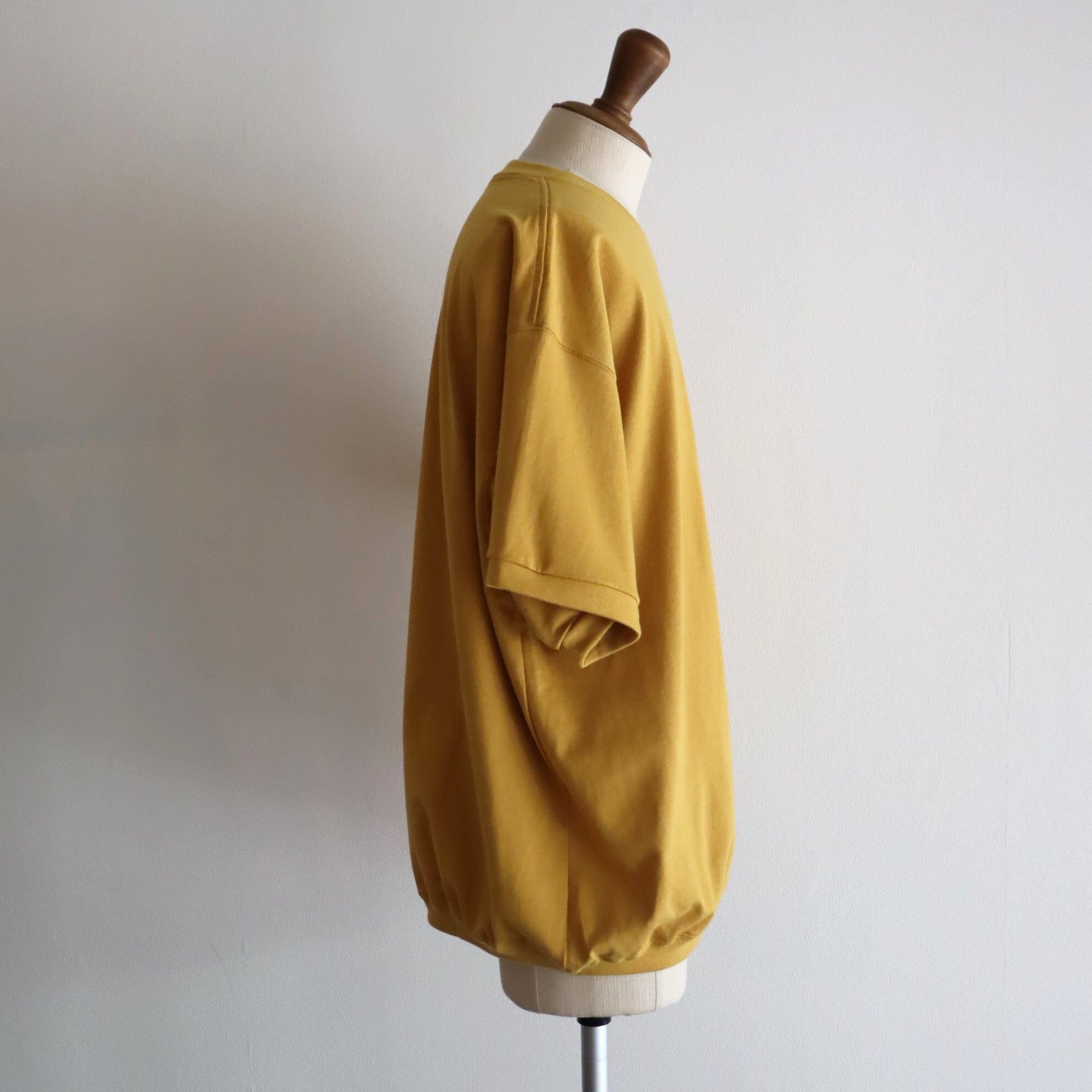 ポイントは、袖、裾リブを間違えてしまったようなヌケた感じがデザイナーの拘りポイントです。ゆったり、ラグジュアリーな雰囲気で着れるTシャツです。