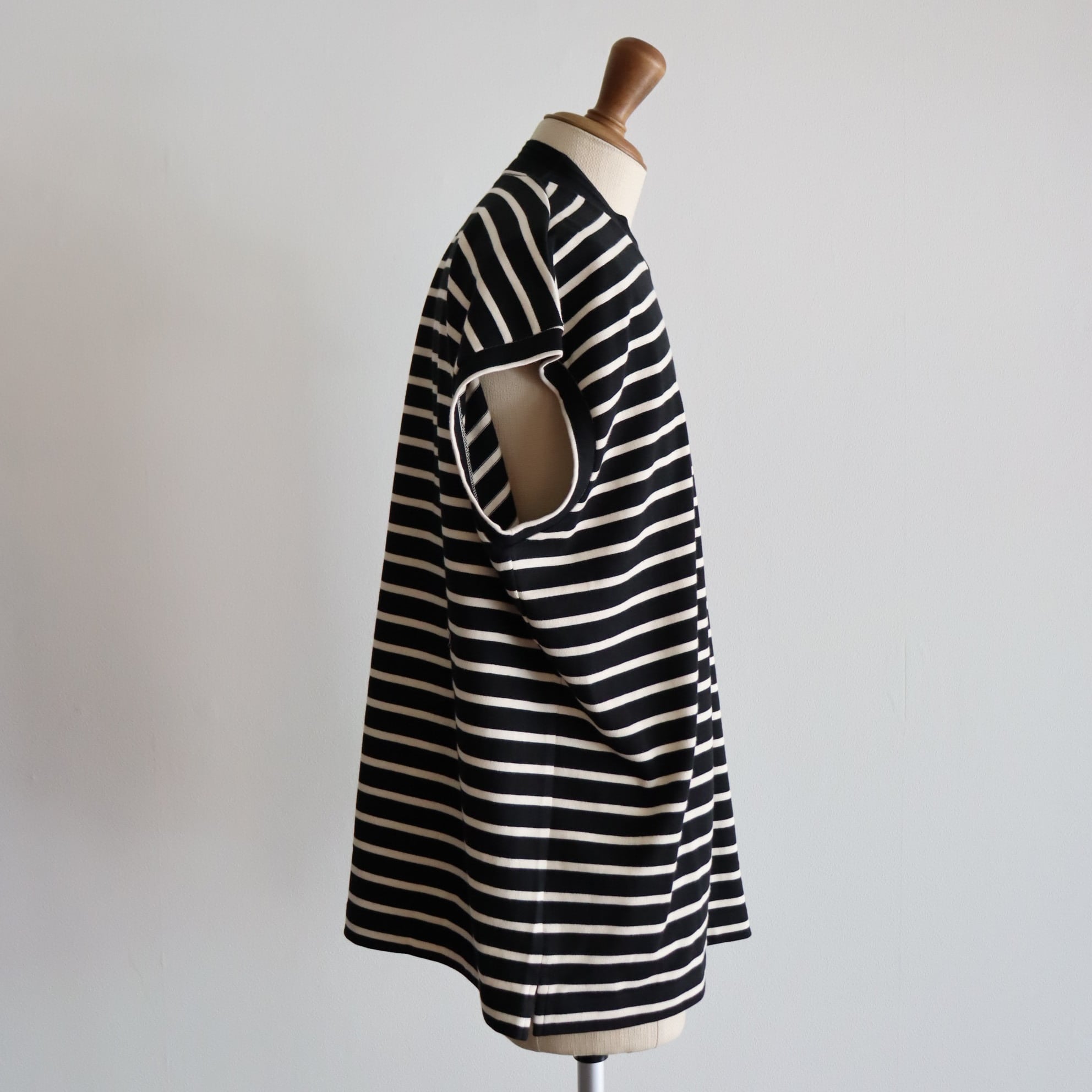型はキャップスリーブ型でユニセックスなアイテム。