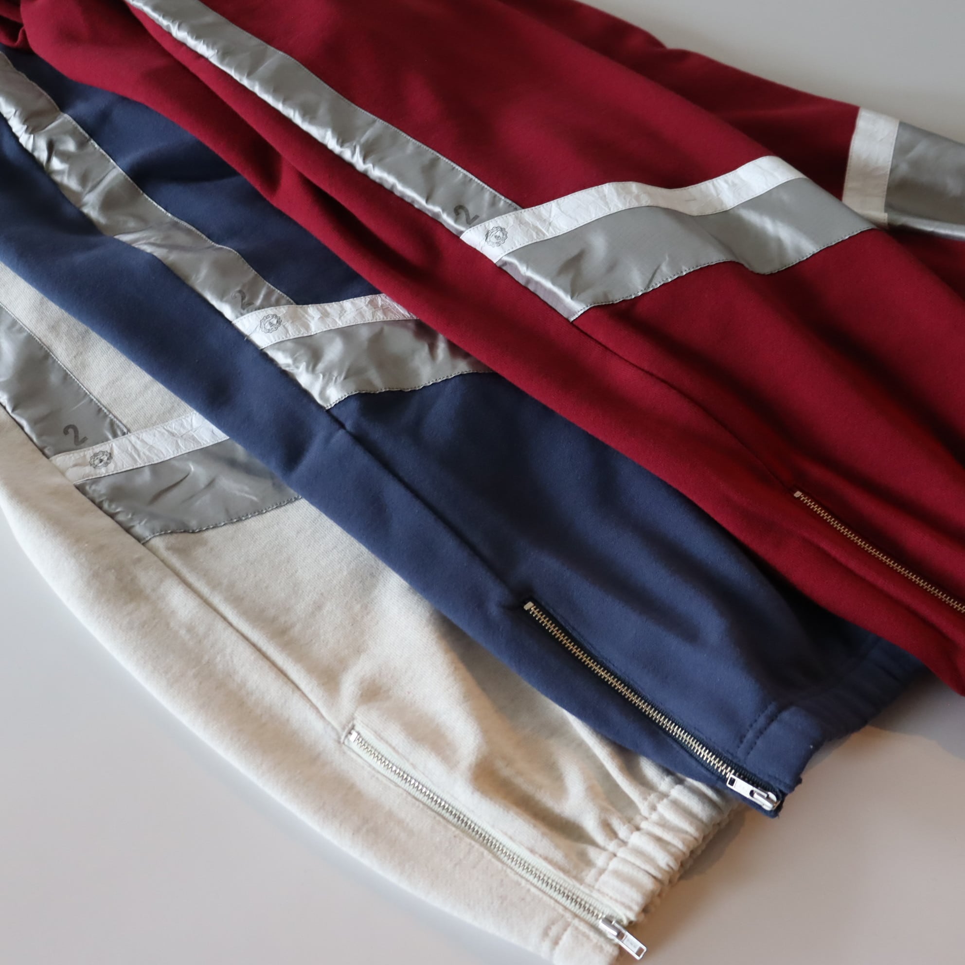 どこかいなたさのある雰囲気のスエットパンツには、キリッとしたシャツやJKTを合わせて頂く事で雰囲気のあるスタイリングを組み立てる事ができます。