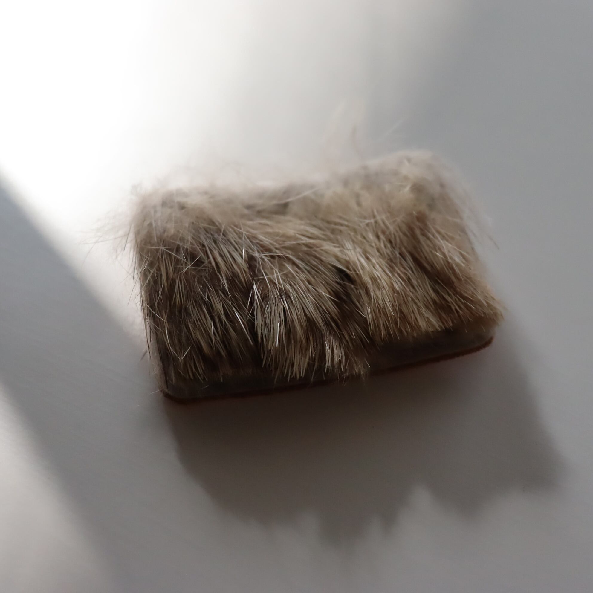 現代アーティストのヨーゼフ・ボイス氏のトレードマークでもある、フィッシングベストにいつも付けていた手作りのウサギの毛のバッヂを再現したアクセサリー。