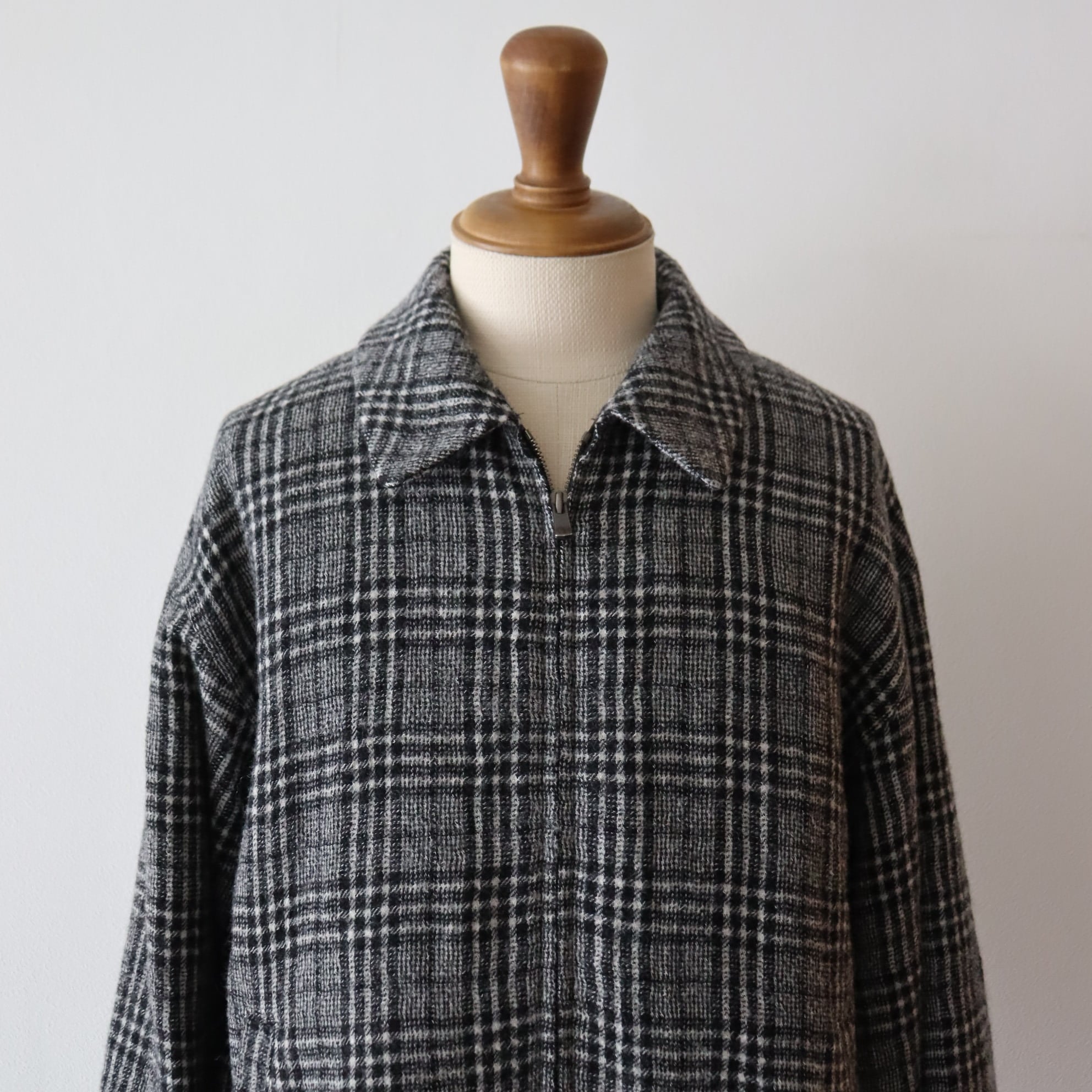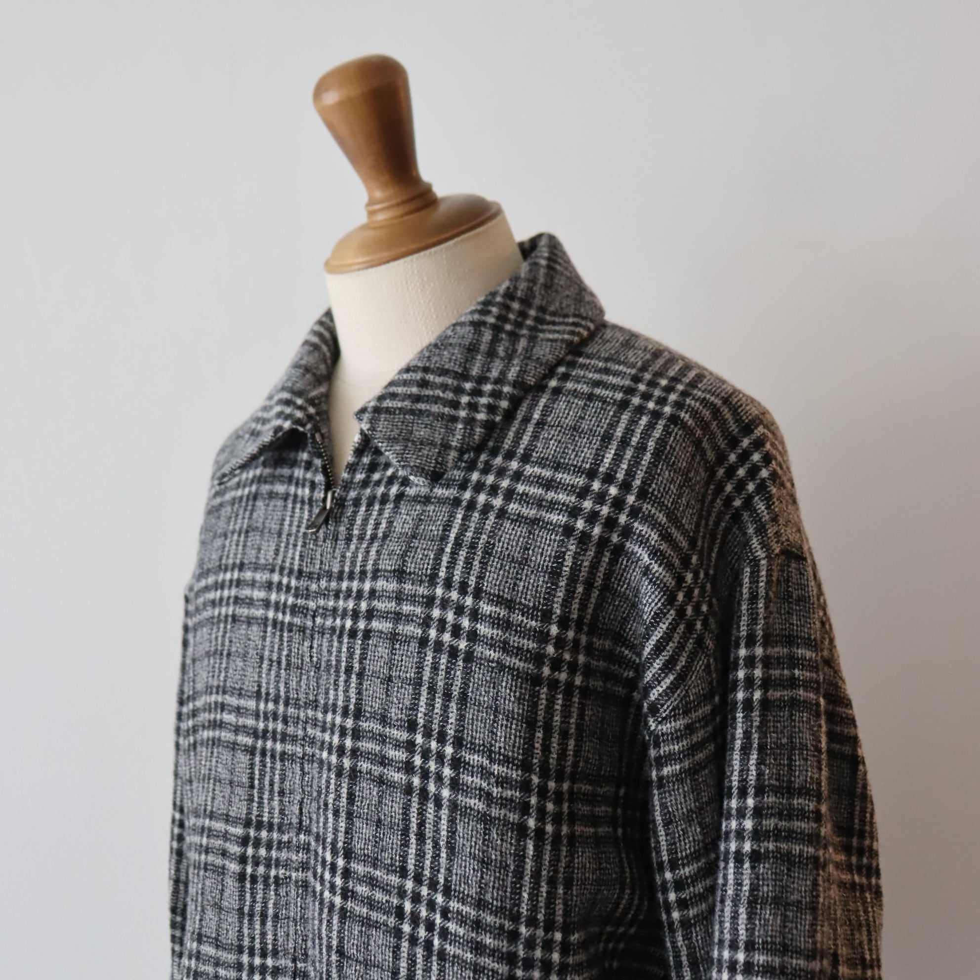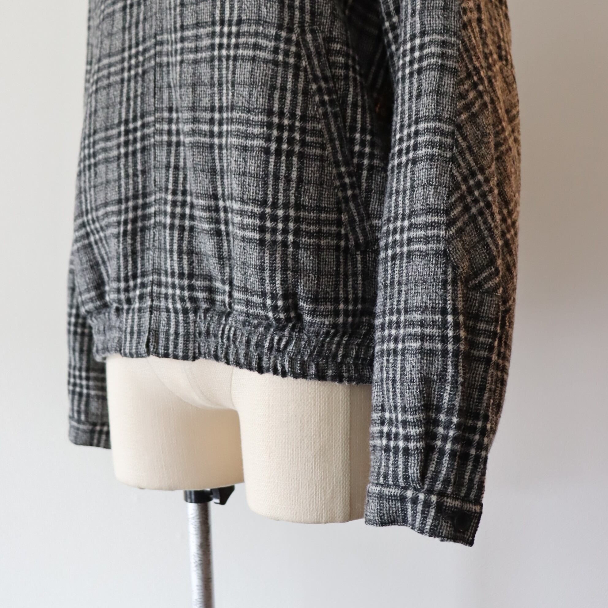 日本でも有数の毛織物産地である岐阜県羽島市で製作した、経緯糸共に2/48のウール素材。ビンテージチェックをモチーフにしながらも、古過ぎないチェック柄に仕上げました。