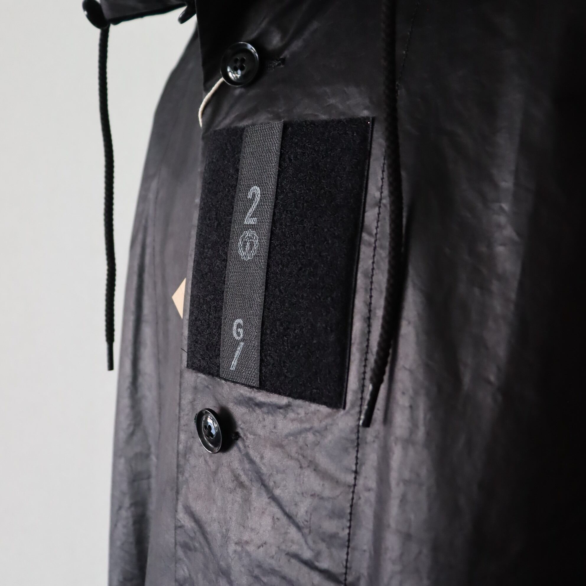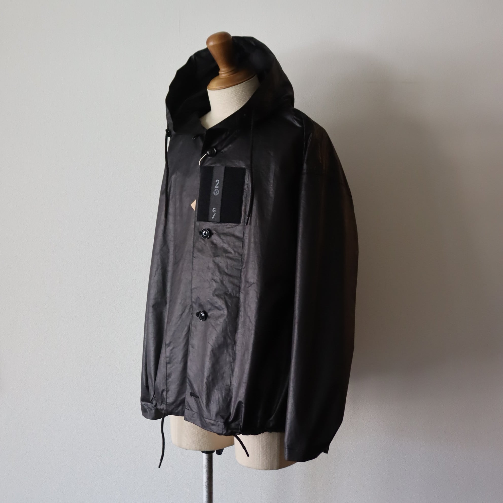 コーチJK、レインウェア、ミリタリー、フィッシングの要素を踏まえたディテールを凝縮させたフードJKT。マイクロファイバーを高収縮させることにより独特の風合いを持ち合わせた生地となっており、高撥水高ベント機能となっております。