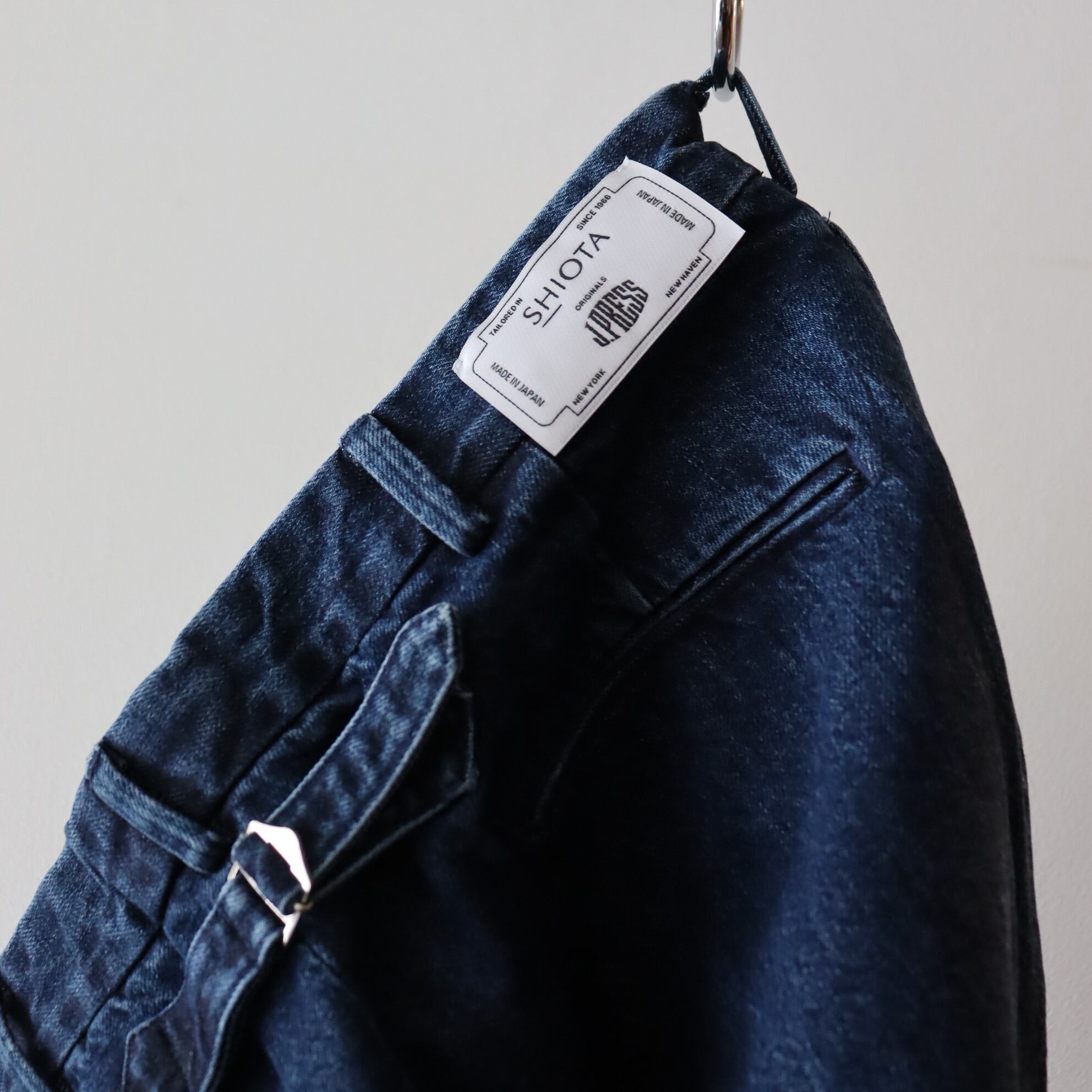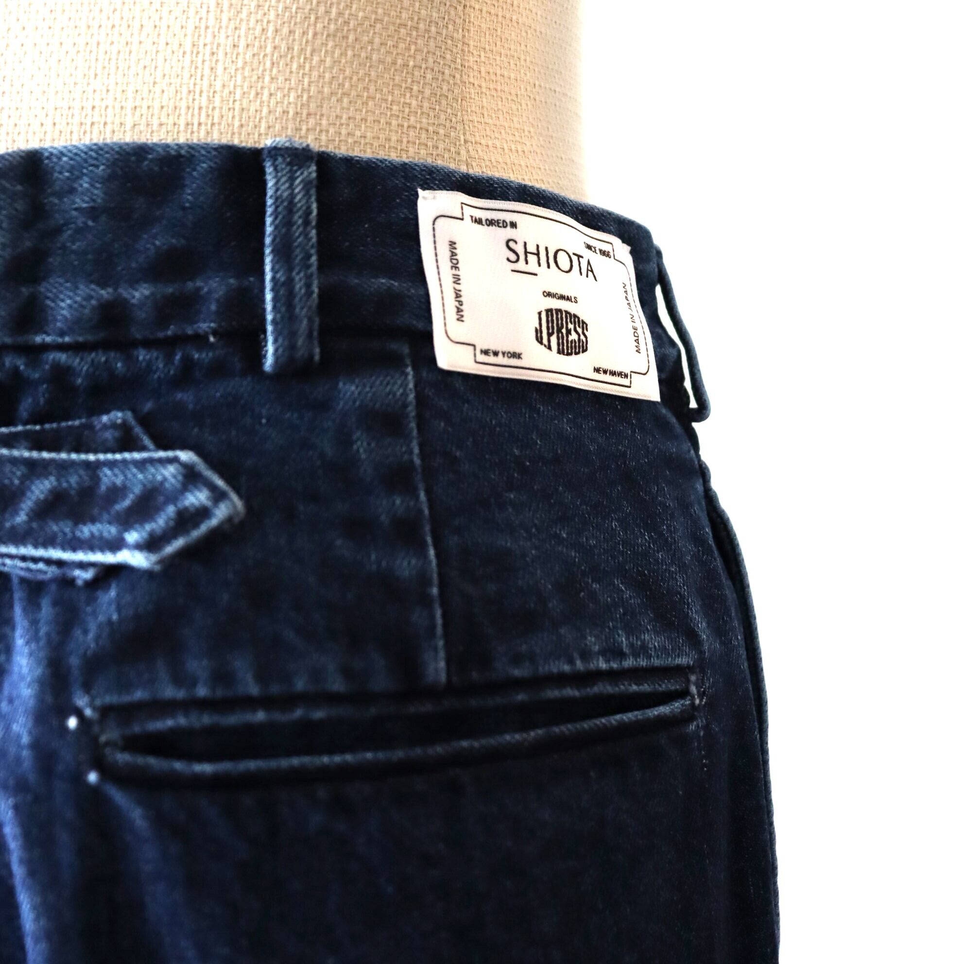 こちらのアイテムは、J.PRESSが提案するパイプドステム型の型紙を送り込み、デニムにてスラックスを制作して頂いたものです。