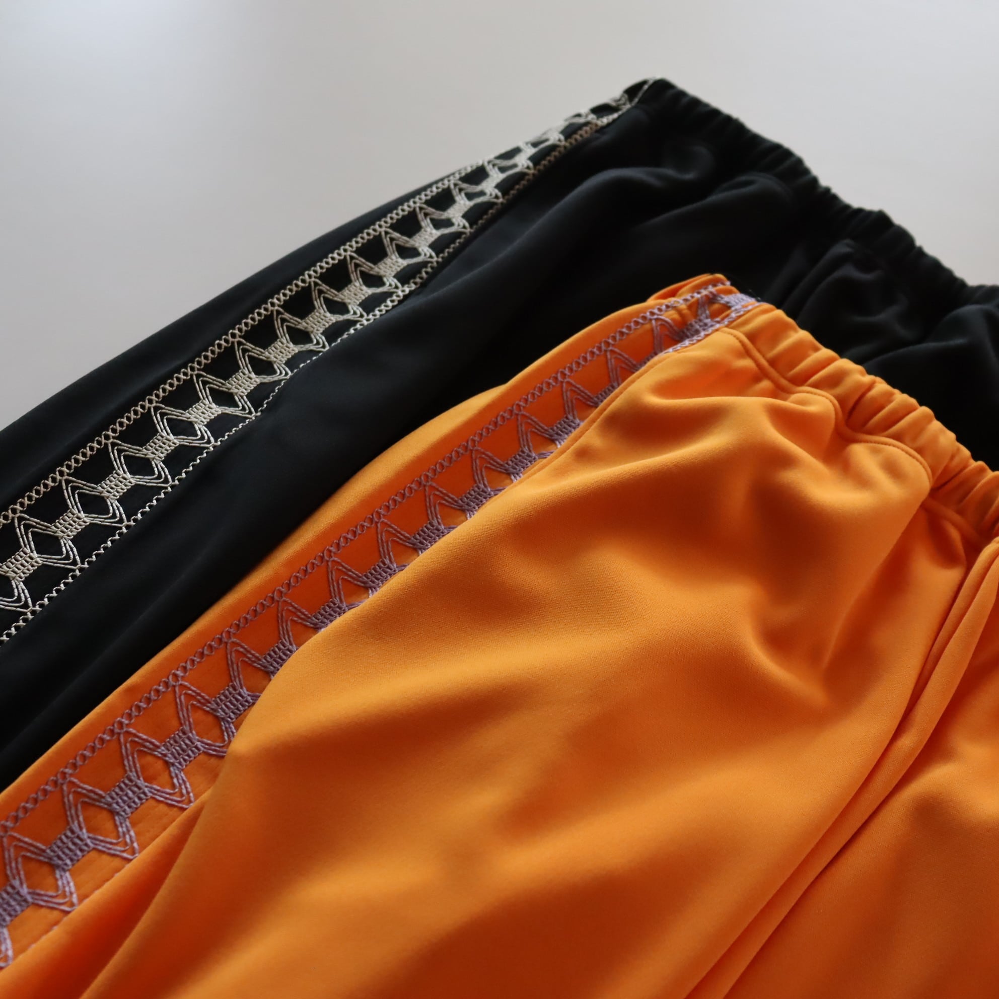 キューバシャツに施されているような刺繍をジャージパンツに施した1本。