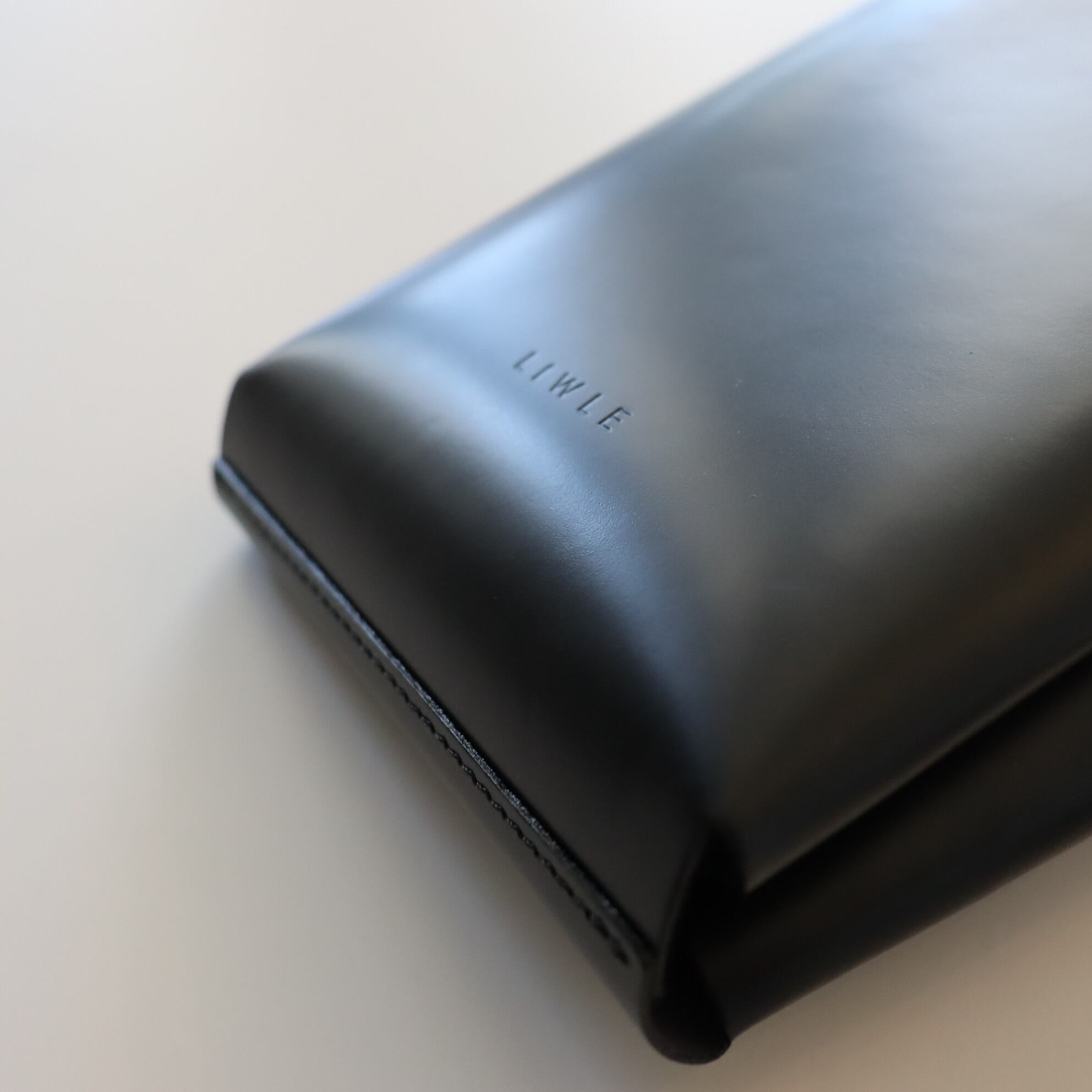 フォン用の小ぶりなポーチです。上質なガラス仕上げのステアレザーを採用しています。