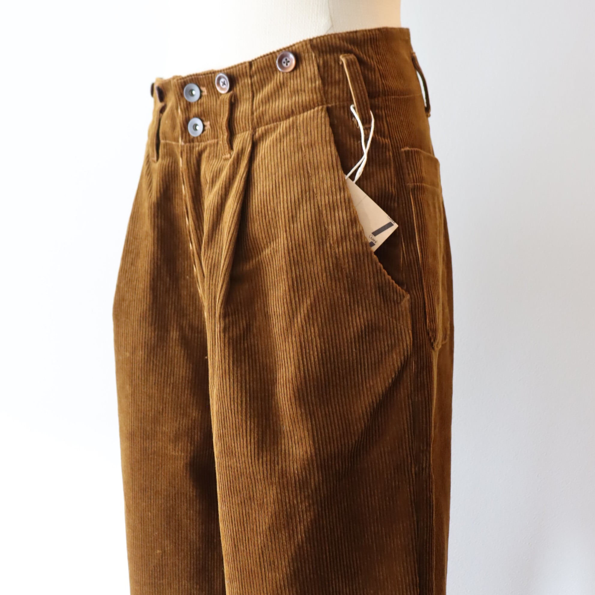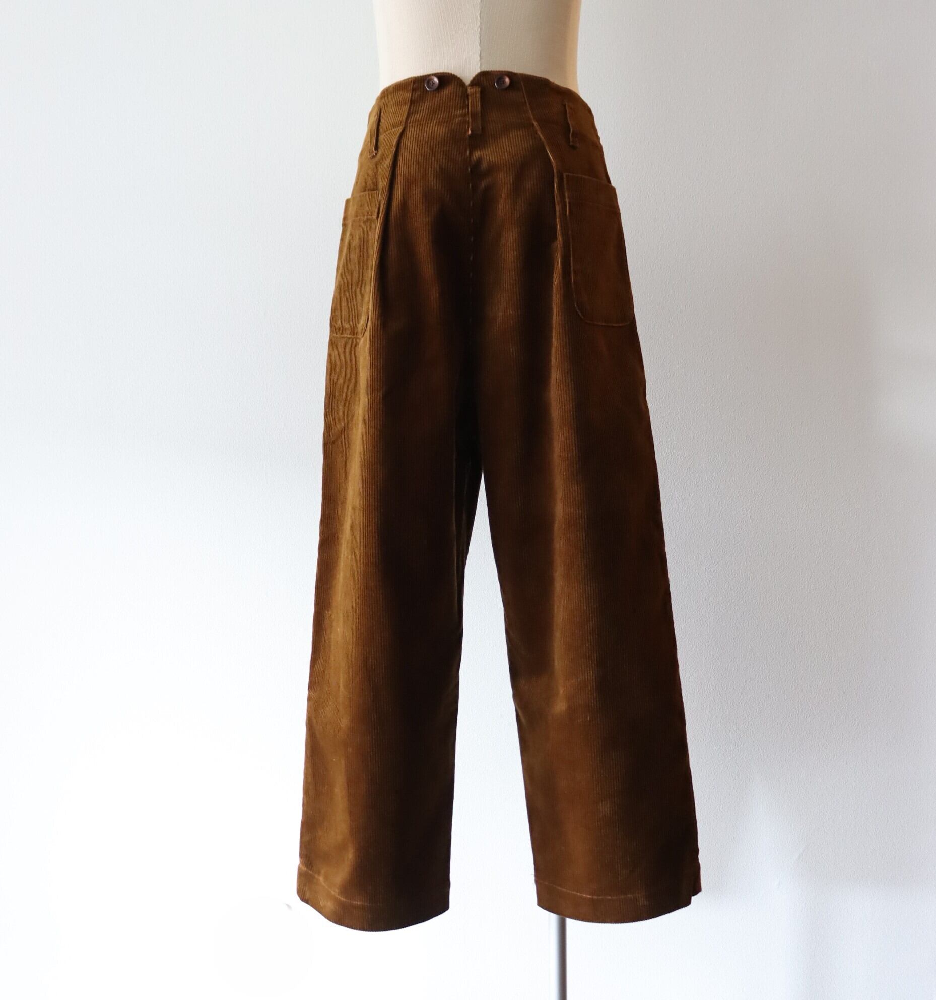 高密度2重織コーデュロイによる重厚感のある表情を生み出し、前後にタックを入れ立体感のある表情が特徴のGurank定番のワークパンツとなります。