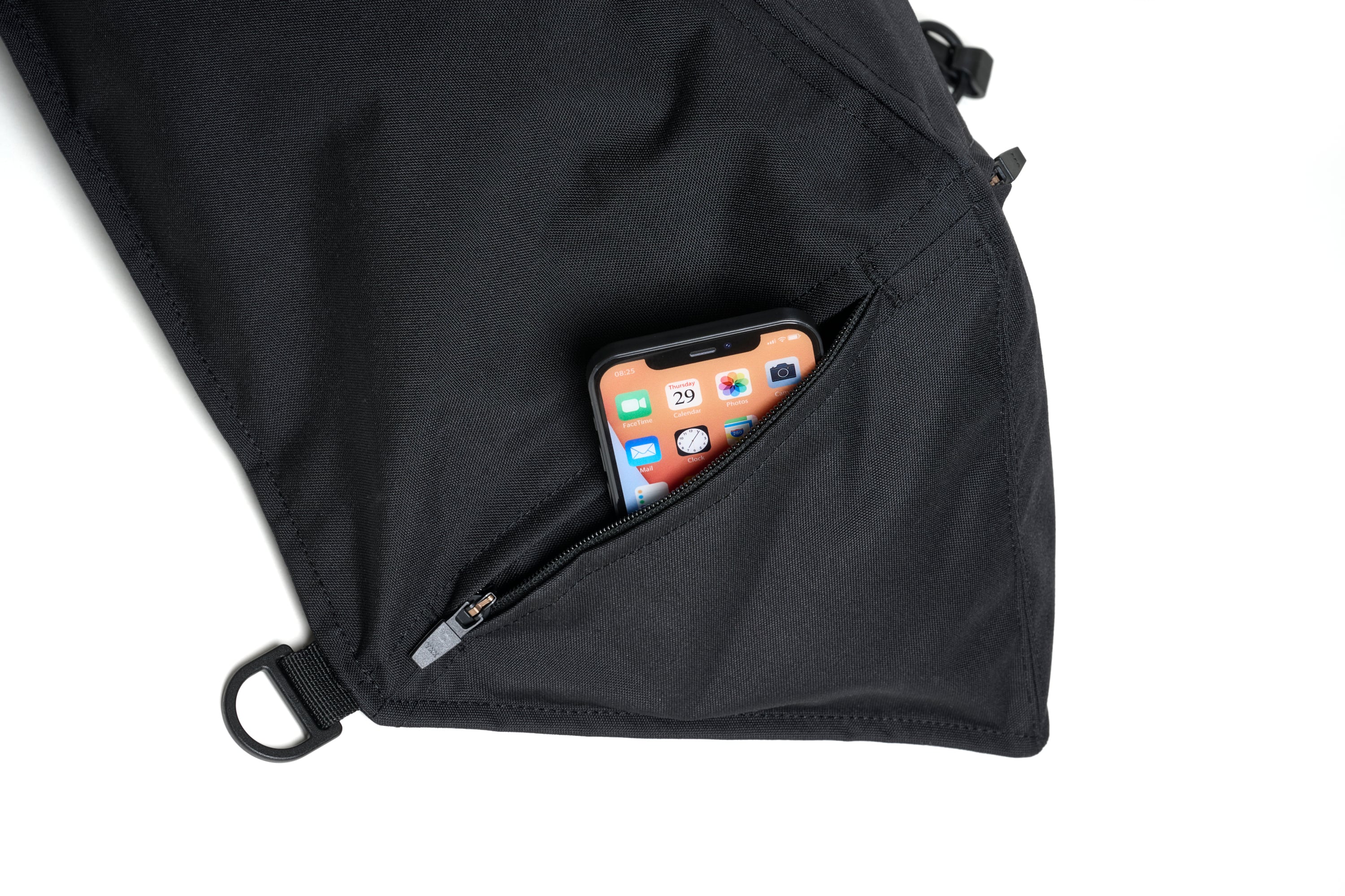 フロント中央のファスナーよりアクセスできる他、ボトム部両サイドにファスナーポケットが御座います。