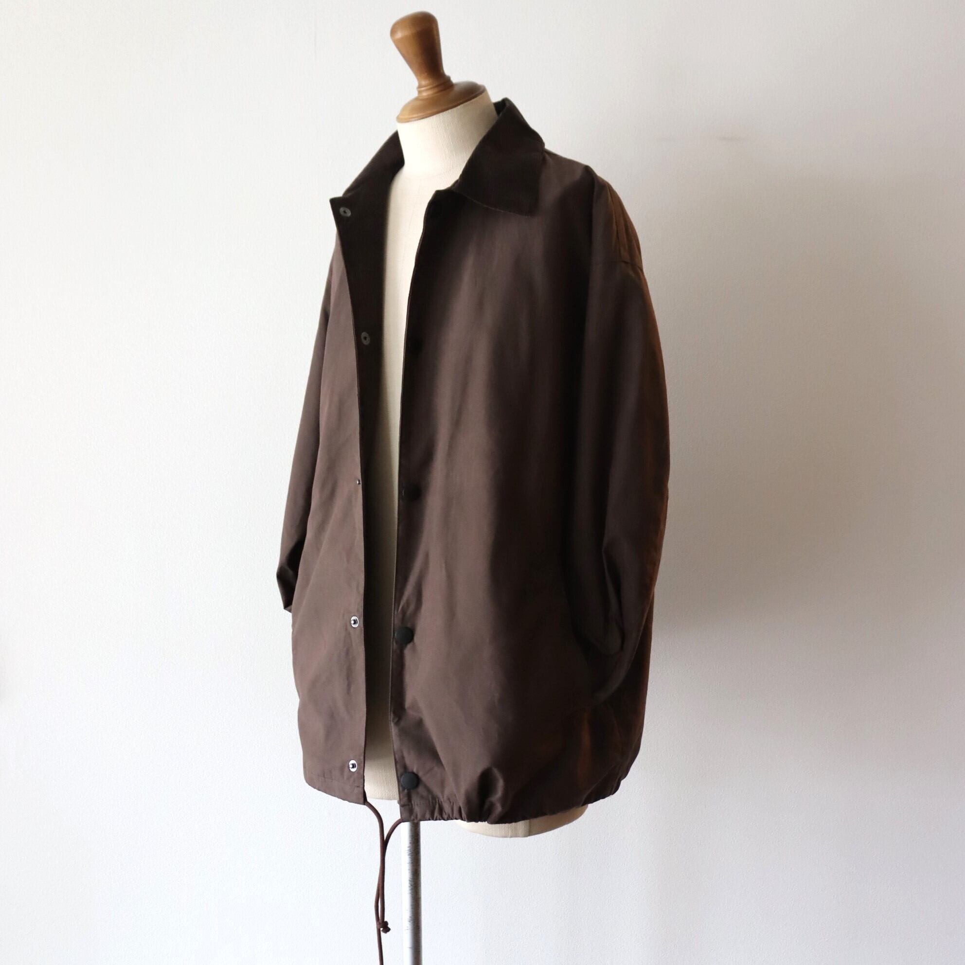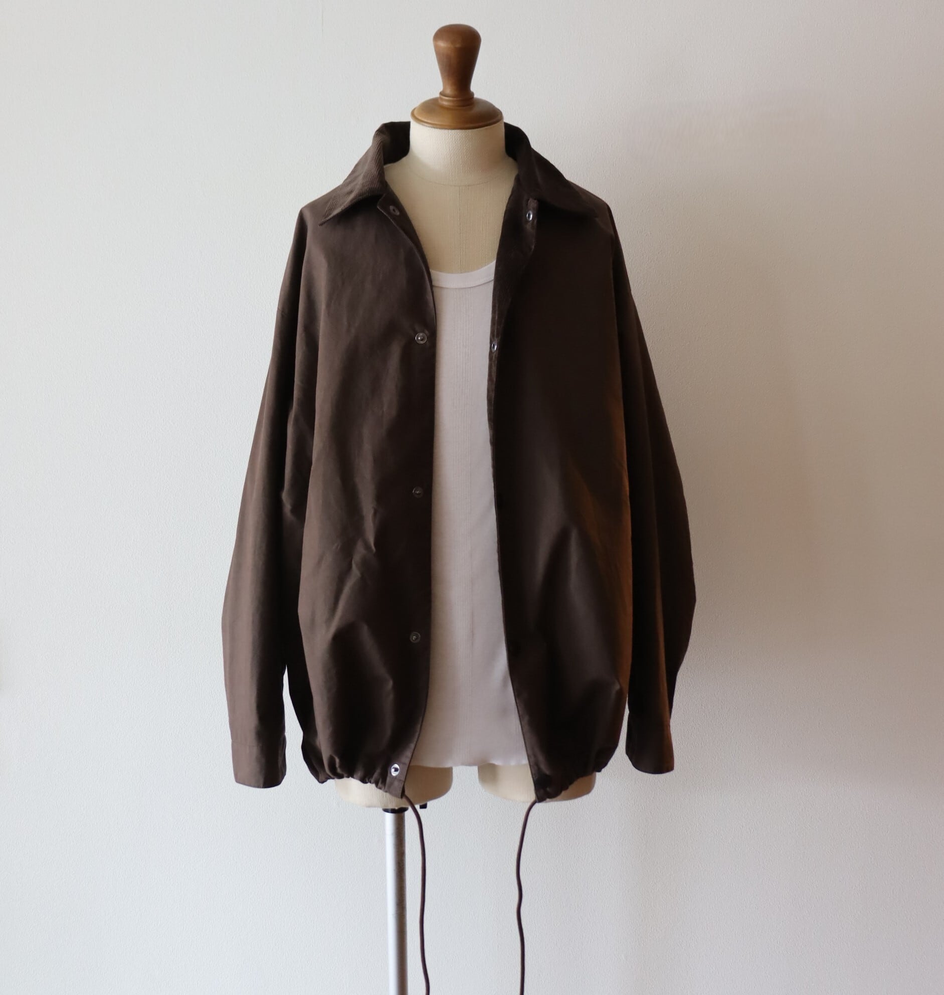 平面的なコーチジャケットではなく、少し前振りした袖や、ゆったり目のシルエットで何にでも合わせやすいアイテムにしています。