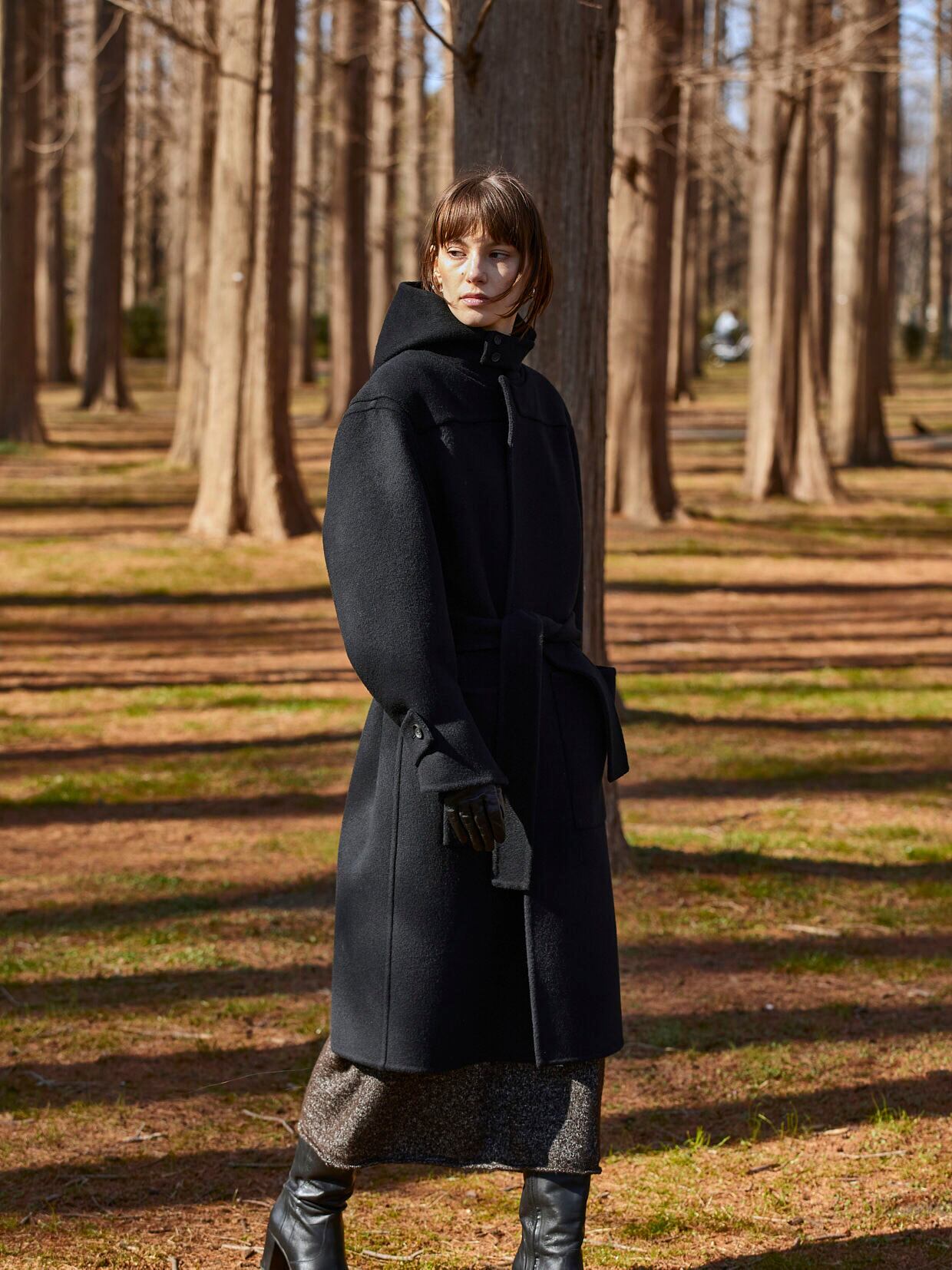 POSTELEGANT " Wool Rever Hooded Coat ( Black )"