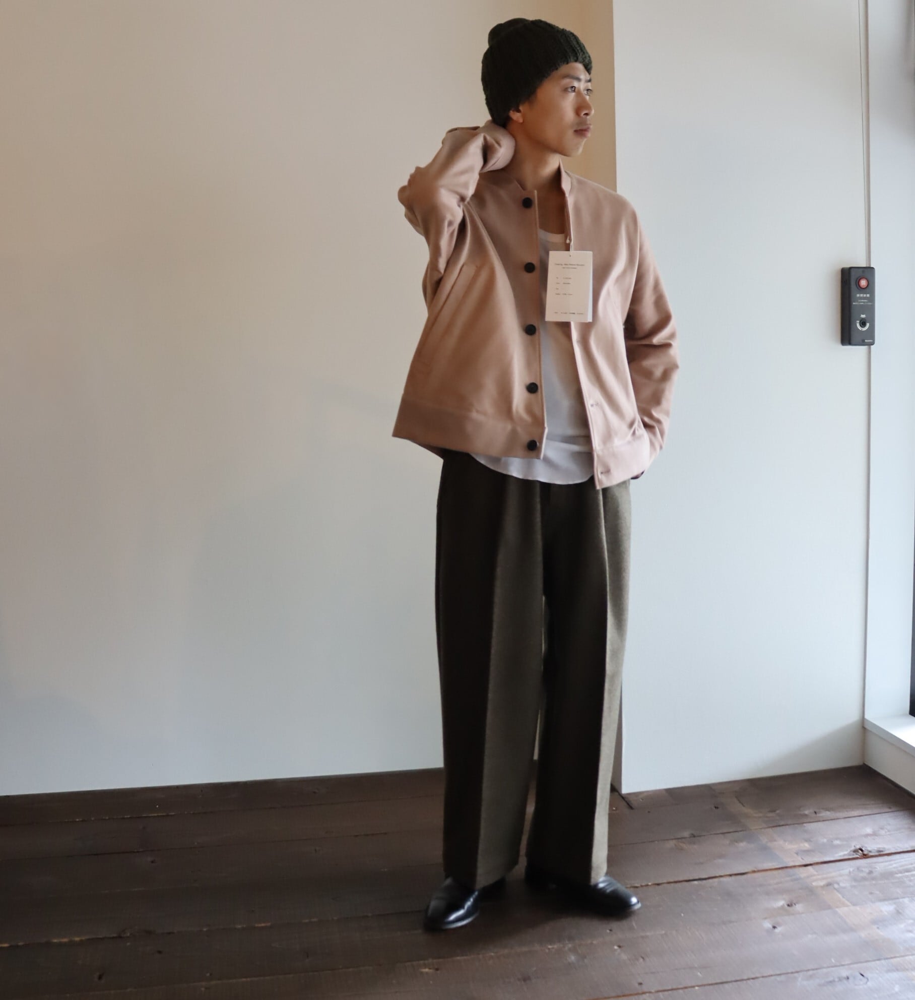 裾に向けてズドンと落ちるGurankの得意とするワイドなシルエットのパンツに仕上っております。