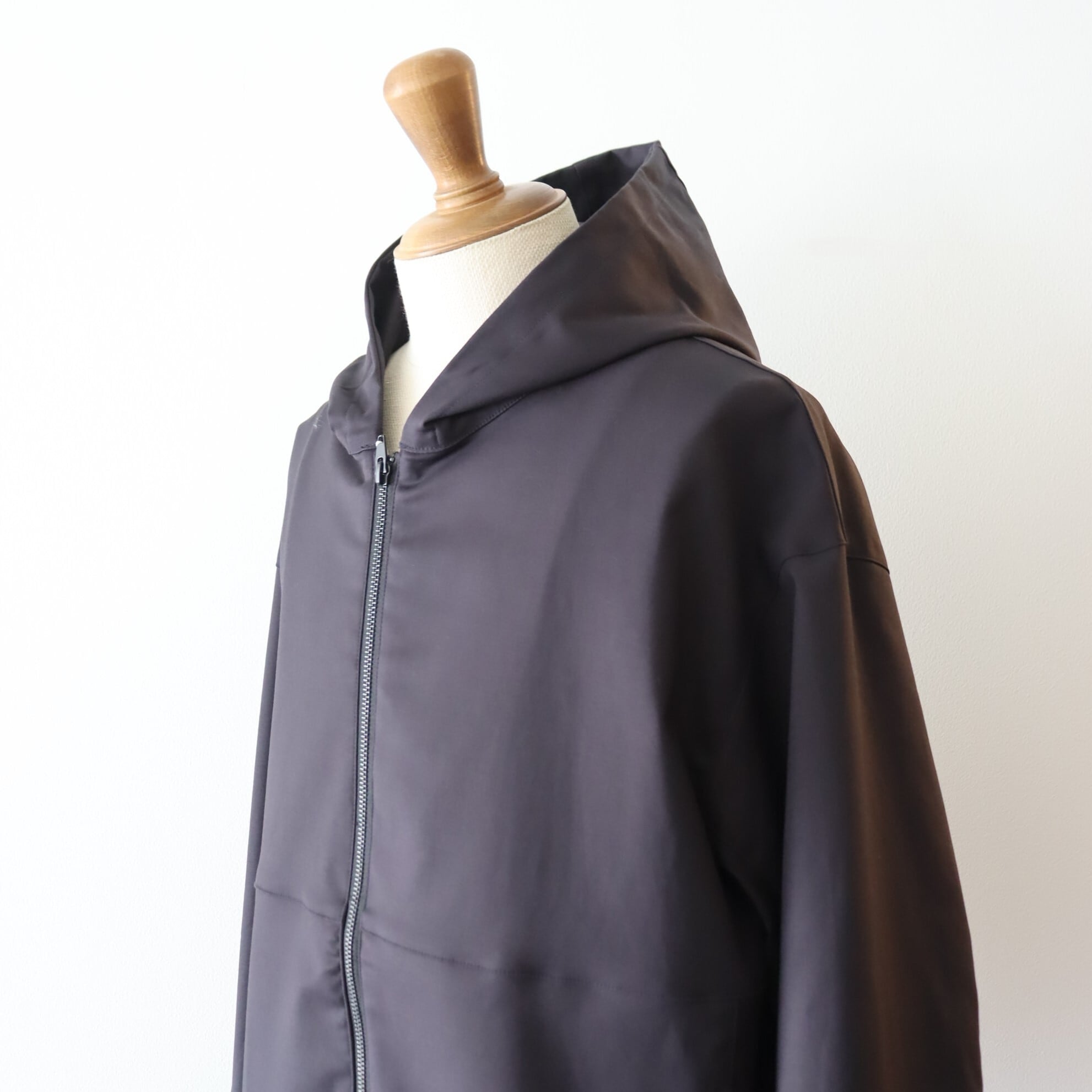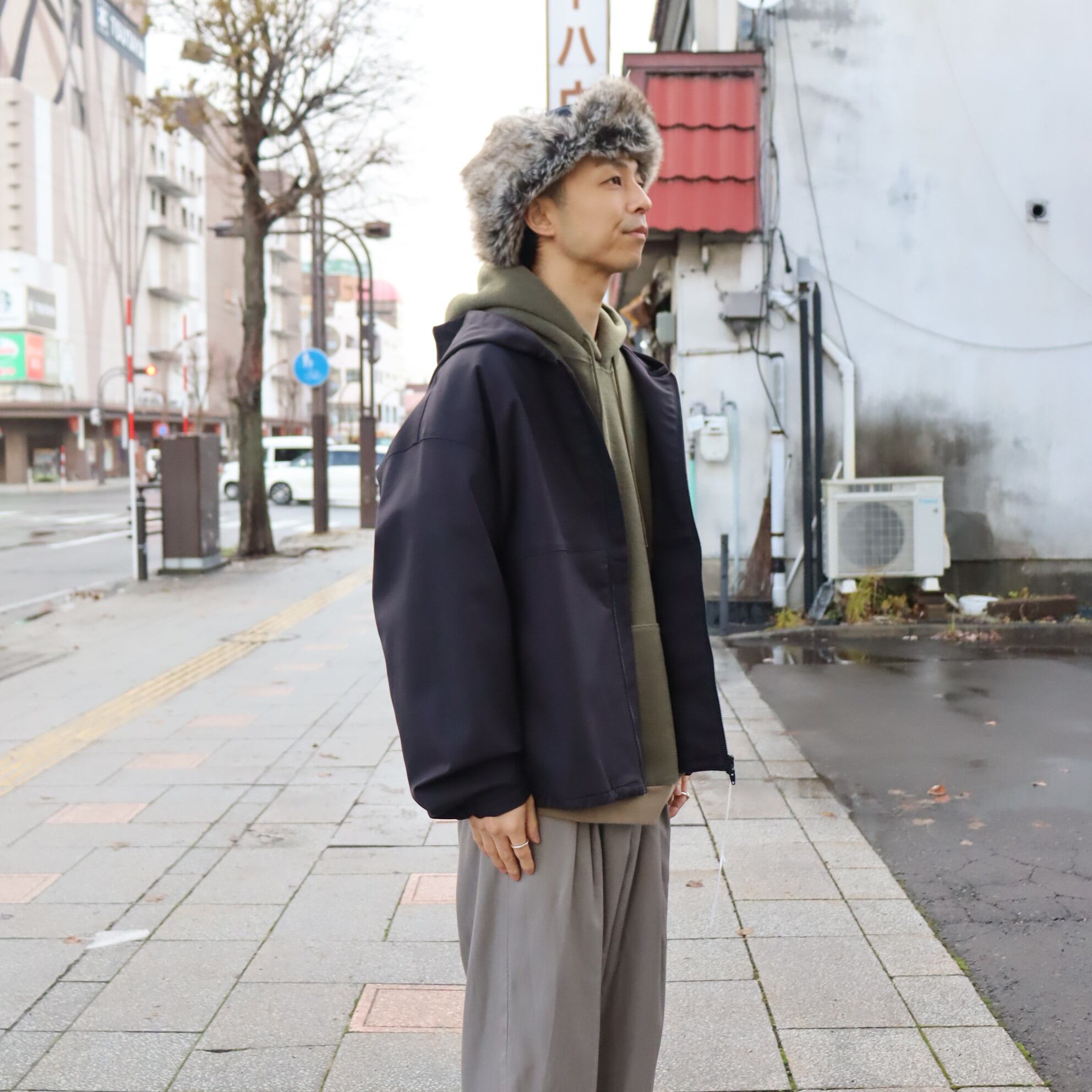 とても滑らかで膨らみのある生地を使用し、フードブルゾンの様にお使い頂けるDOUBLE CLOTH ZIP PARKA。綿の二重織ストレッチを、特殊な染色や加工によって、天然繊維を天然繊維ではないようなタッチに仕上げた生地で、上品な雰囲気が漂います。中に着込めるシルエットで、適度な厚みなので冬から春まで長く使えます。