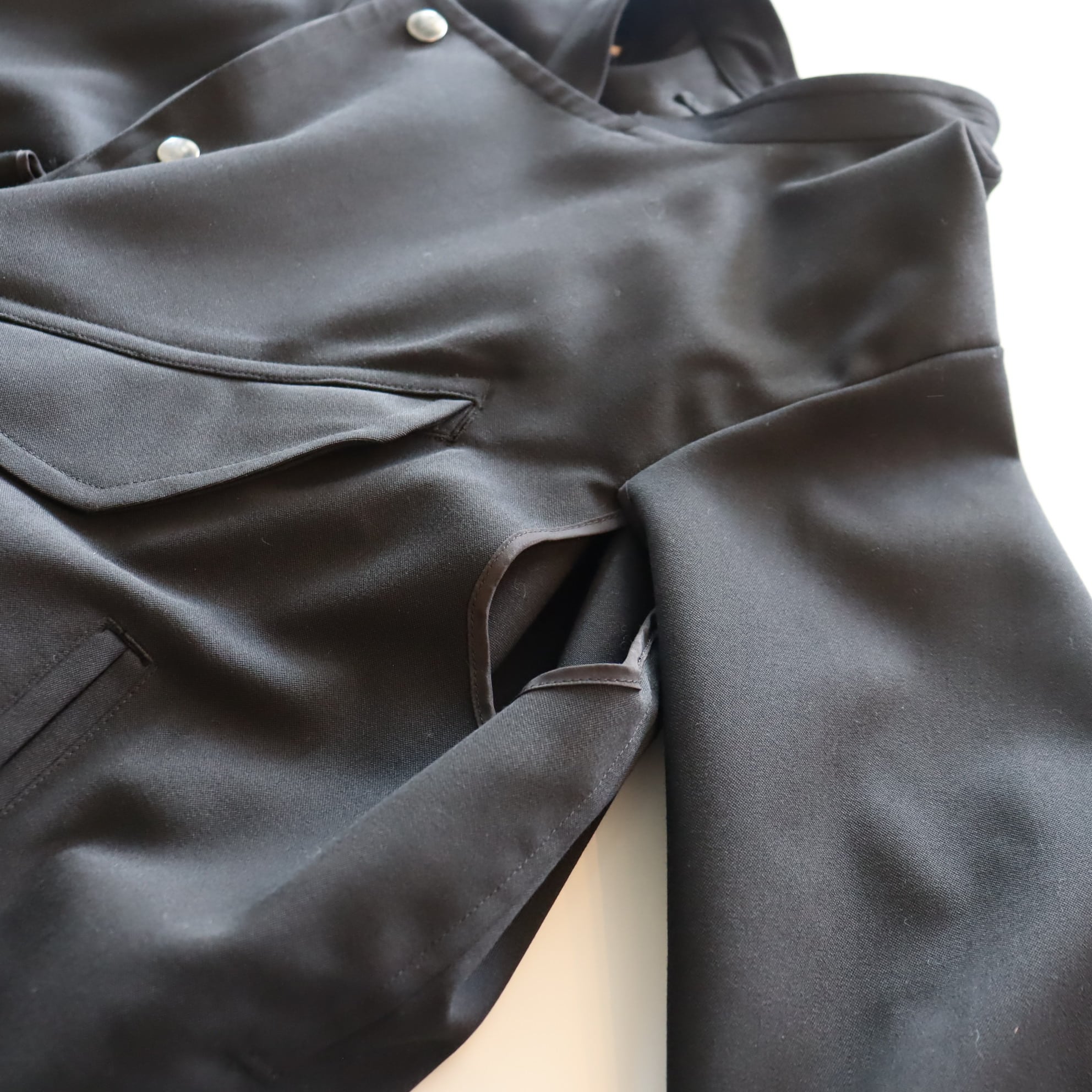ライダースジャケットをベースにした左右で半分に分解できるブルゾンです。