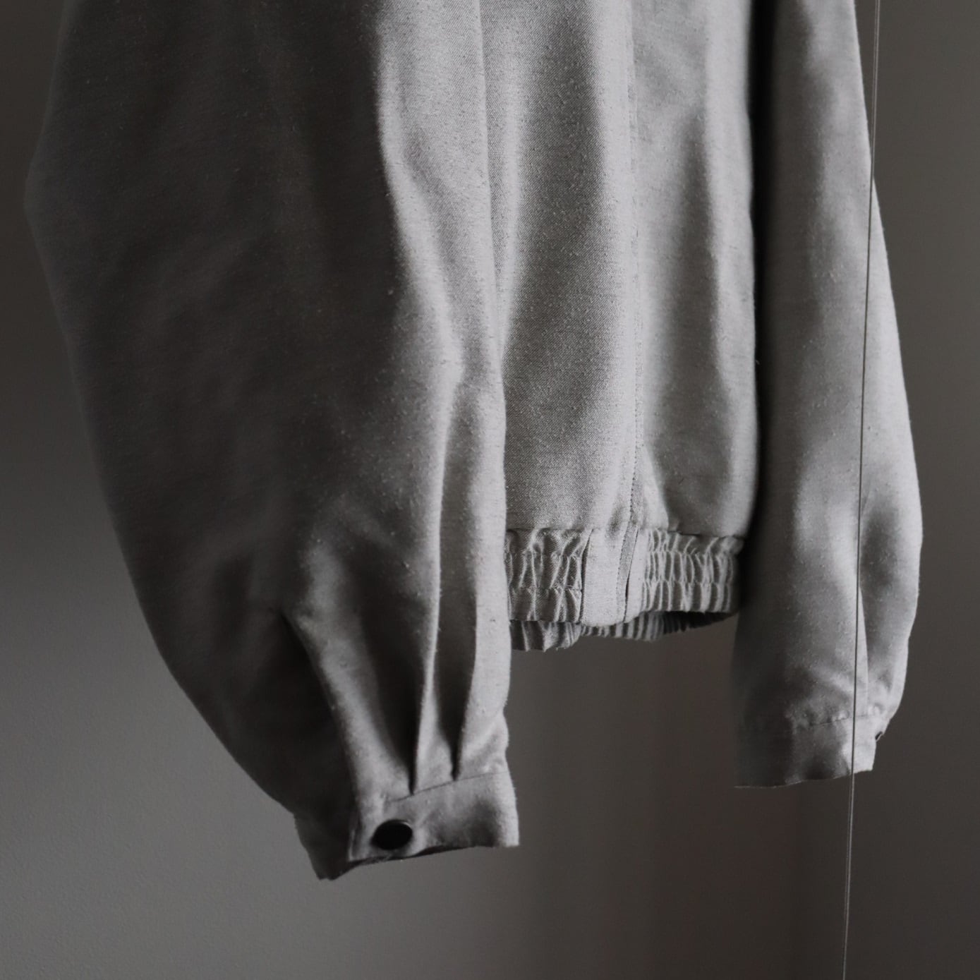 2024年春夏シーズンに展開をしていた素材の裏面を表面に仕様しており、経糸には、先染めのポリエステル、緯糸にはナイロンモノフィラメントとシルクを紡いだ糸を掛け合わせ、凹凸のあるシルクネップが浮き出てくる仕上がりです。
