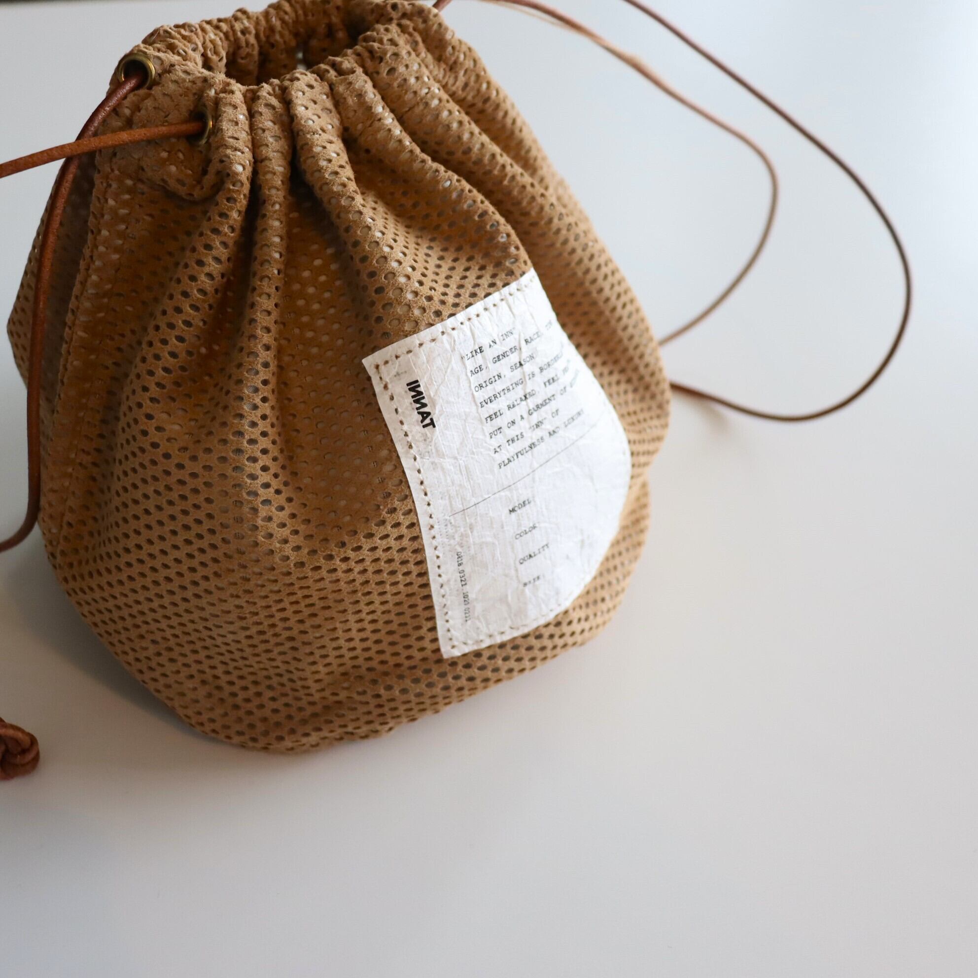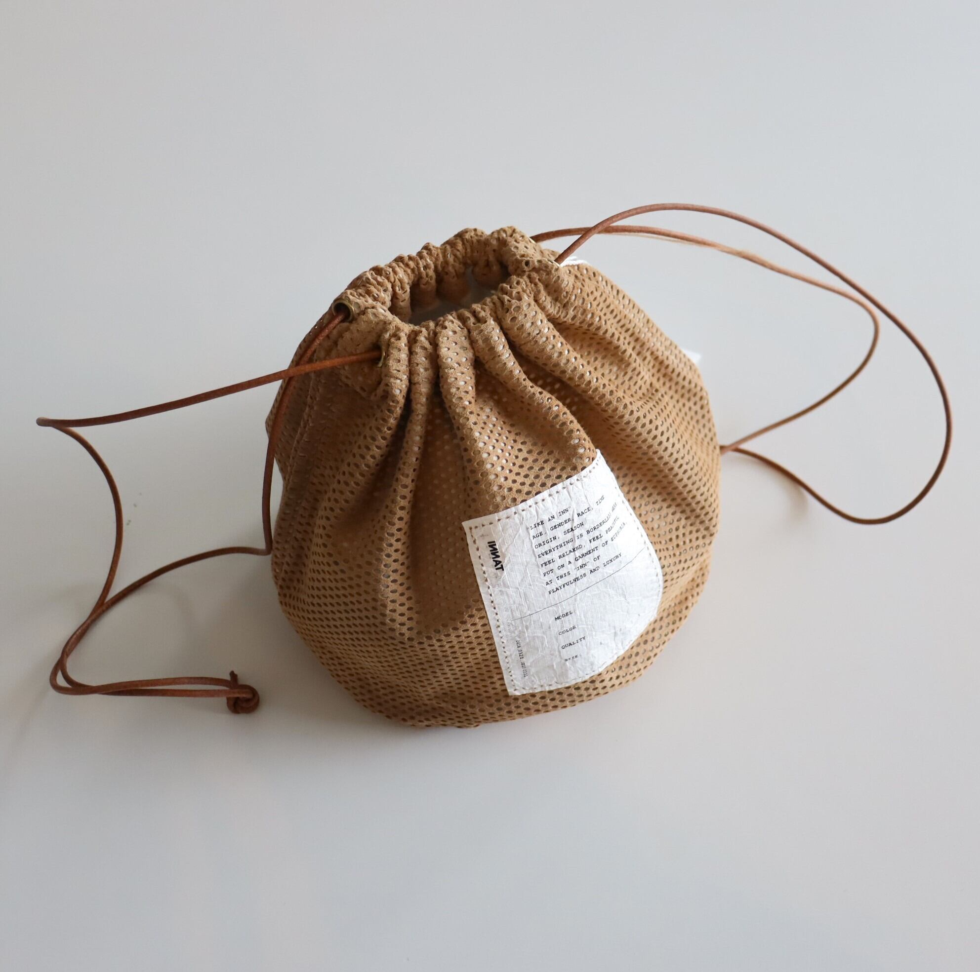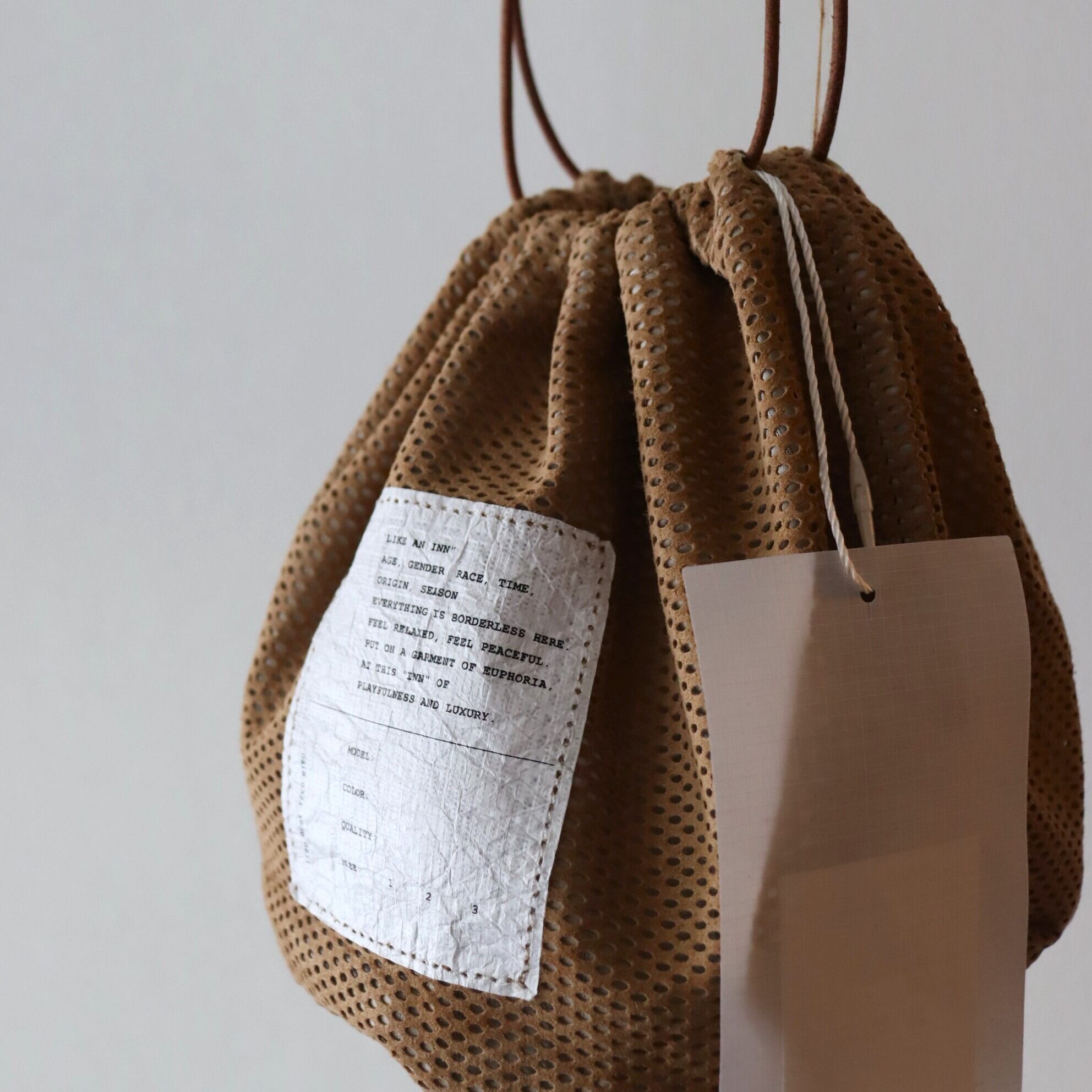 Pig SUEDEを使用したCHINCH BAG。⾷⾁⽤の副産物として得られるピッグスウェードを使⽤したCHINCH BAG。豚の⾰には、天然