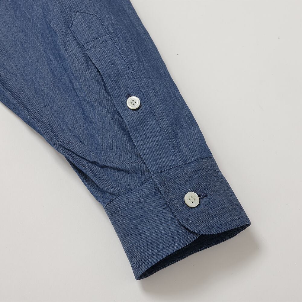 クラシックでありながら実用性の高いシャツを改めて見つめ直し、新旧・国籍(ブランド)問わず様々なシャツをリサーチしました。これから5年,10年着たいシルエット、素材、仕様を探り、試作を重ねる中で生まれたシャツ。滑らかで肌触りの良いスーピマコットンをベースにIndigoのロープ染色にて染め上げた【Indigo Dye Cotton Twill】を使用した新作となります。