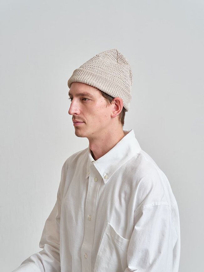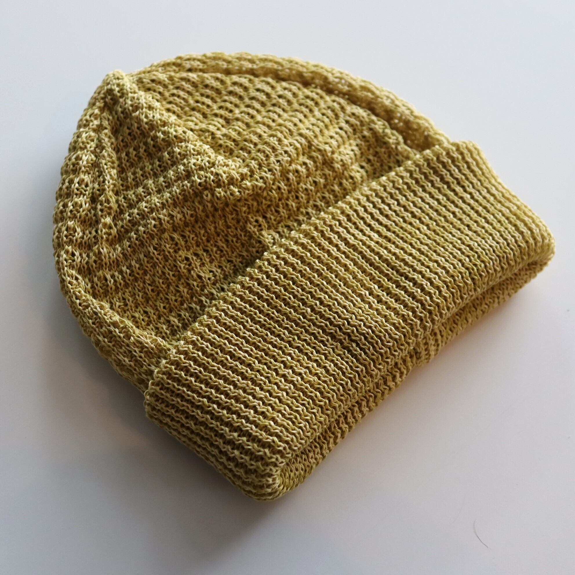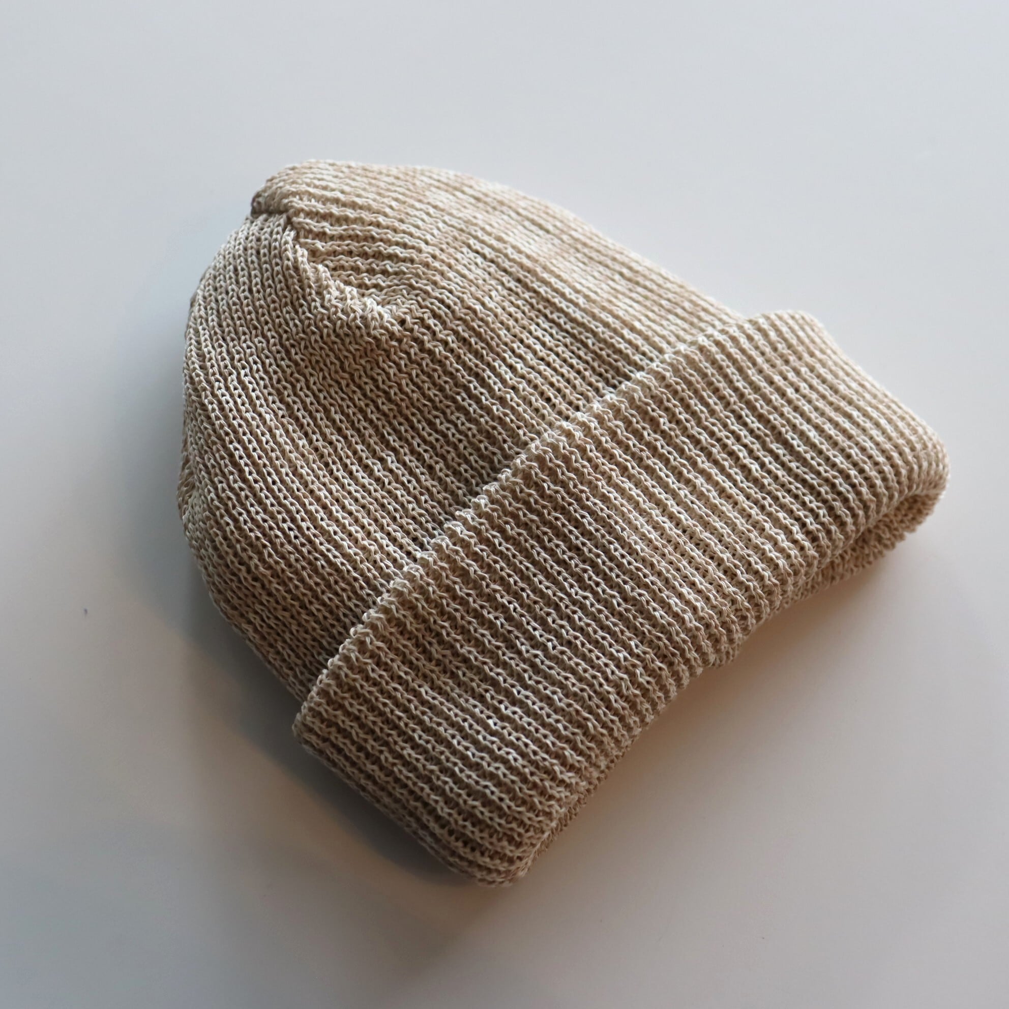麻のようなドライタッチで清涼感とシャリ感のあるリバーシブルニット帽。
