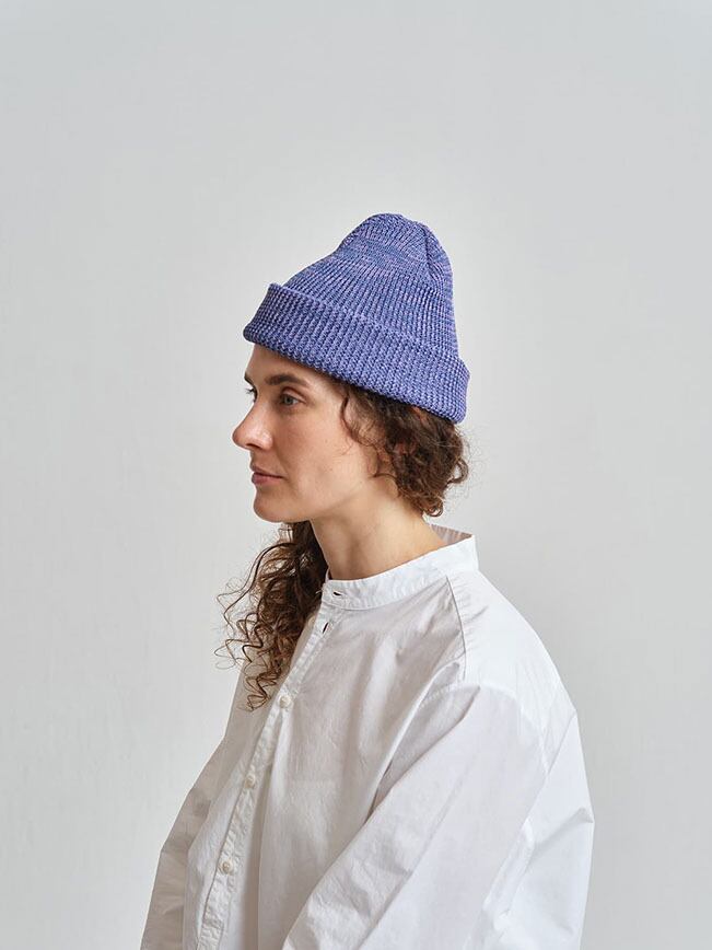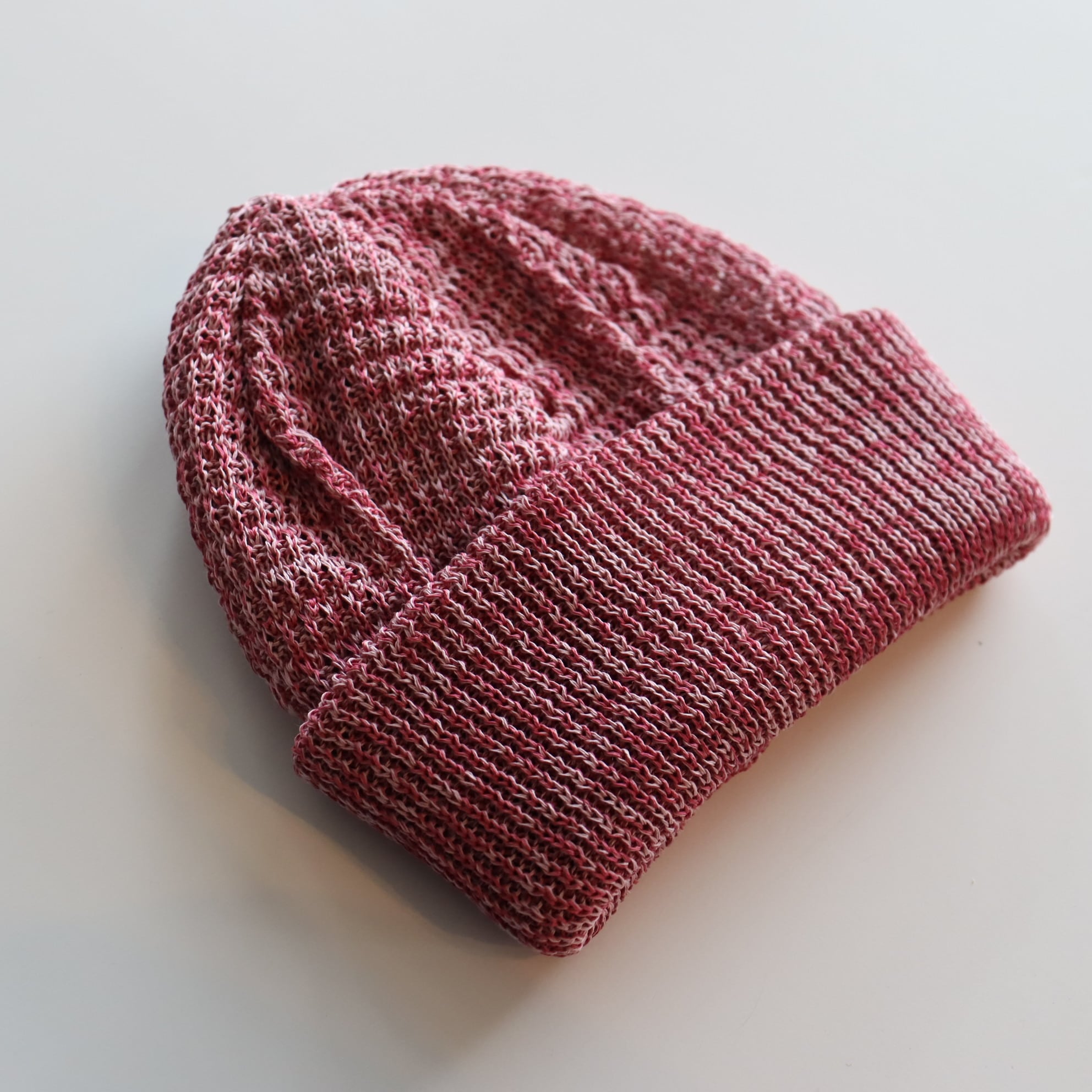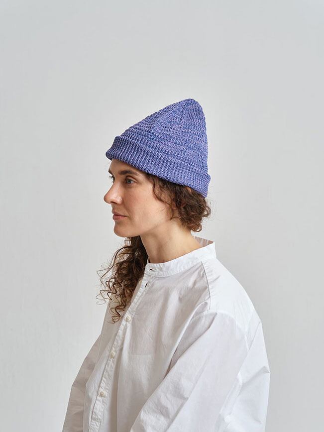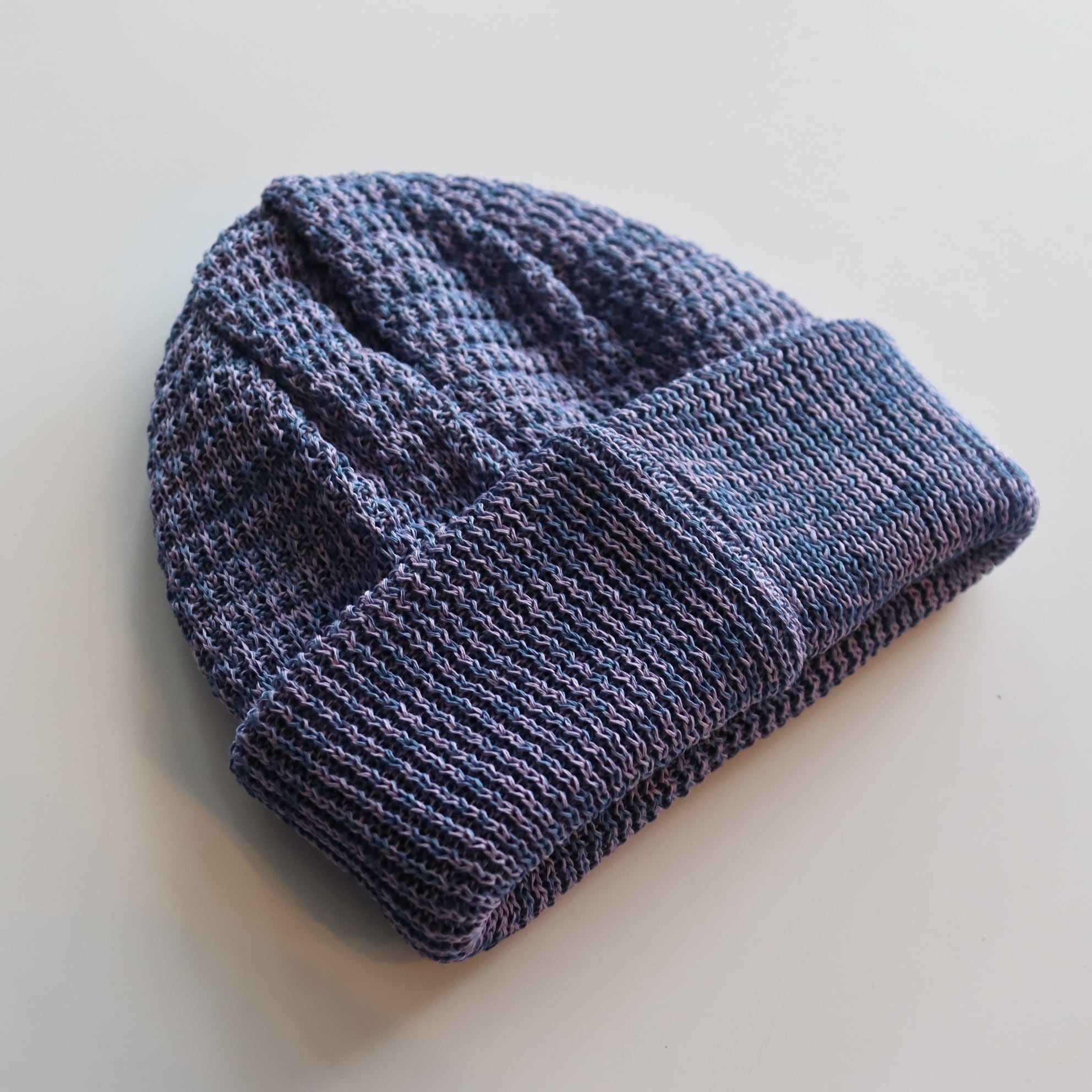 麻のようなドライタッチで清涼感とシャリ感のあるリバーシブルニット帽。