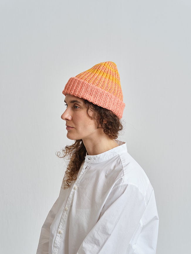 使い込んで行く毎に柔らかく馴染みます。ローゲージで編み立てた程よいボリュームのあるシルエットは安定したかぶり心地です。