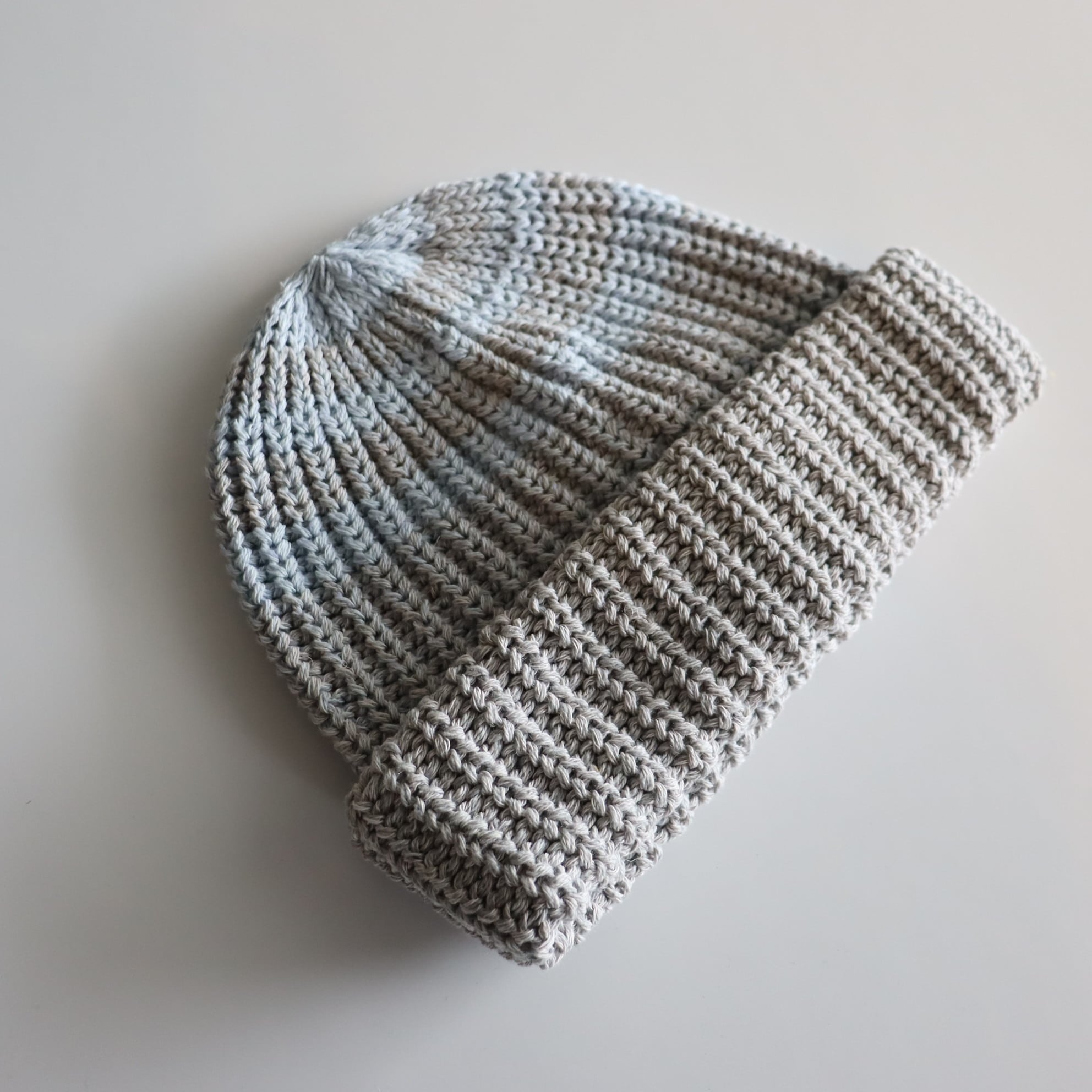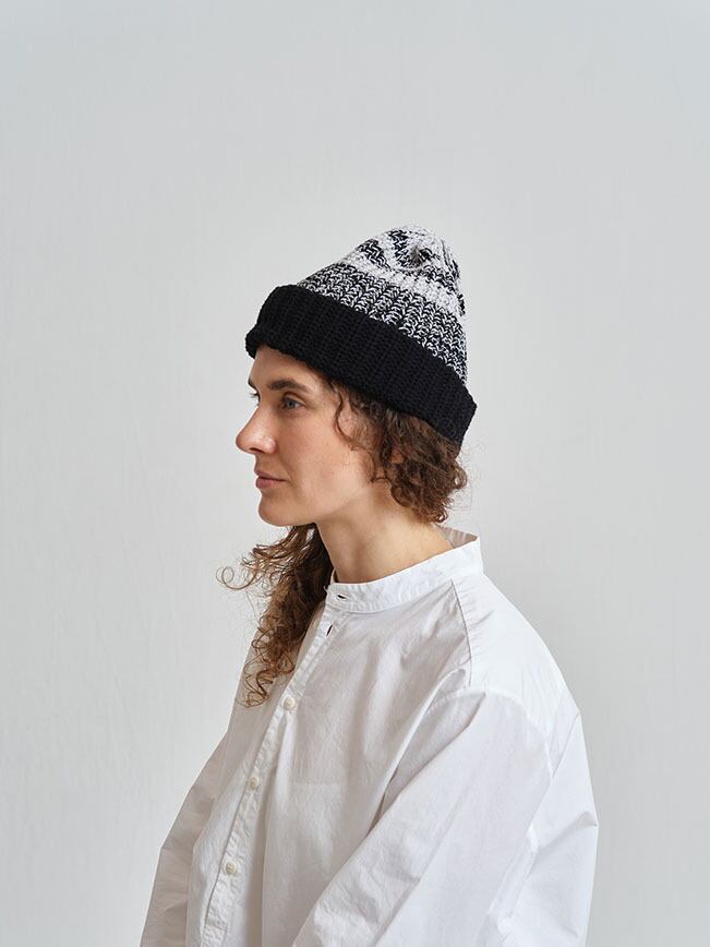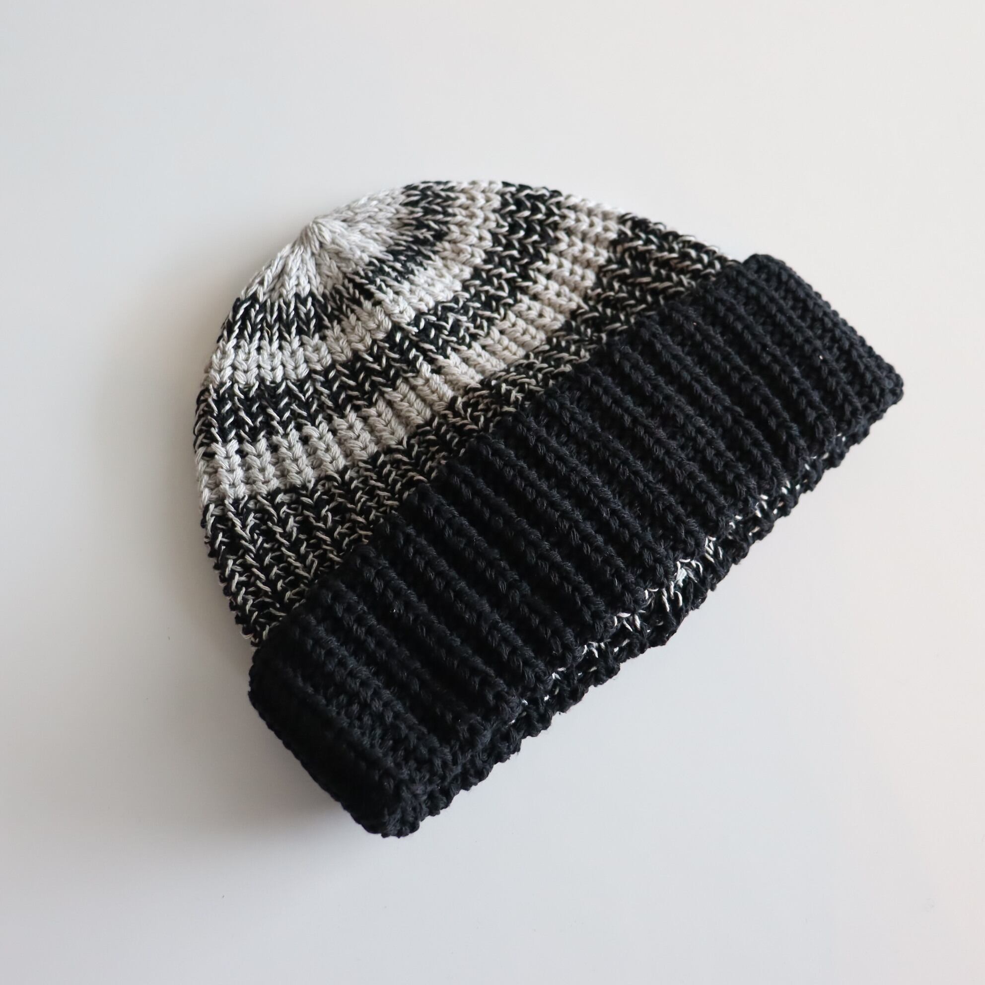 表情豊かなシルクと、特殊加工を施したコットンを、撚り合わせ編み立てしたニット帽。