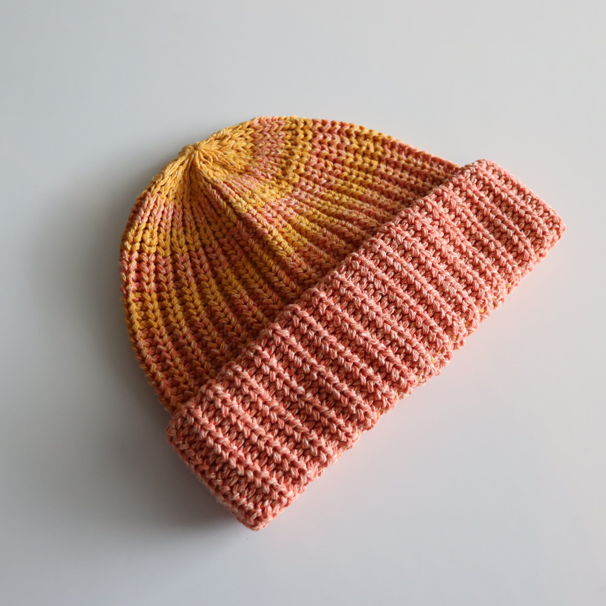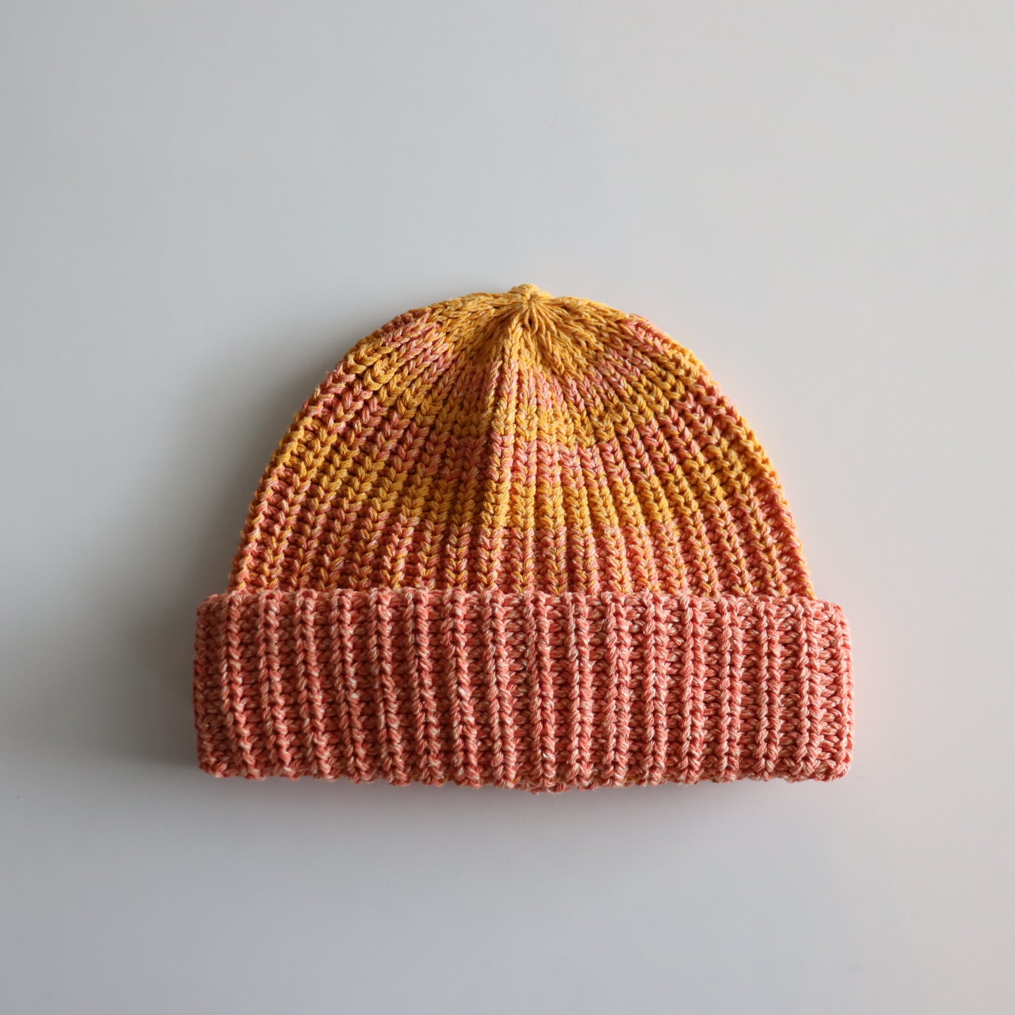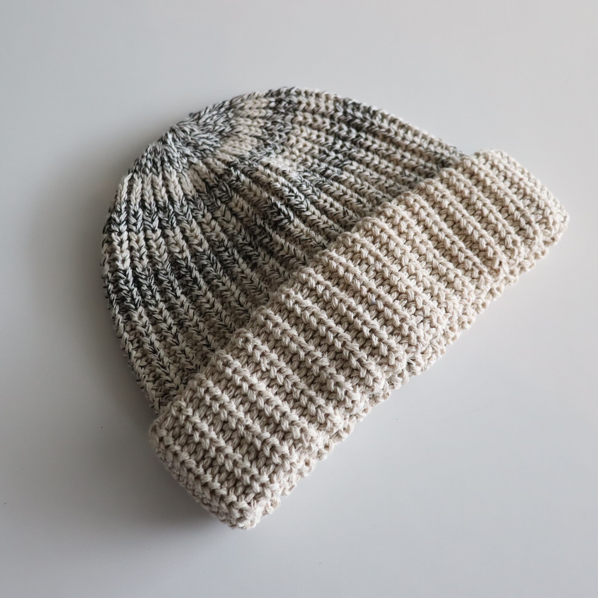 表情豊かなシルクと、特殊加工を施したコットンを、撚り合わせ編み立てしたニット帽。