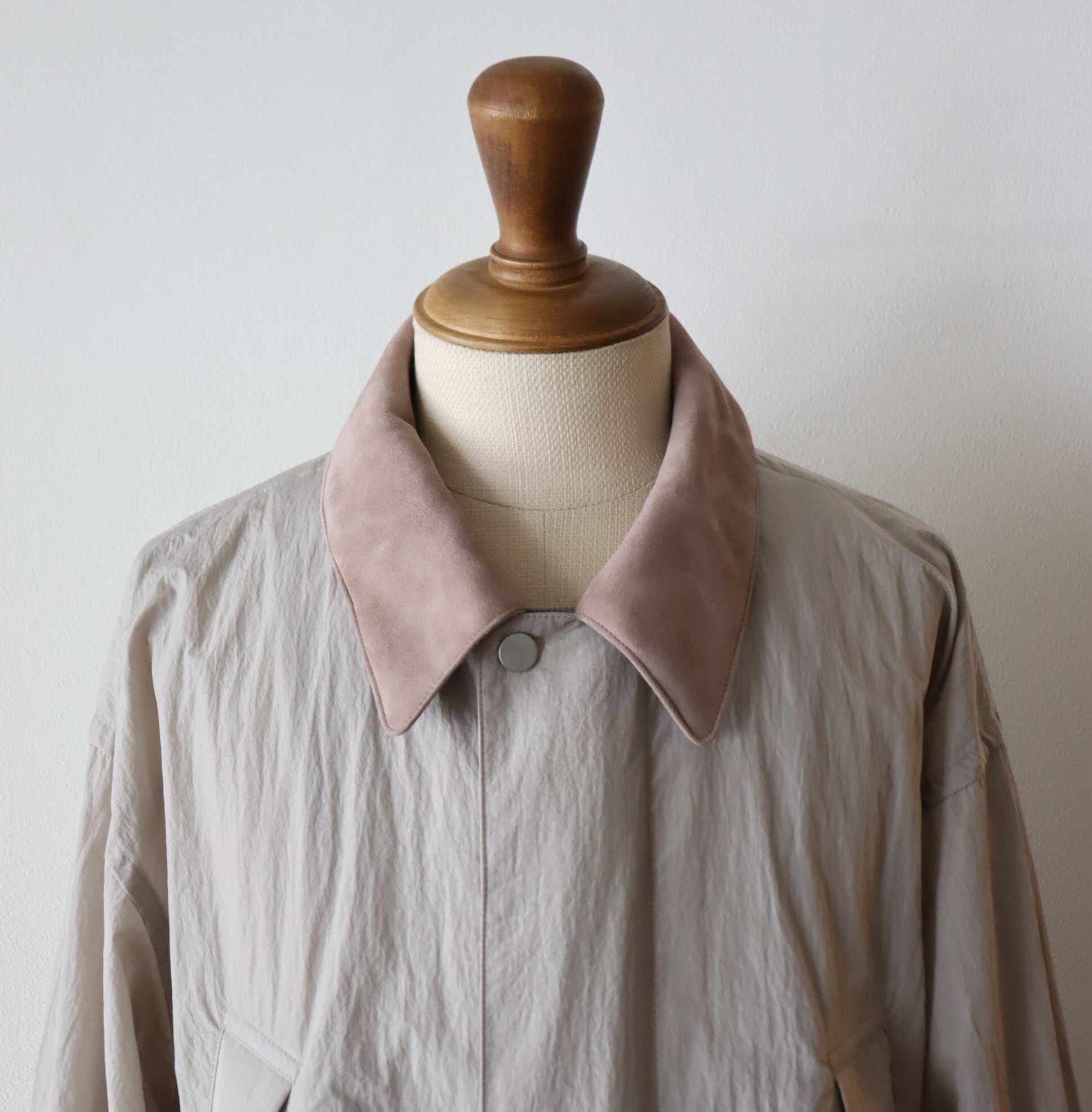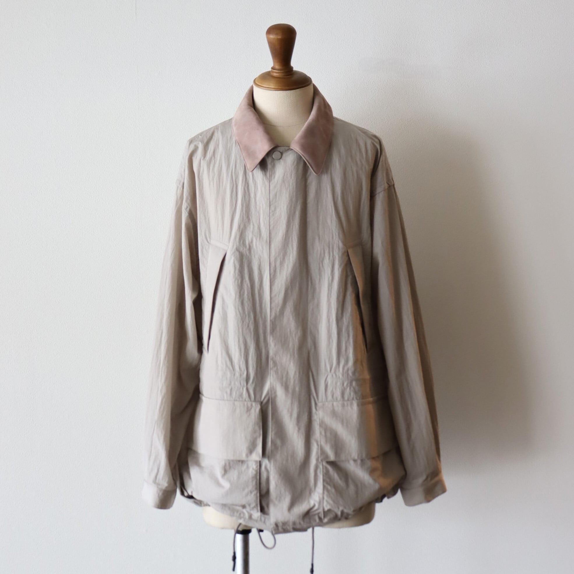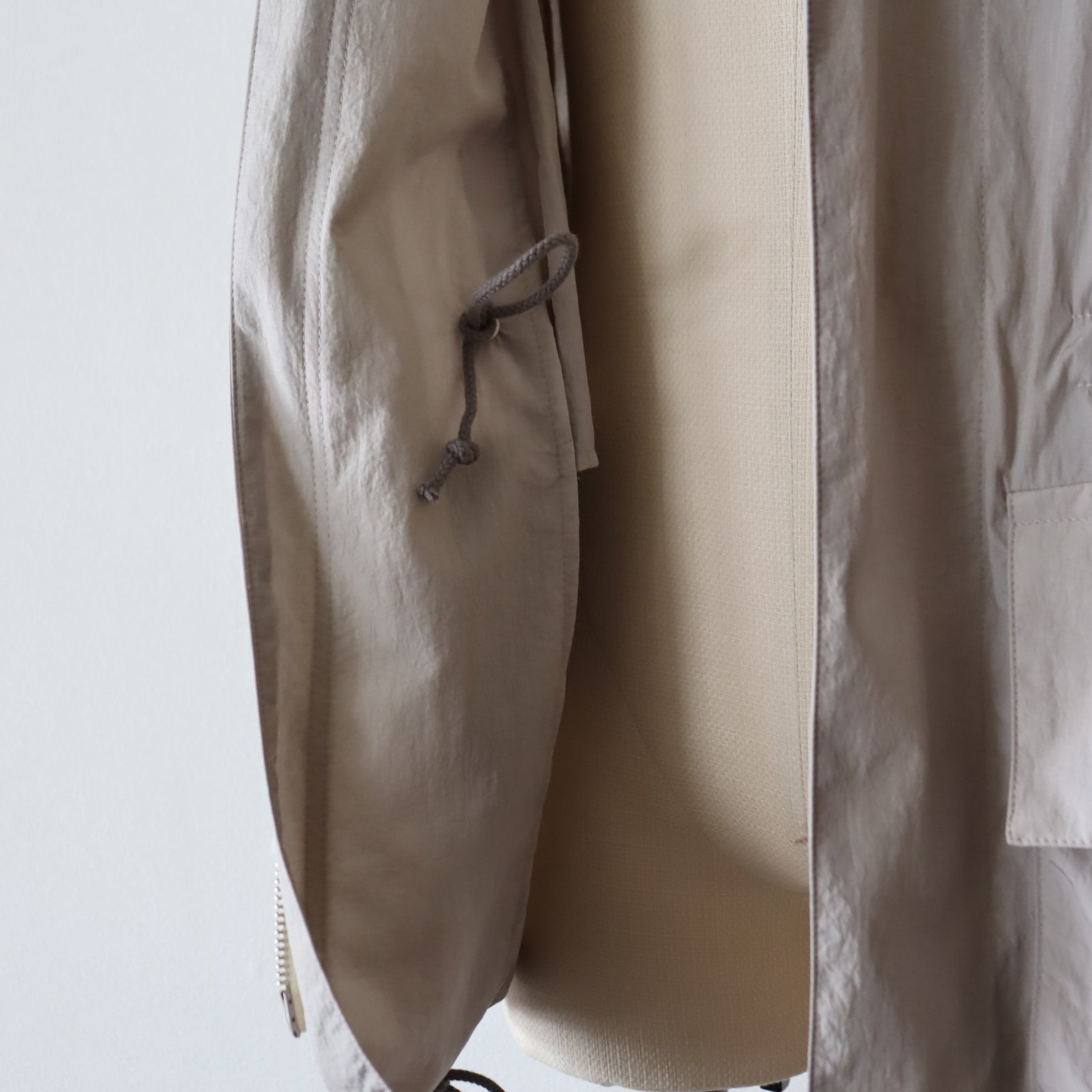 糸の加工とは別で仕上げにシワ加工を施すことで、ナイロンタフタですが、より深みのある色味とタッチの良い雰囲気のある一着に仕上がっています。