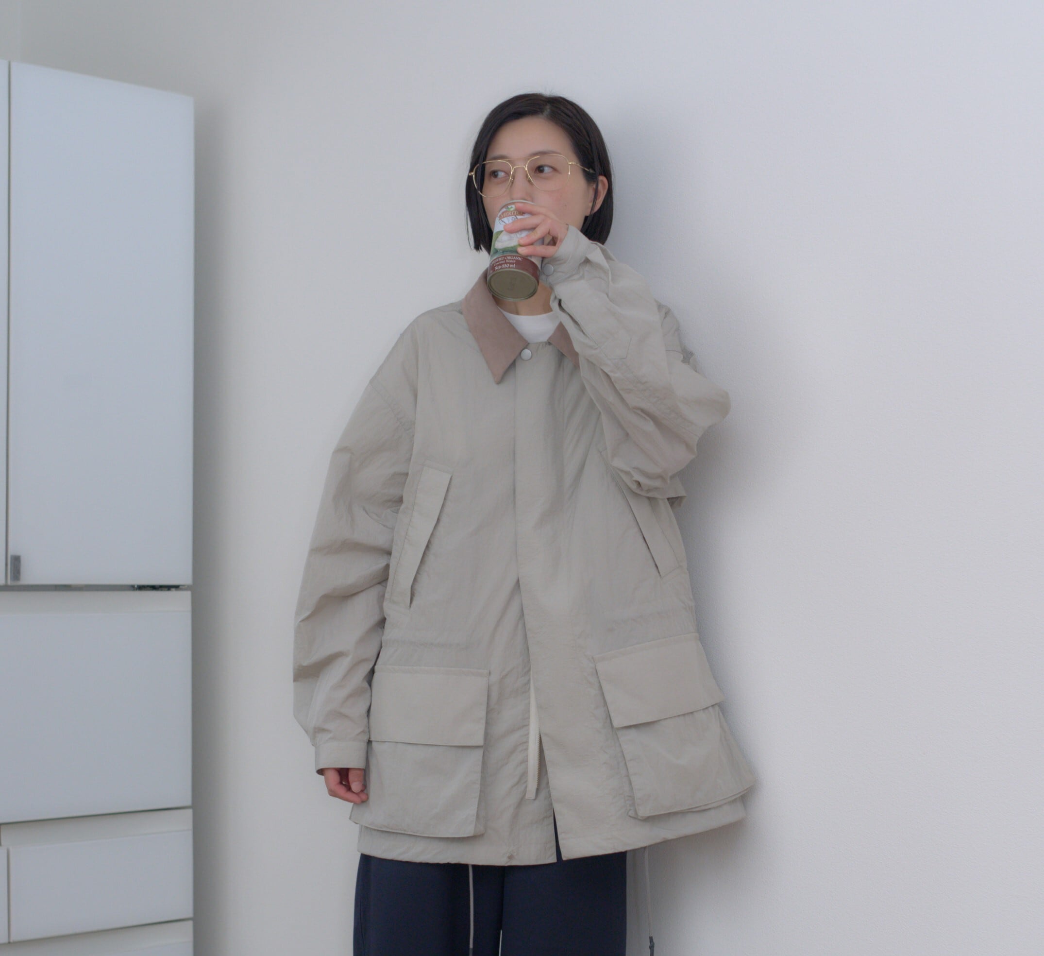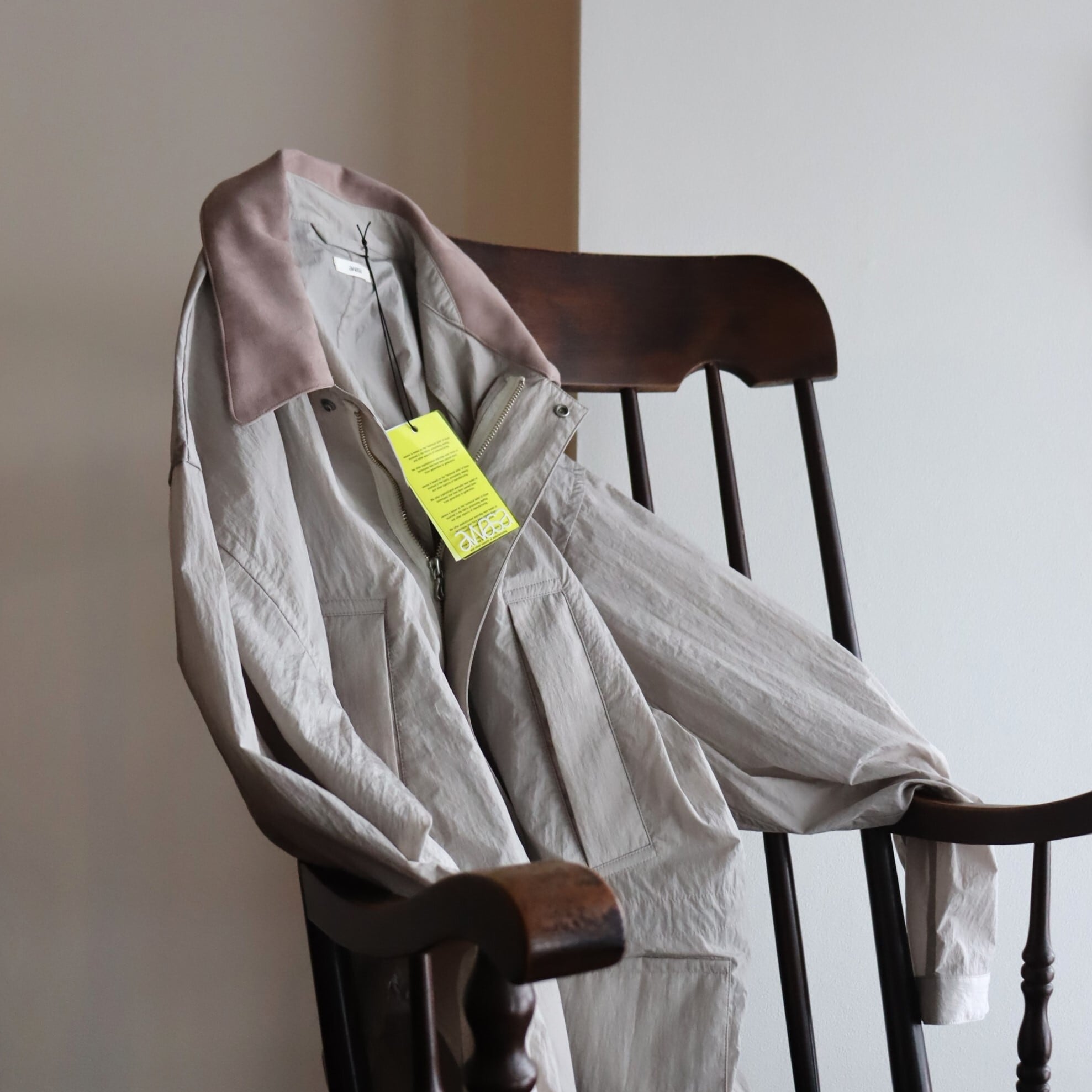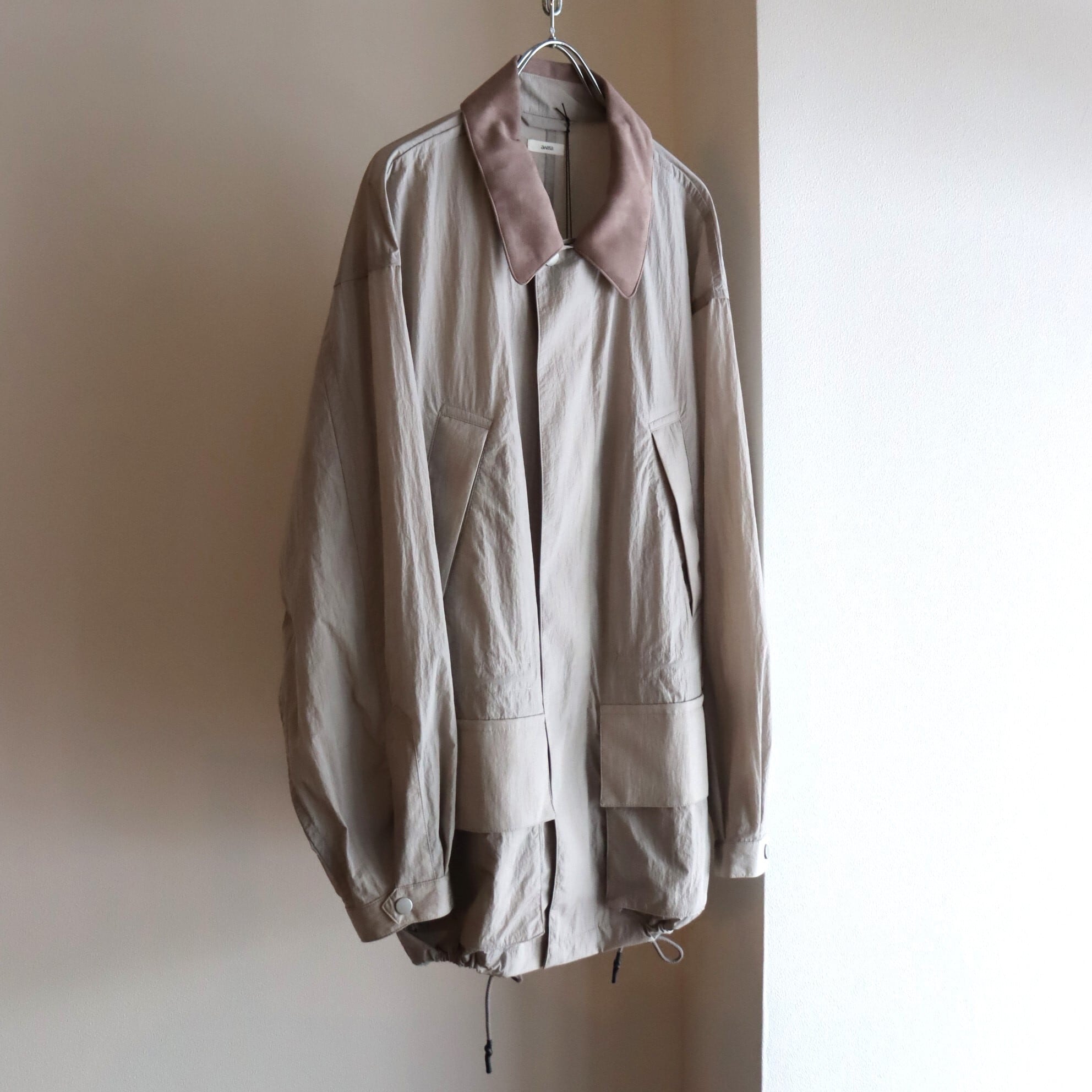 糸の加工とは別で仕上げにシワ加工を施すことで、ナイロンタフタですが、より深みのある色味とタッチの良い雰囲気のある一着に仕上がっています。