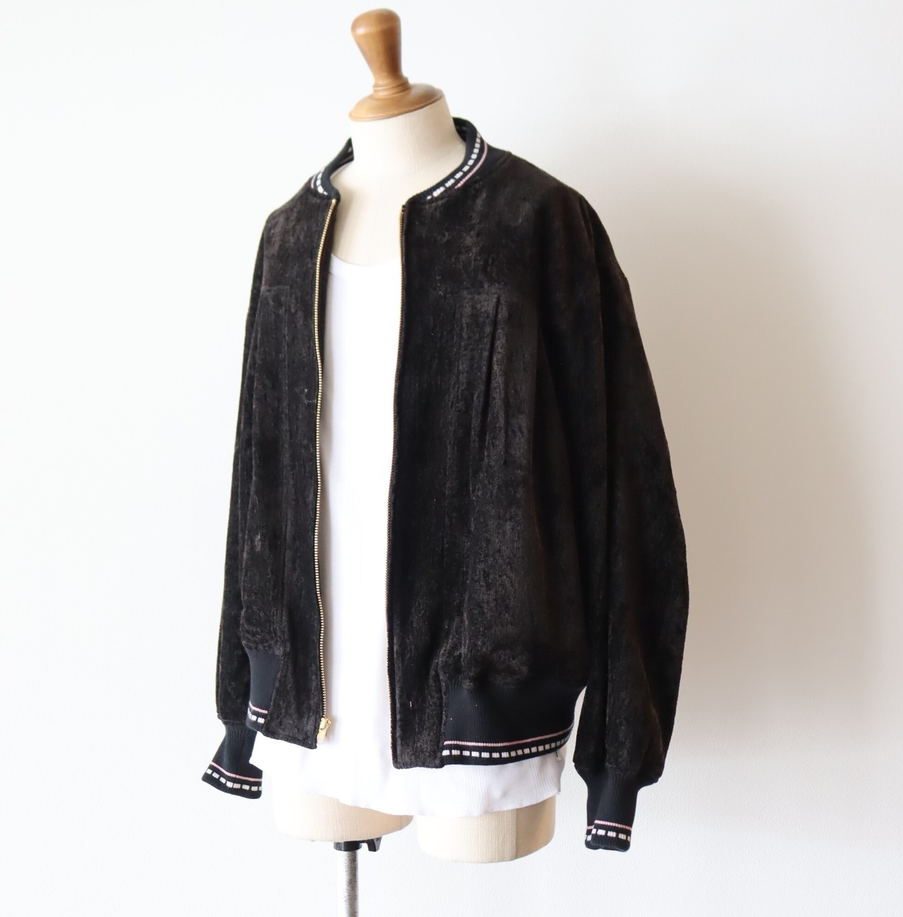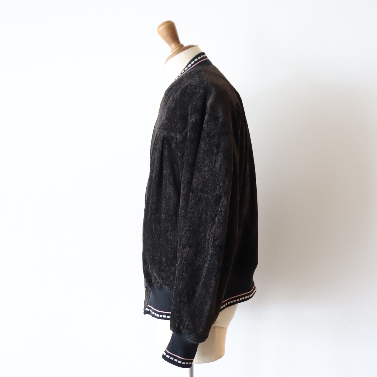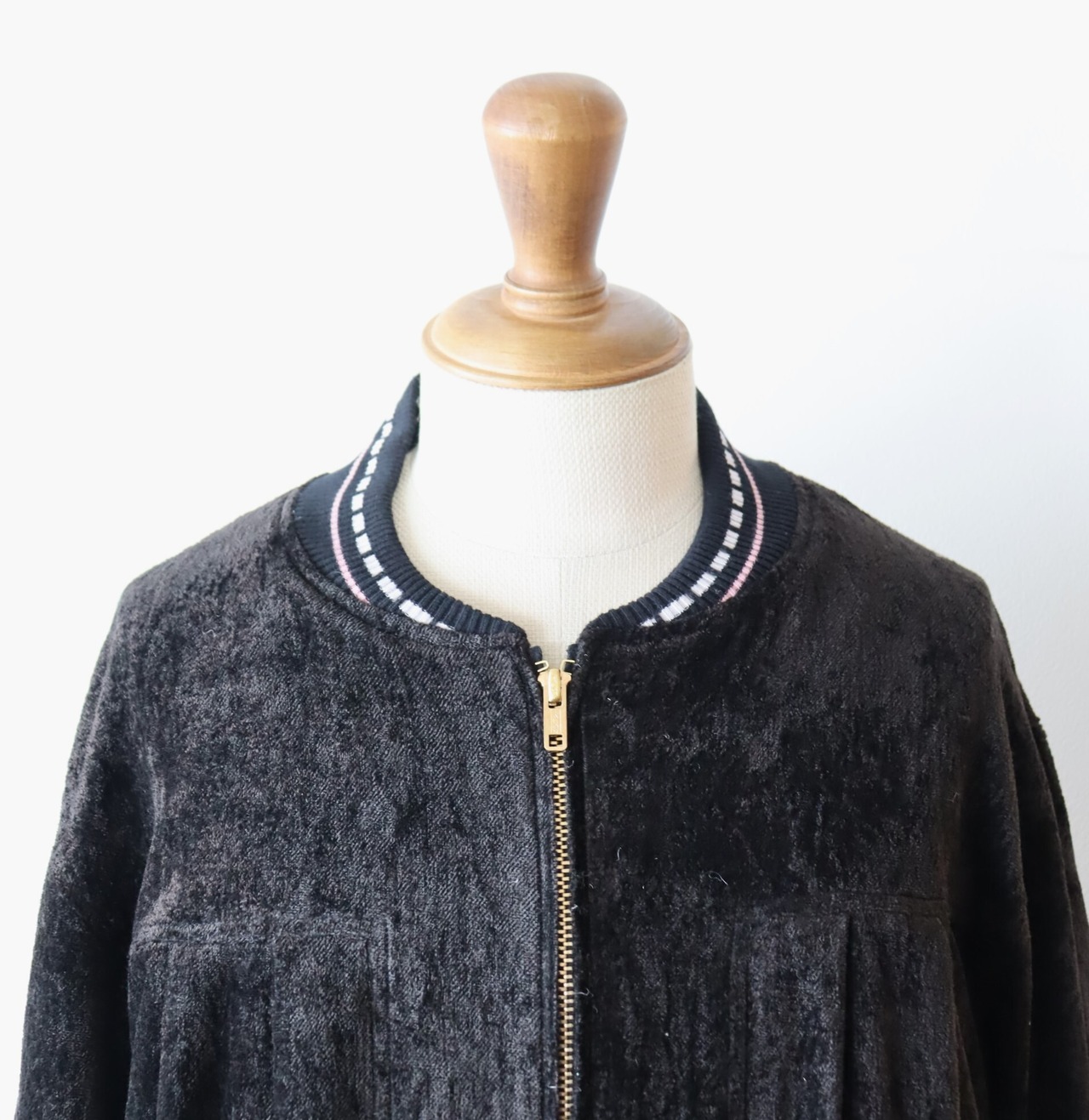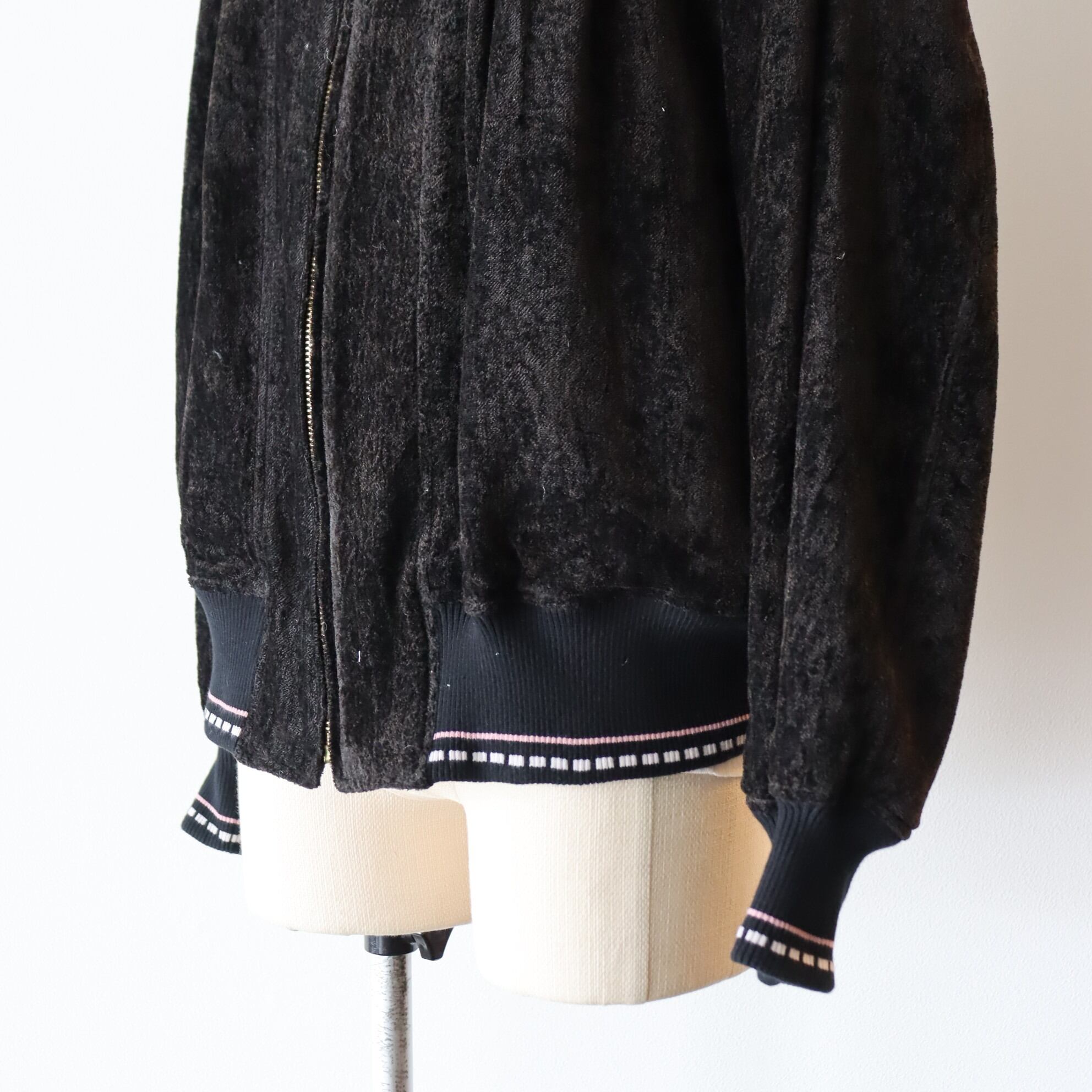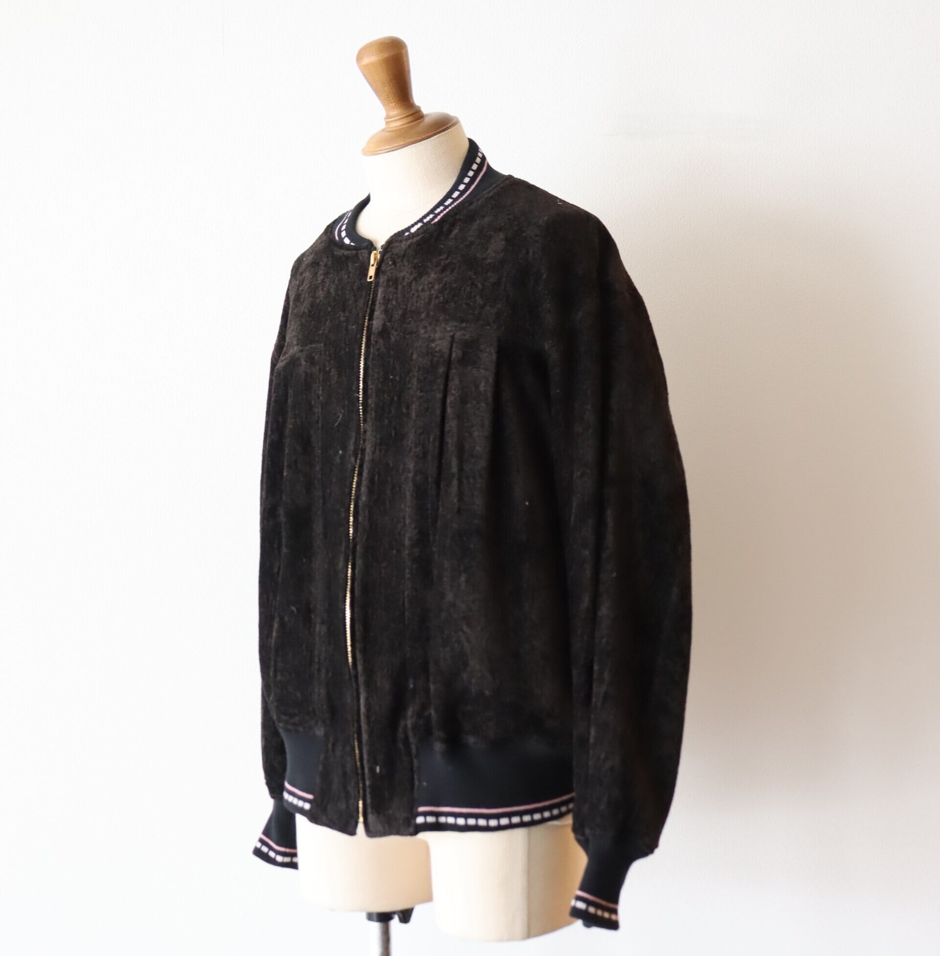 リブは当時のブルゾンの編み地を参考に編み立てたオリジナルパターンを使用。