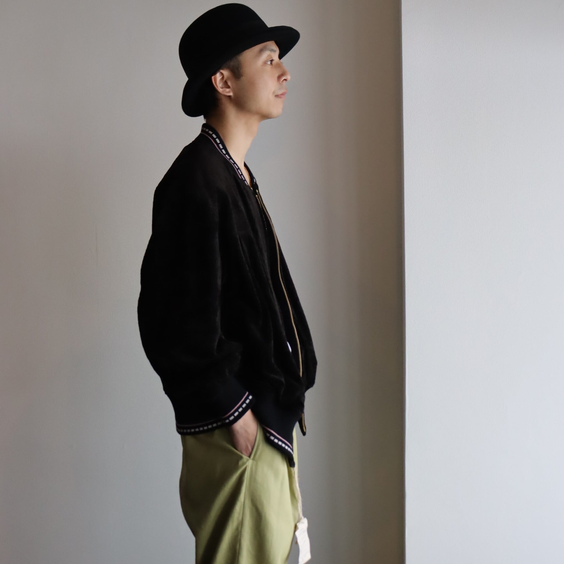 50年代に多く見られる、特徴的なT字型の切り替えのドリズラータイプのジャケット、通称リッキージャケットをベースとしたブルゾンになります。