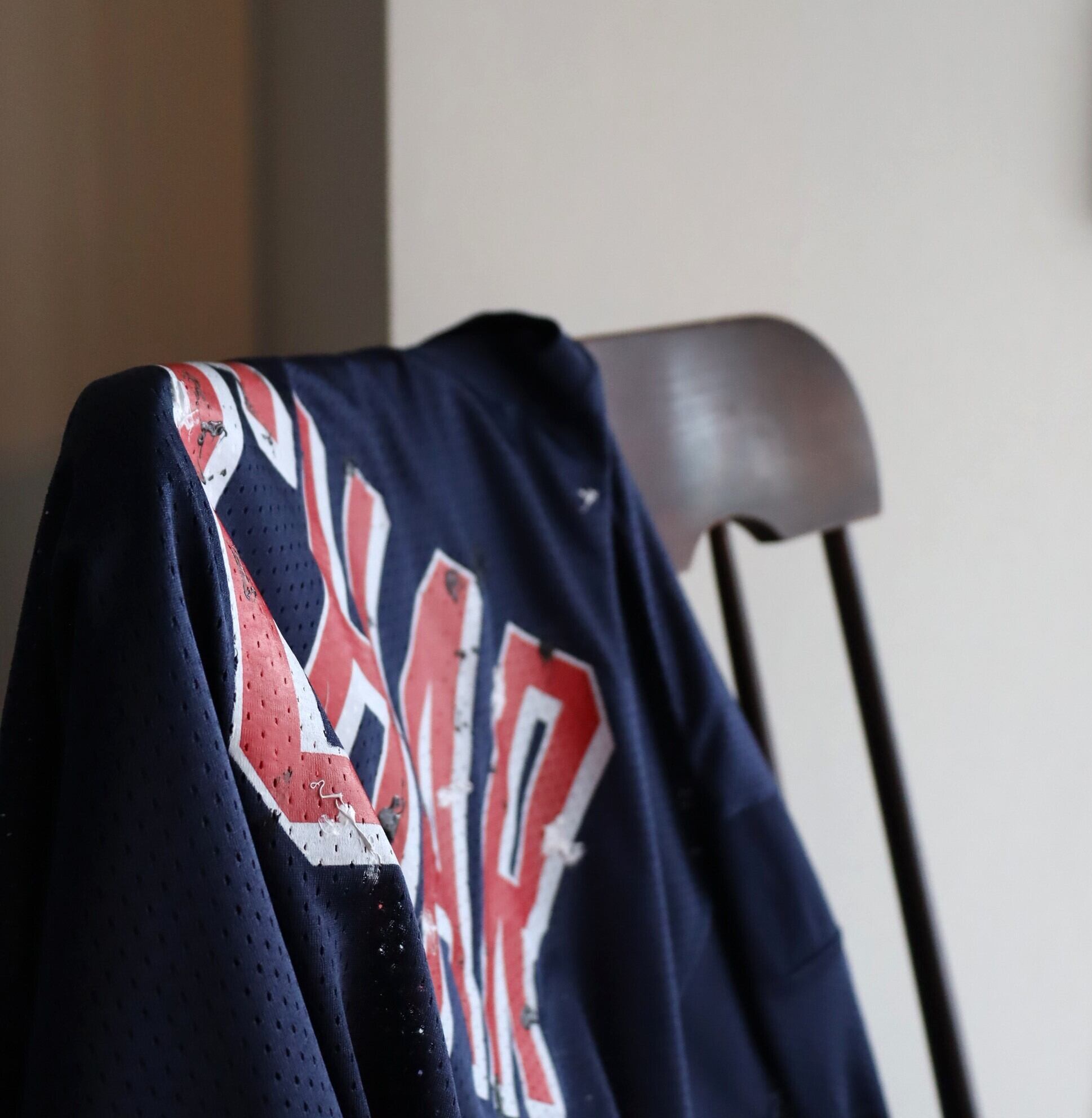 デニムのペインターパンツに、昔着ていたホッケーTeeを合わせ、休日にペンキ塗りをしているアメリカ人のおっさんが目に浮かびます。