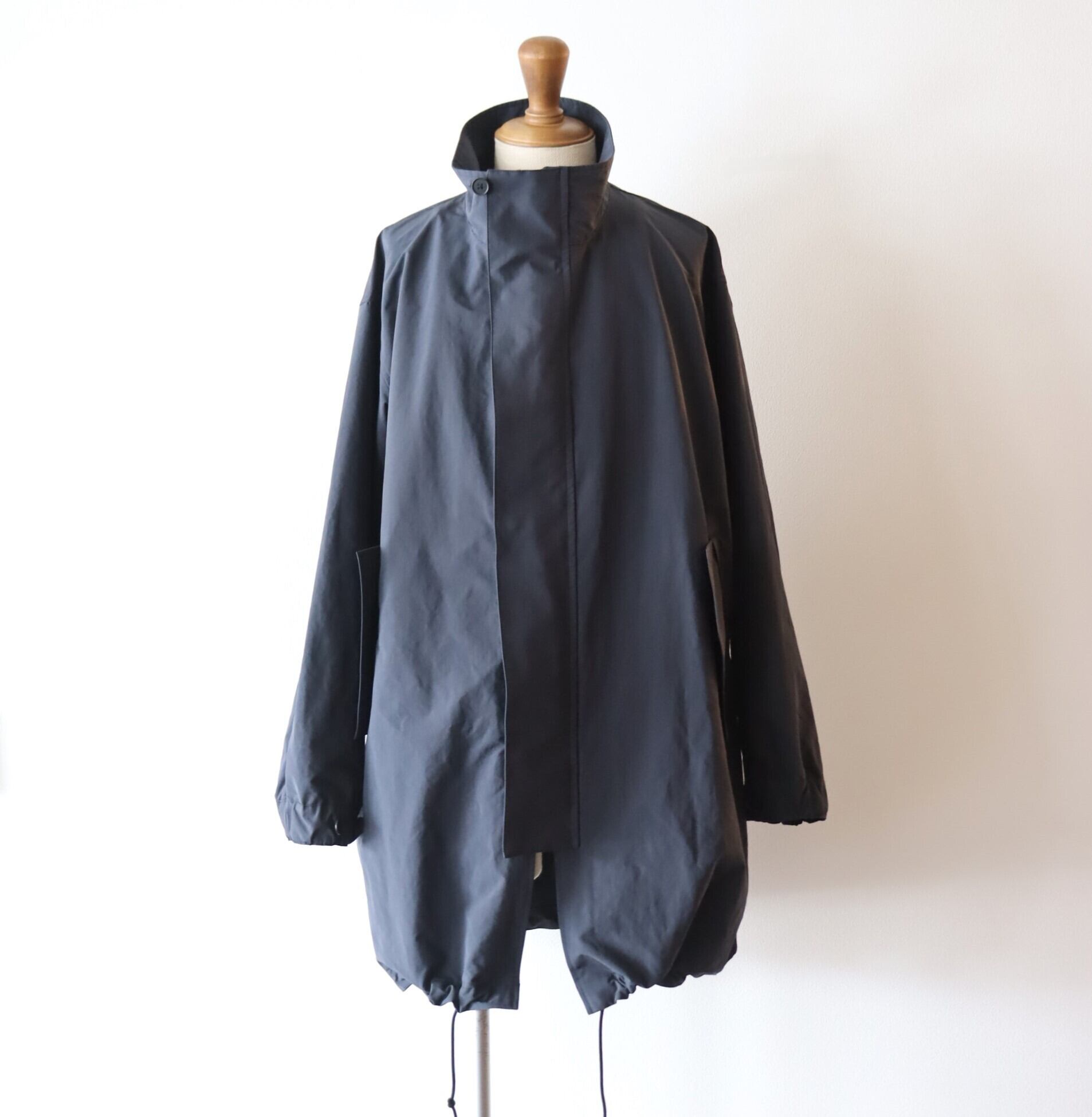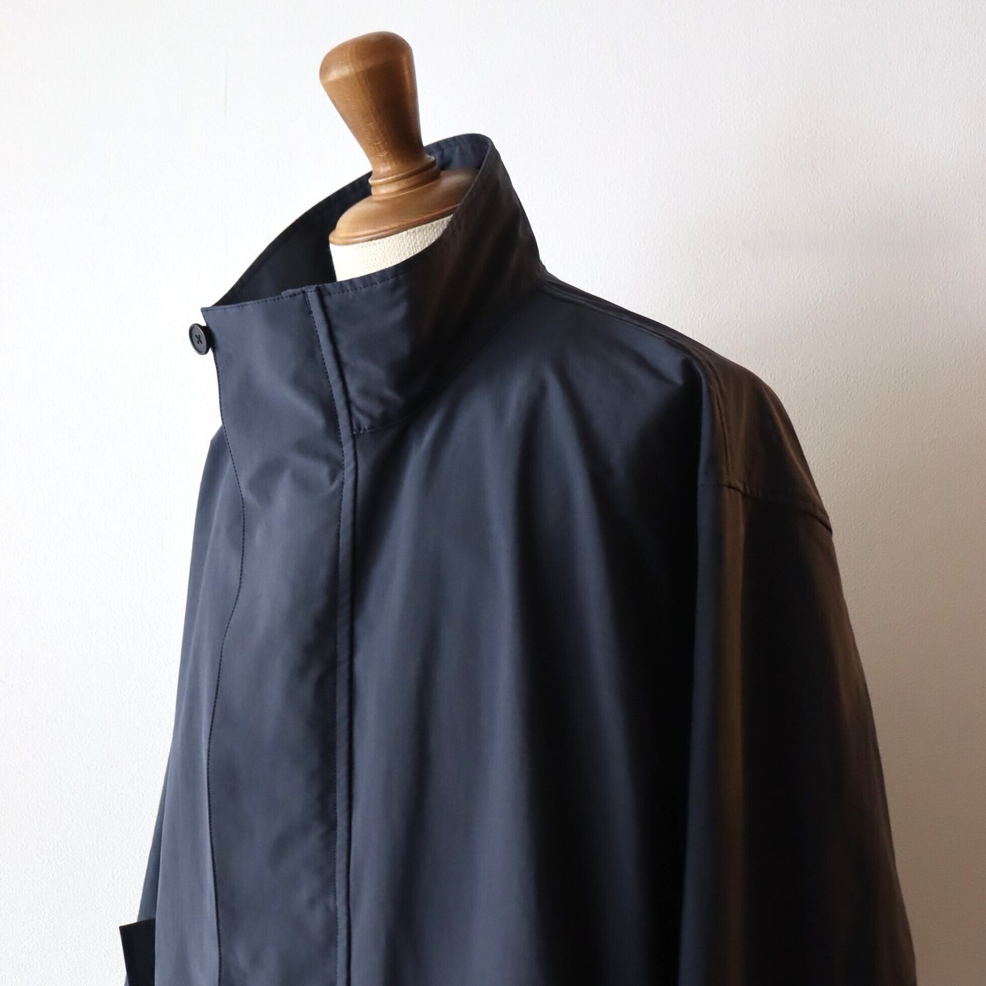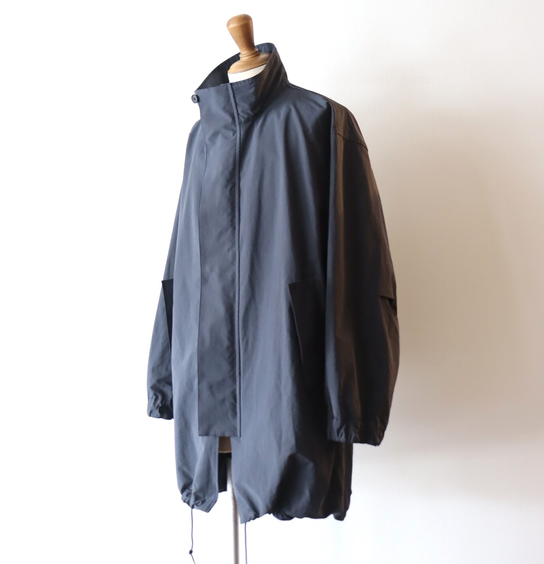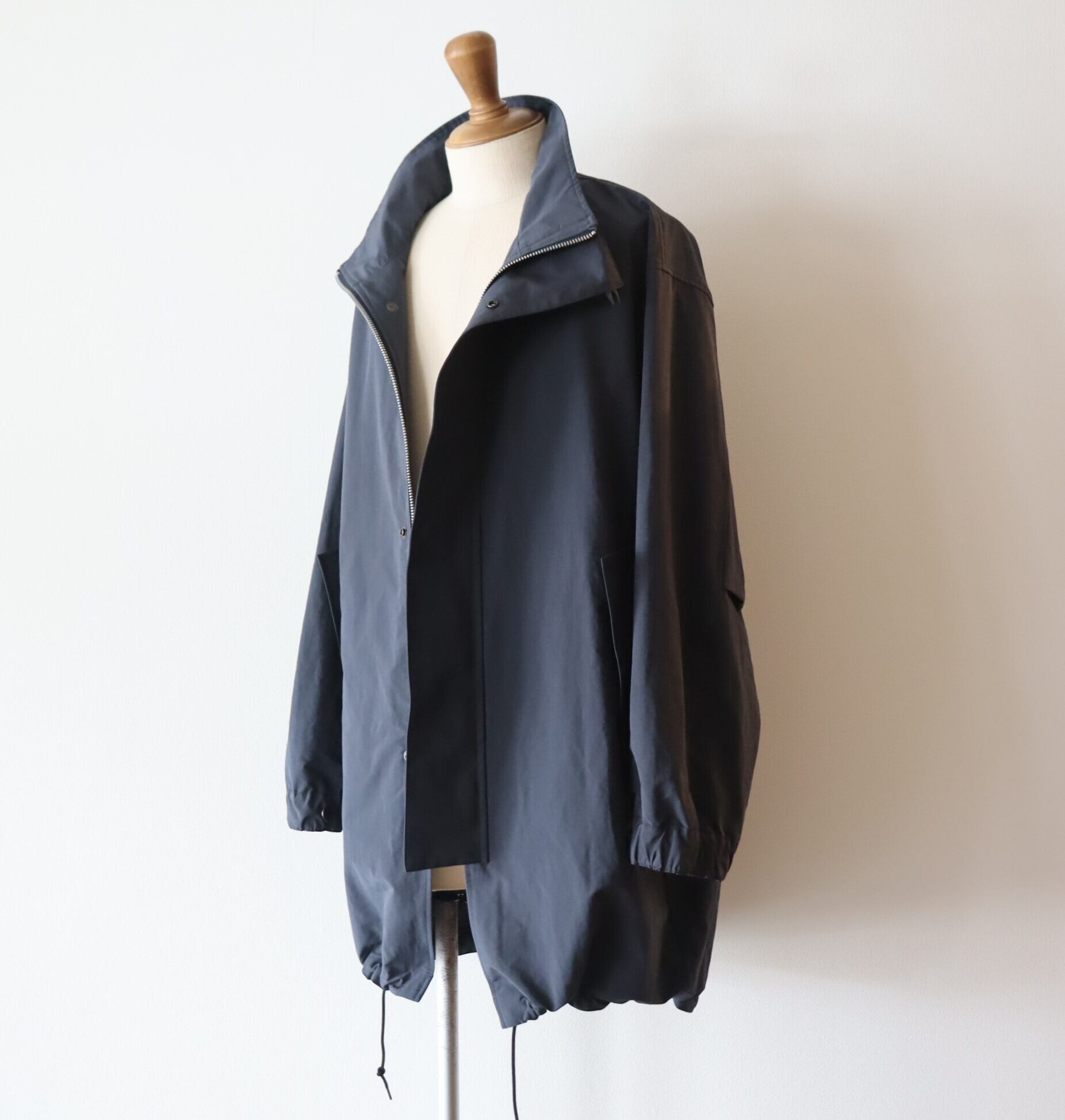 ポリエステルとナイロンの割繊糸の平織素材を使用したスタンドカラーコート。リラックスフィットのアイテムで撥水性もあり都会的なモッズコートのような仕上がりです。
