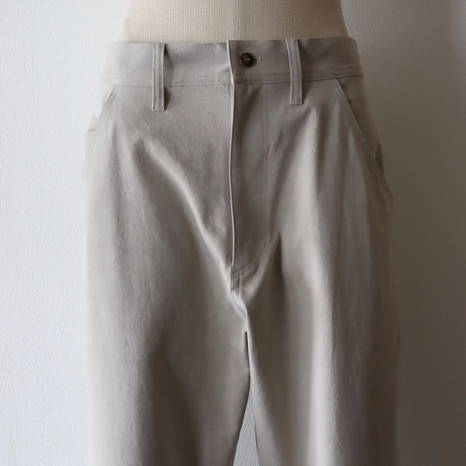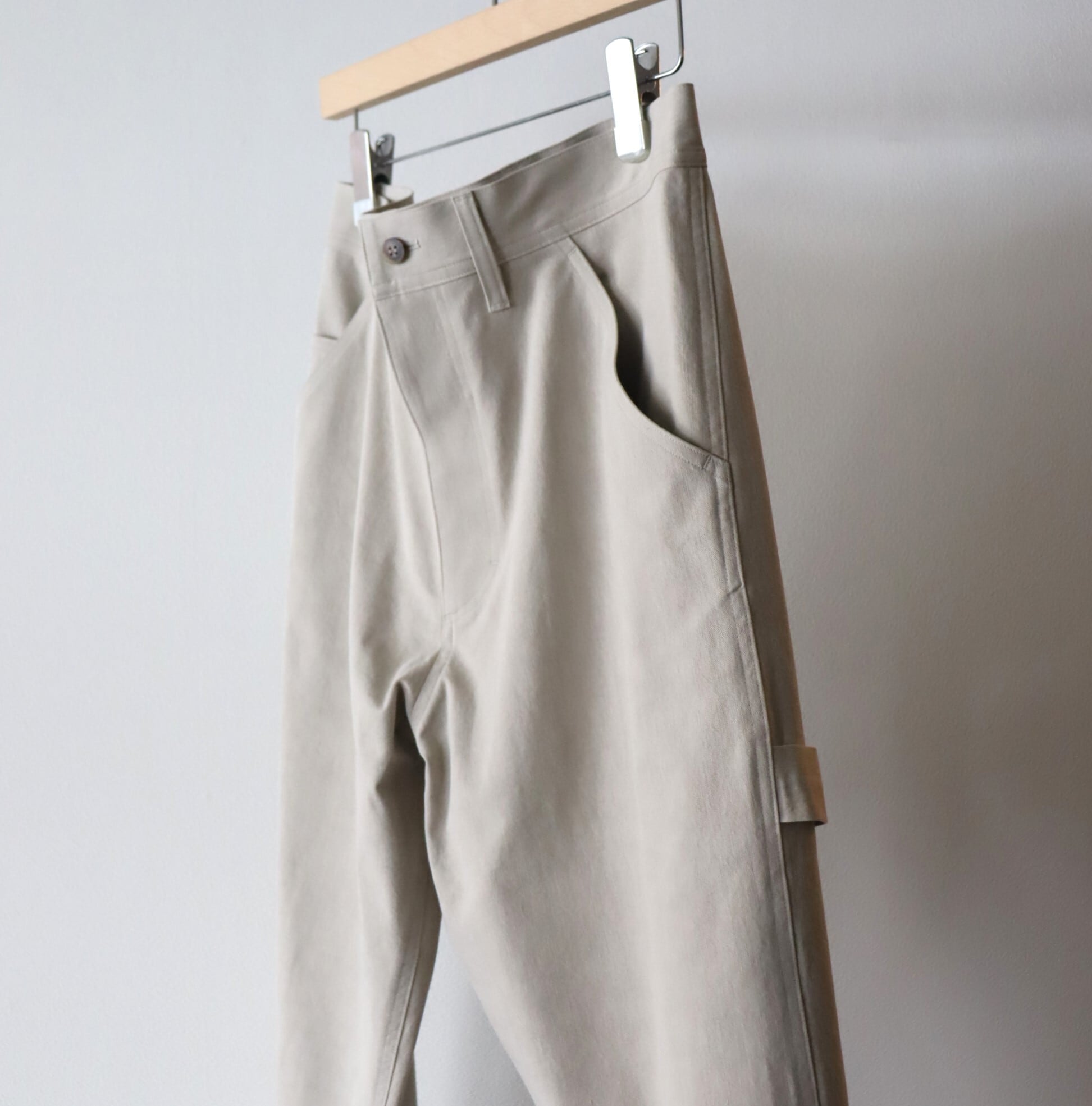 本来ならばワークウエアーの持つ荒々しさが全面に出てしまうペインターだが、こういった素材感や、身体と洋服との間の空間の取り方など絶妙なシルエットで見せるという点において、やはりCaleらしいどこか美しさや品を纏わせたワークパンツに仕上げており、他では見られない独特な1本に仕上っている。