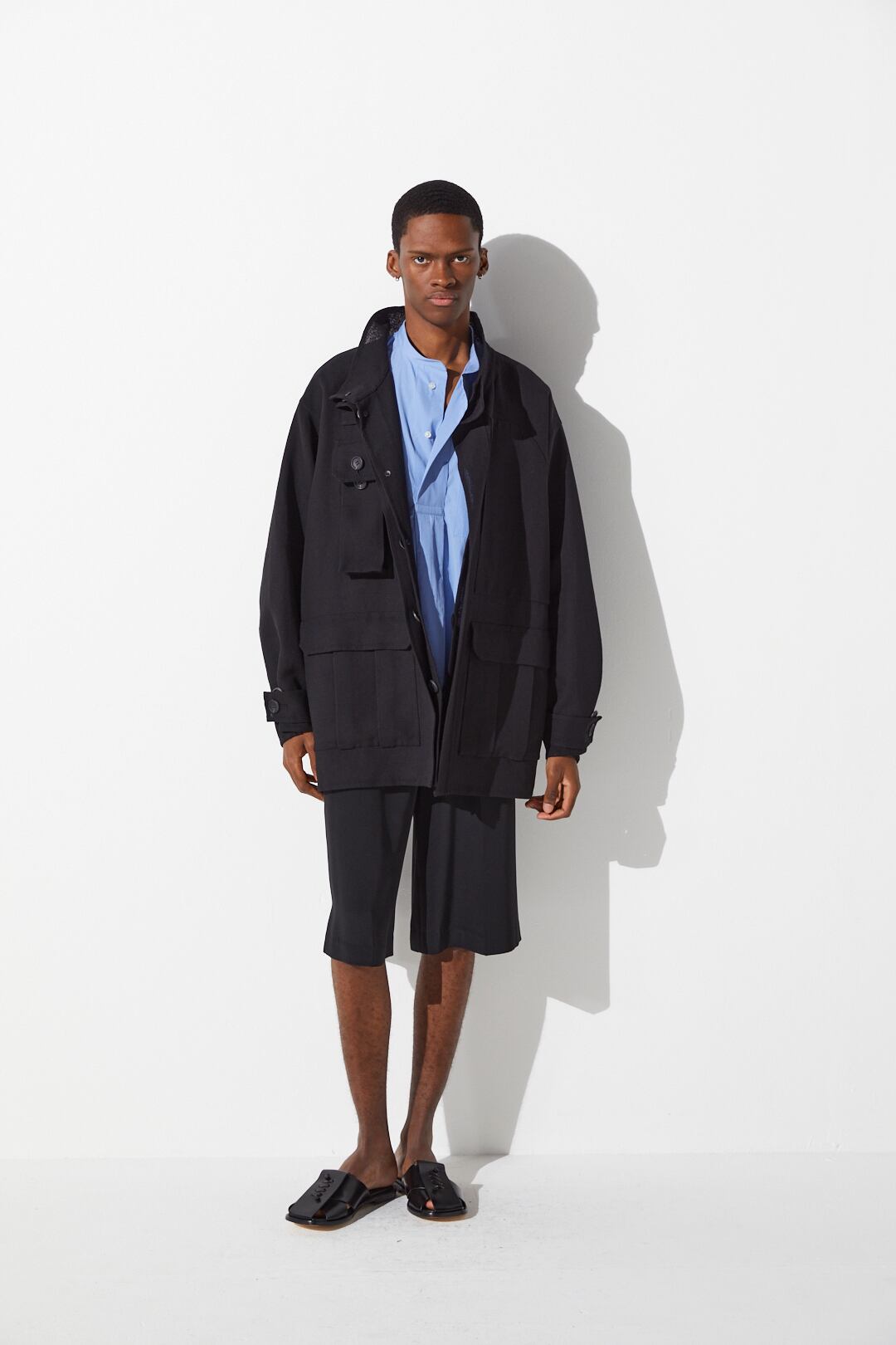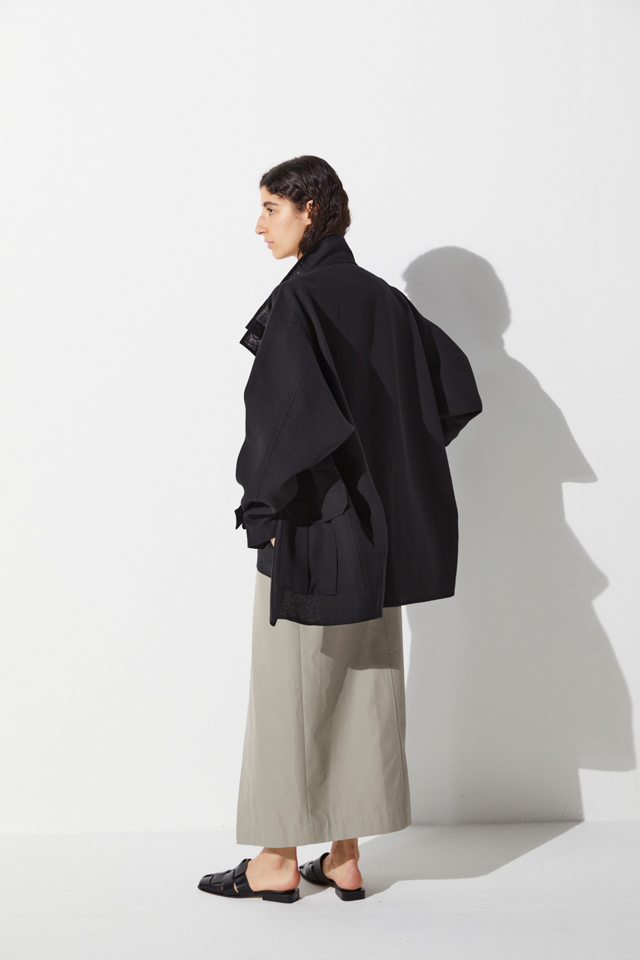 POSTELEGANT " Washi Paper Wool Rever Utility Coat ( Black )"