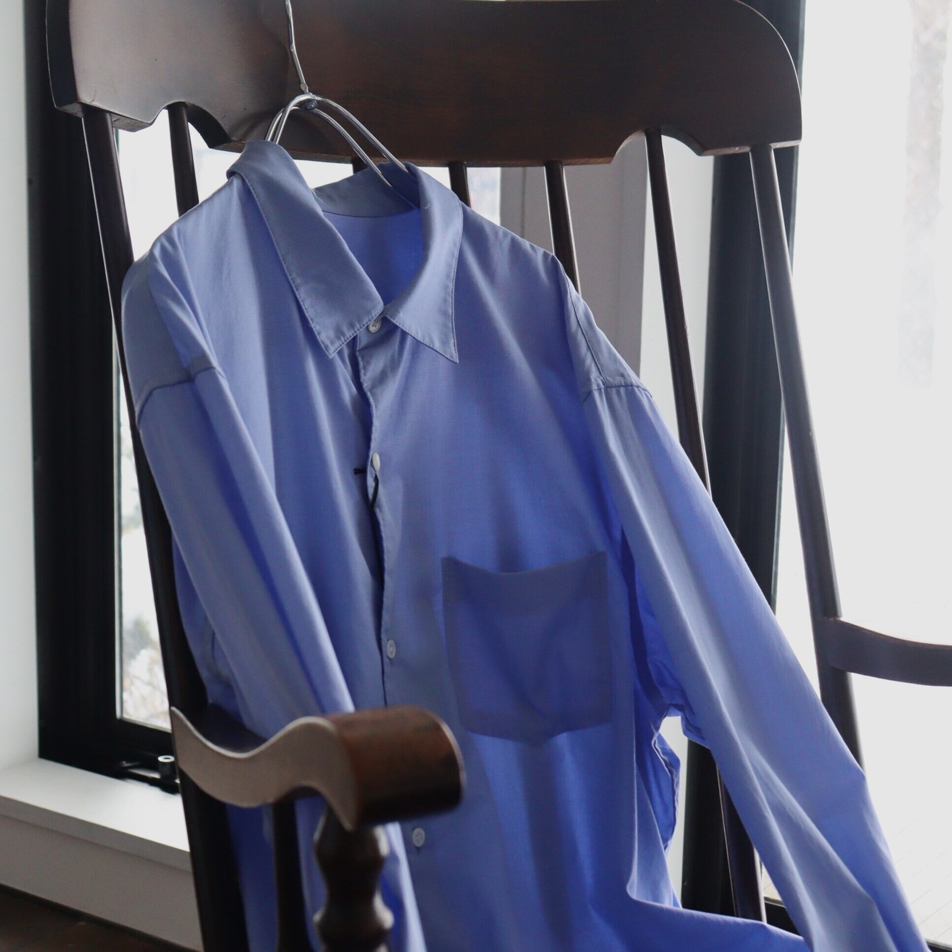 日本でも有数のシャツ生地産地である兵庫県播州地区で製作した、経糸、緯糸共に100/2綿の刷毛目。経糸には軽く、細くても強い糸を作る技術を用いており、薄さが求められる春夏シーズンに適した素材に。